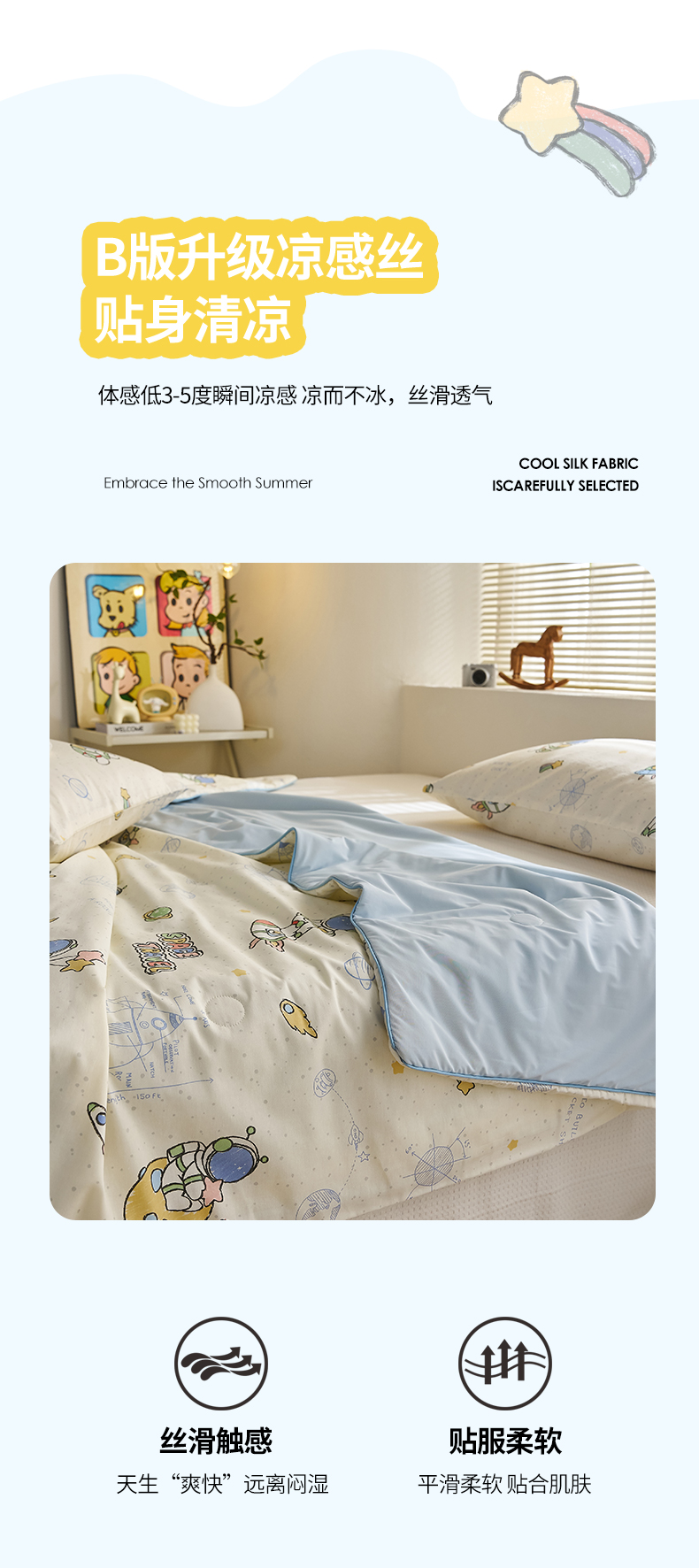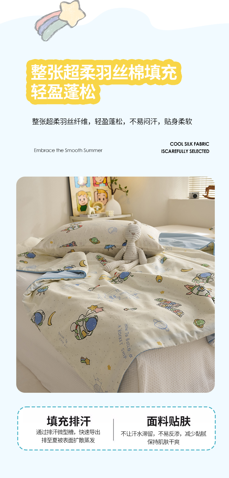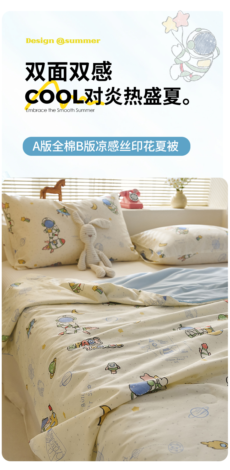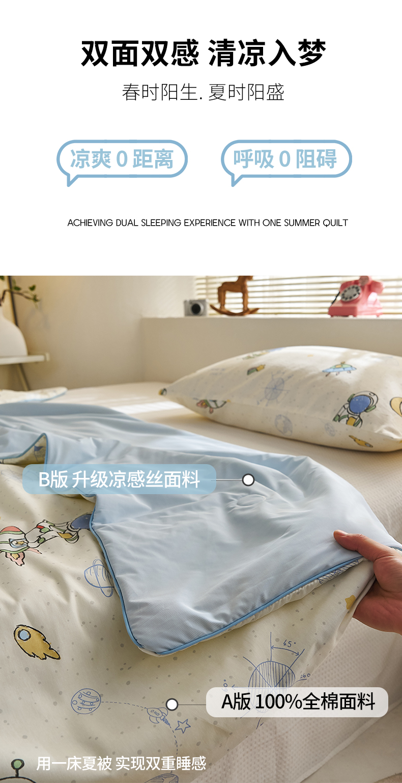 商品名称:暖阳 2026新款A全棉B凉感丝夏被夏凉被空调被 小冰皮-太空人
