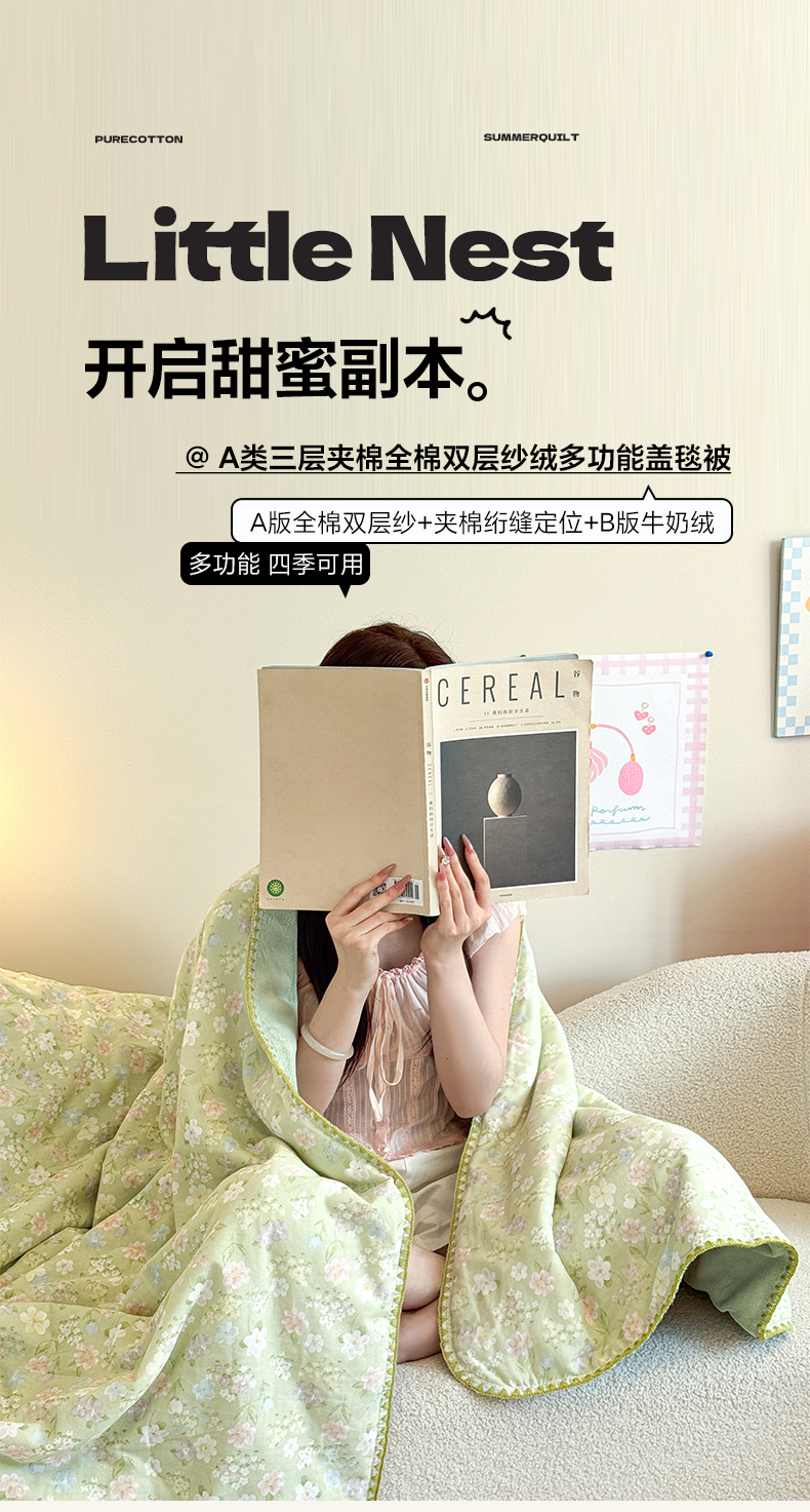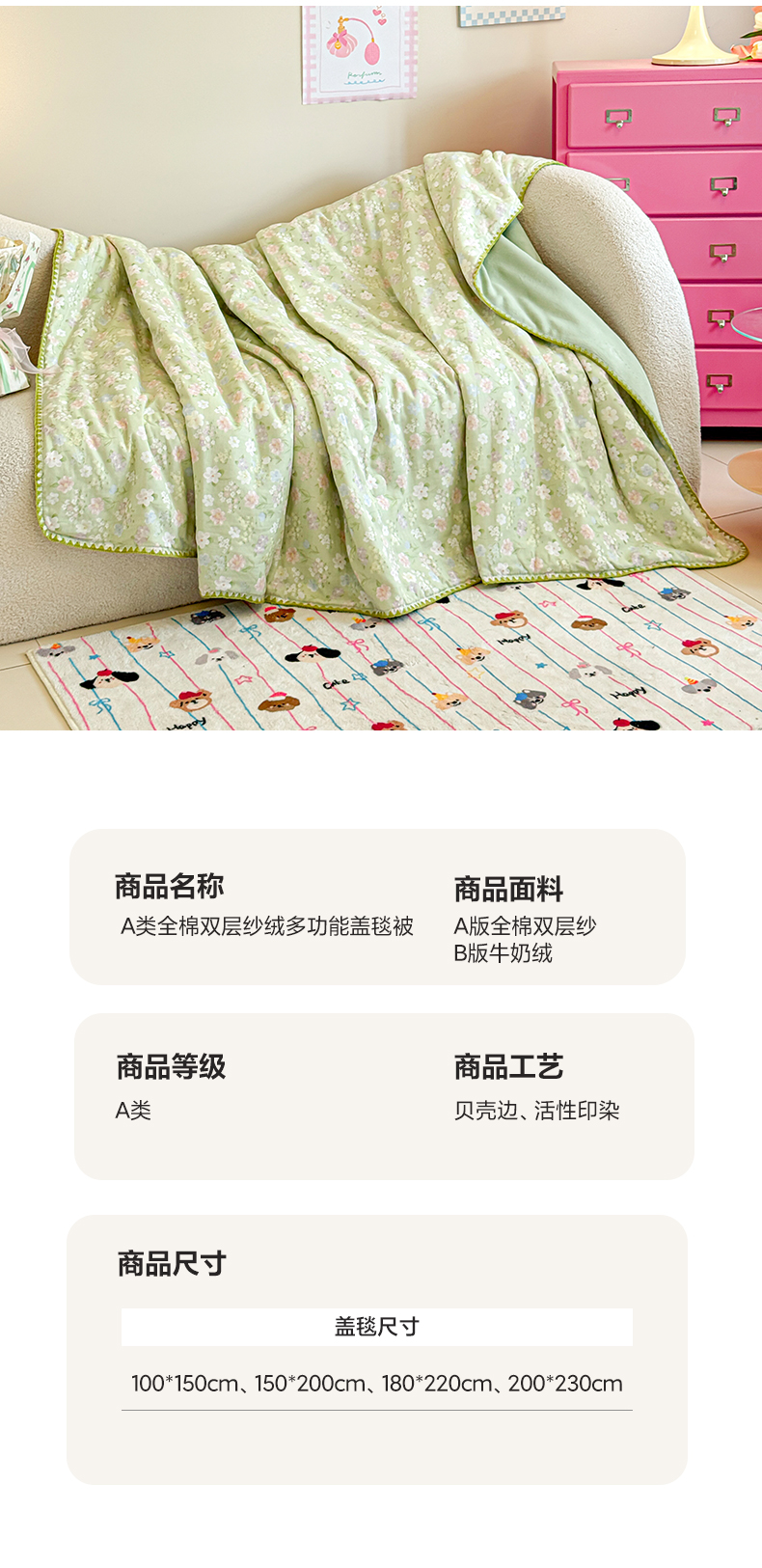 (总)妮可 2026新款跑量款全棉双层纱绒四季可用床盖系列,元气萌宠,花园兔宝,蓝汪拾趣,暖阳熊仔,甜梦凯蒂,甜心乐园,芋泥奶霜,组合图(仅参考)