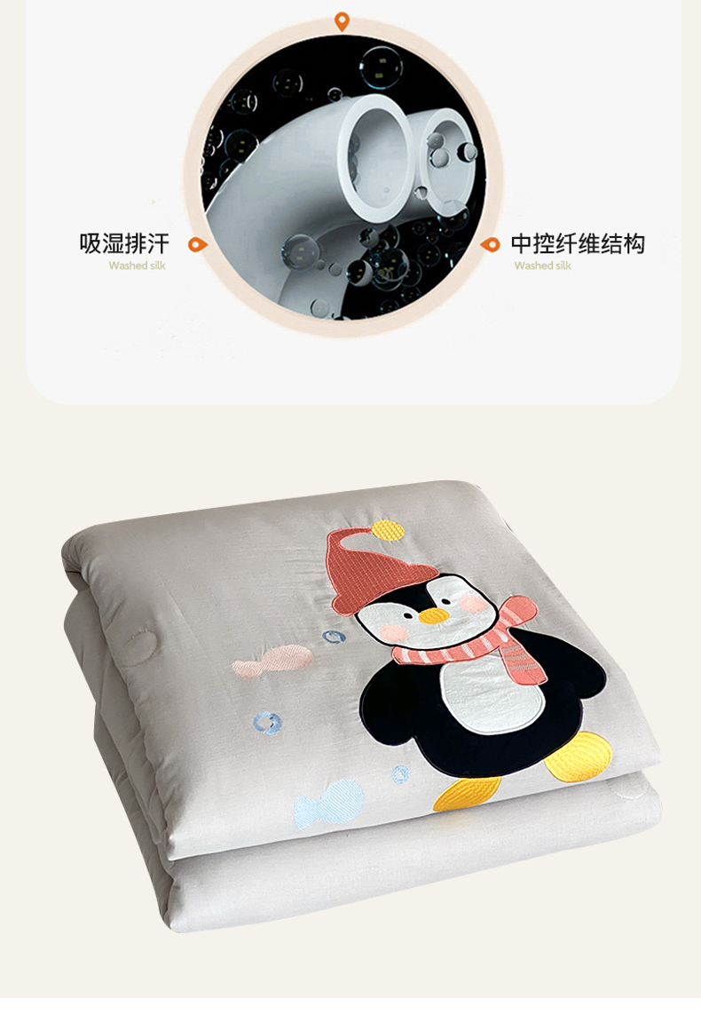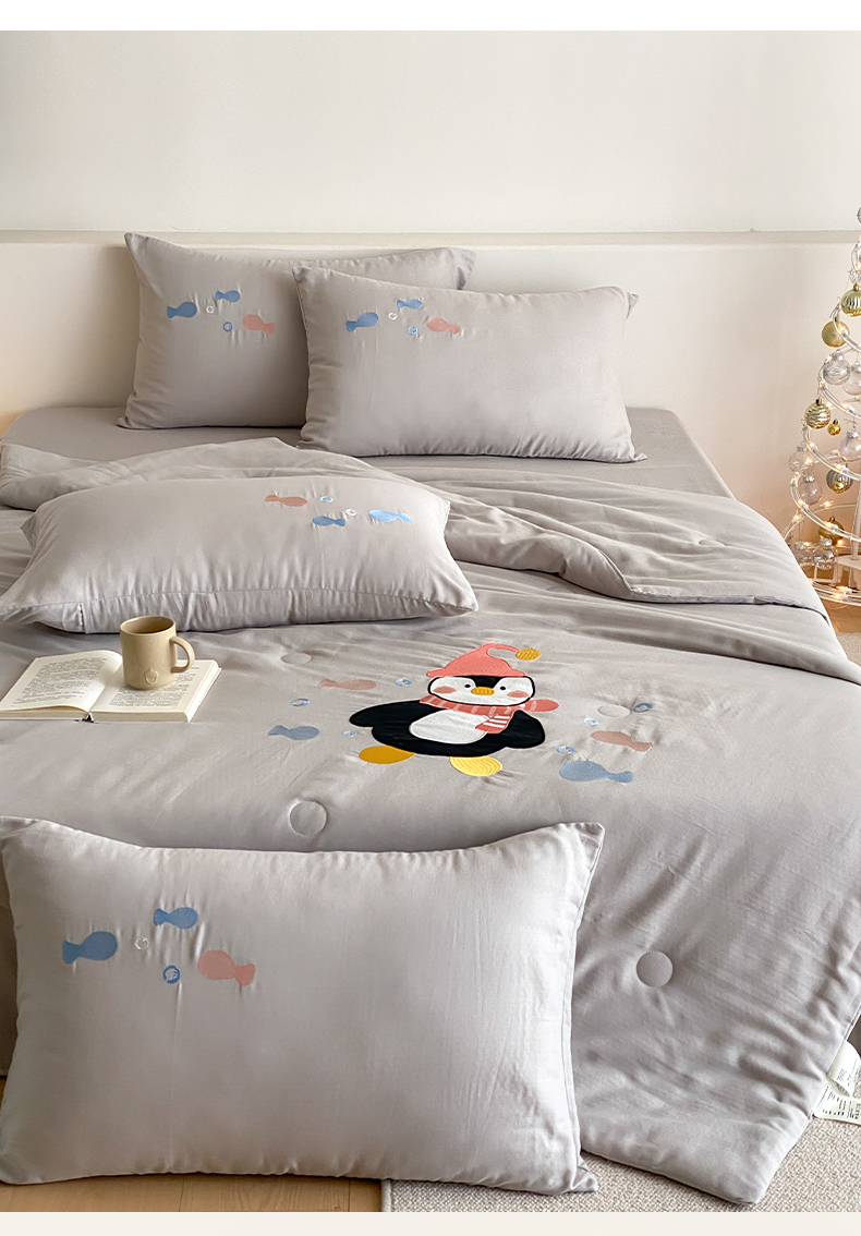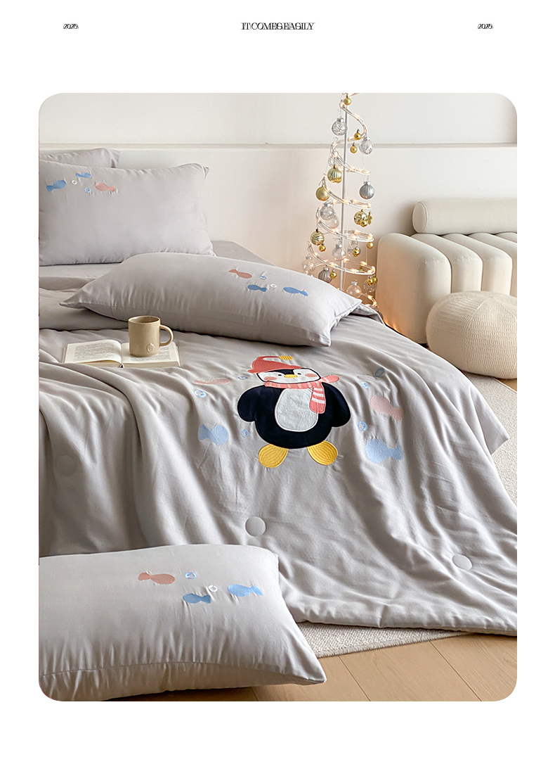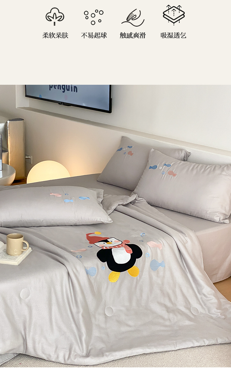 当前位置: 91家纺网 > 商品网购 > 被子 > 夏被 > 鸣升家纺 2026新款全棉夏被双层纱贴布绣100%棉花夏被四件套 快乐企鹅-灰