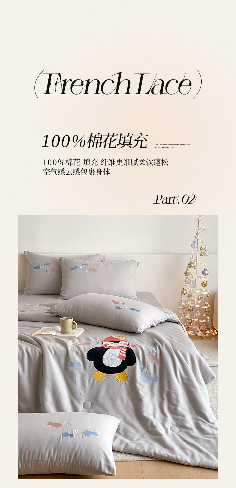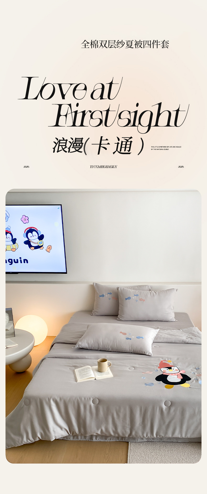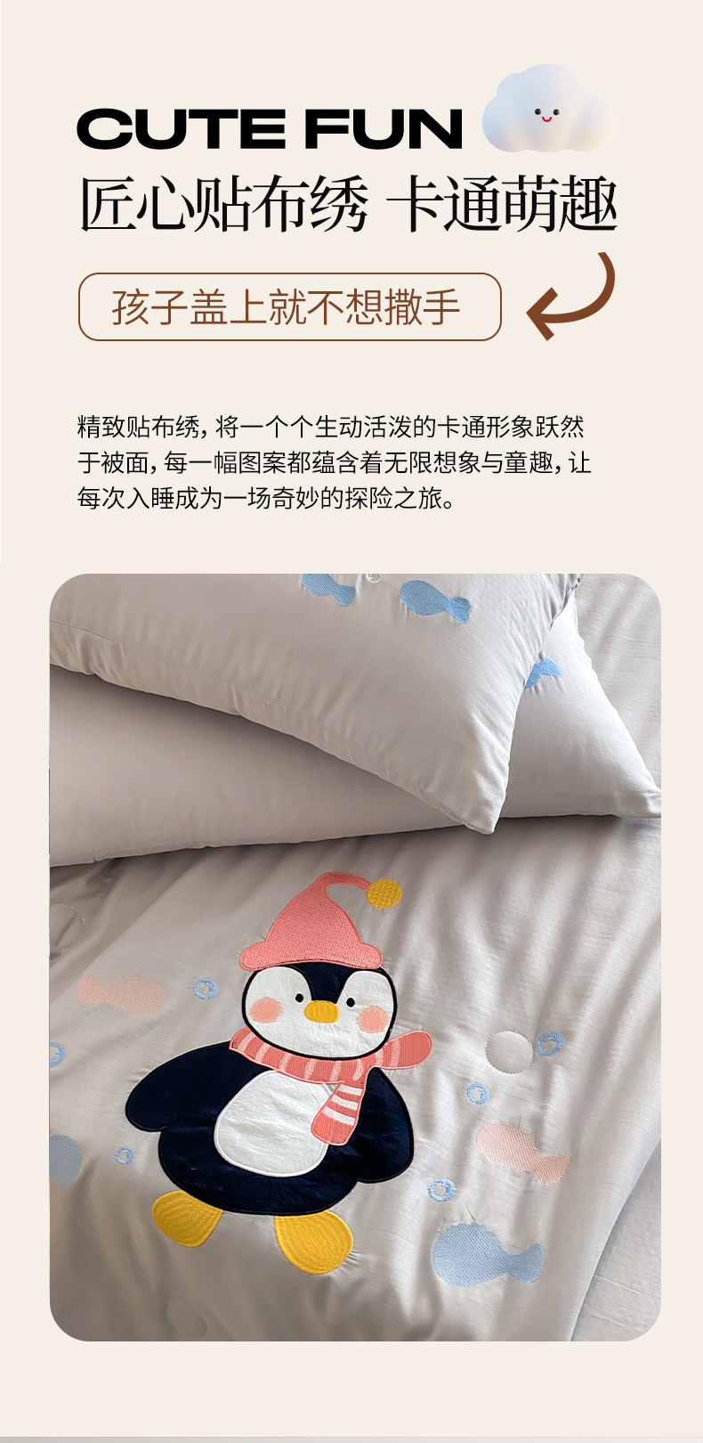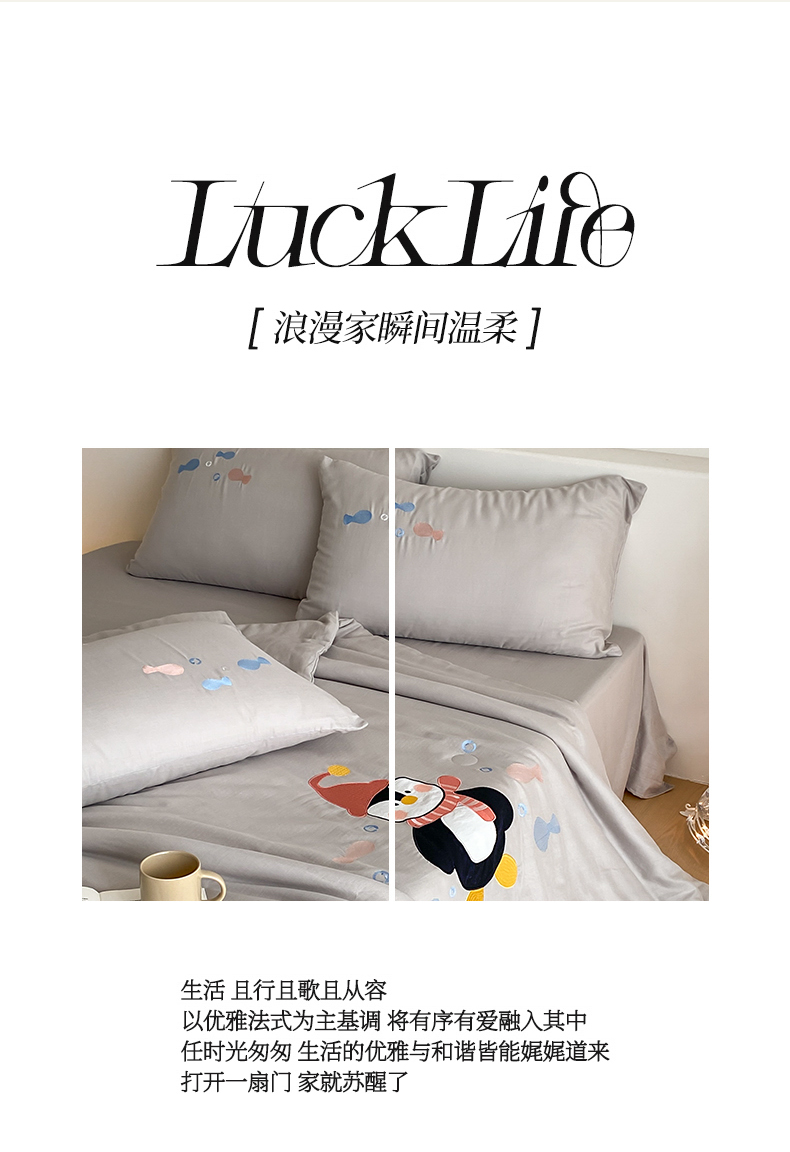 当前位置: 91家纺网 > 商品网购 > 被子 > 夏被 > 鸣升家纺 2026新款全棉夏被双层纱贴布绣100%棉花夏被四件套 快乐企鹅-灰