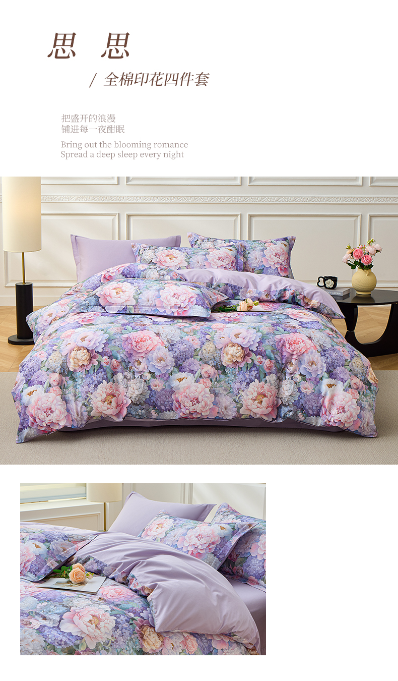 当前位置: 91家纺网 > 商品网购 > 床品套件 > 四件套 > 全棉普通四件套 > 元元家居(元元被业) 2026新款全棉13372套件及单品【印花款】-四件套 思思