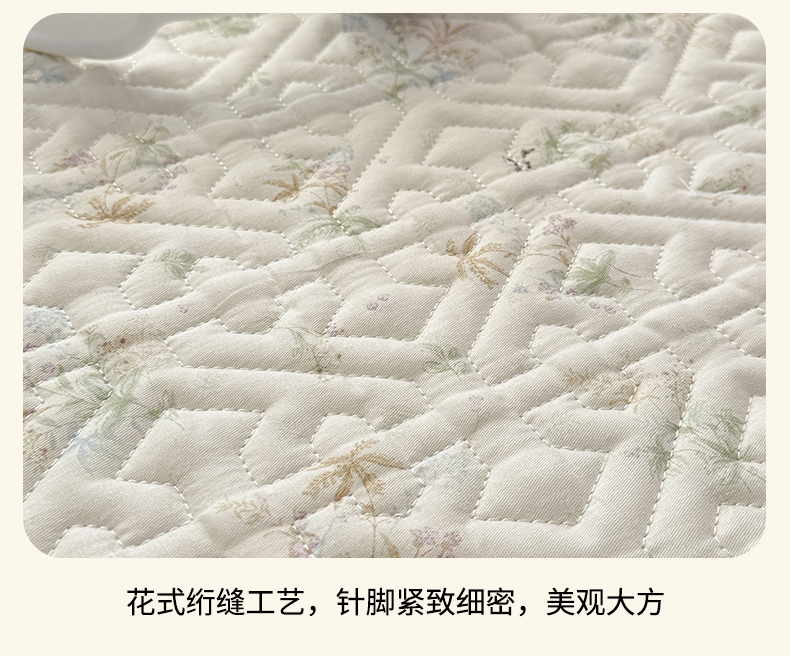 商品名称:忘忧草 2026新款清新简约全棉印花夹棉床笠 荷叶邮差
