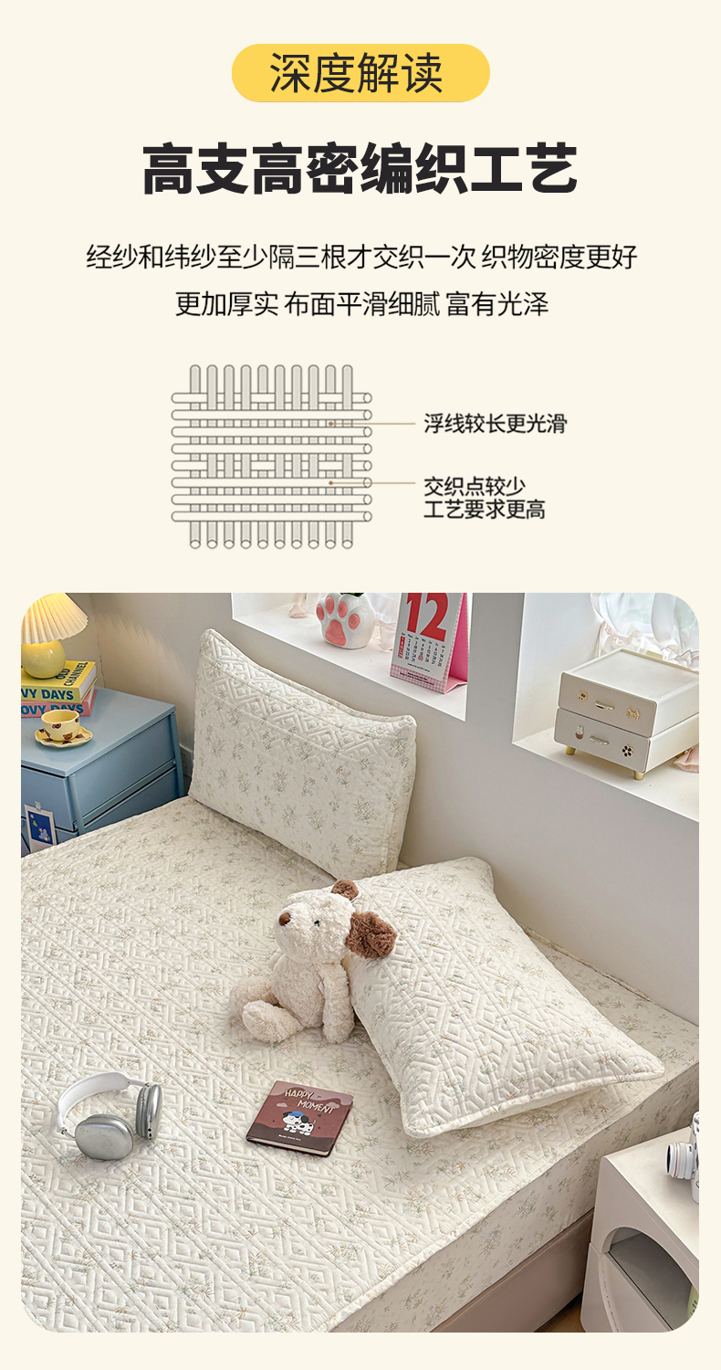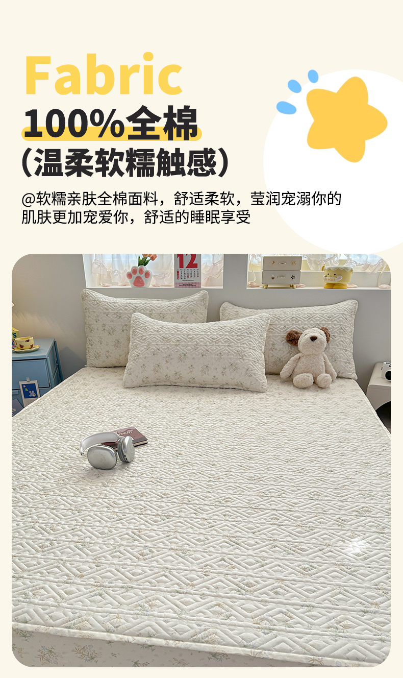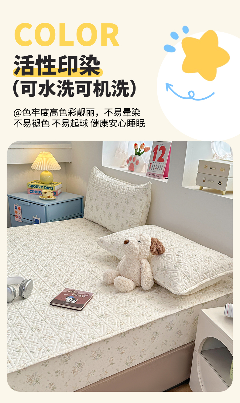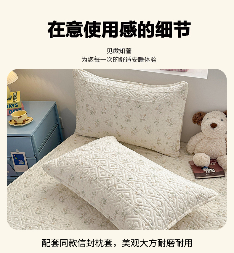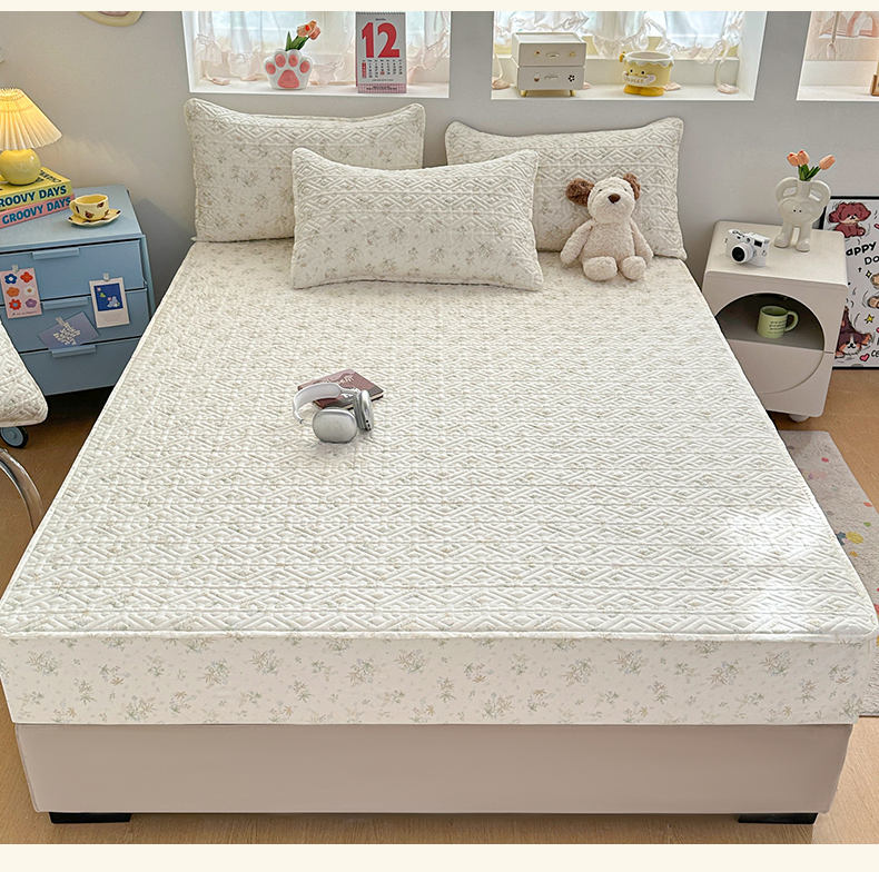 忘忧草 2026新款清新简约全棉印花夹棉床笠 荷叶邮差