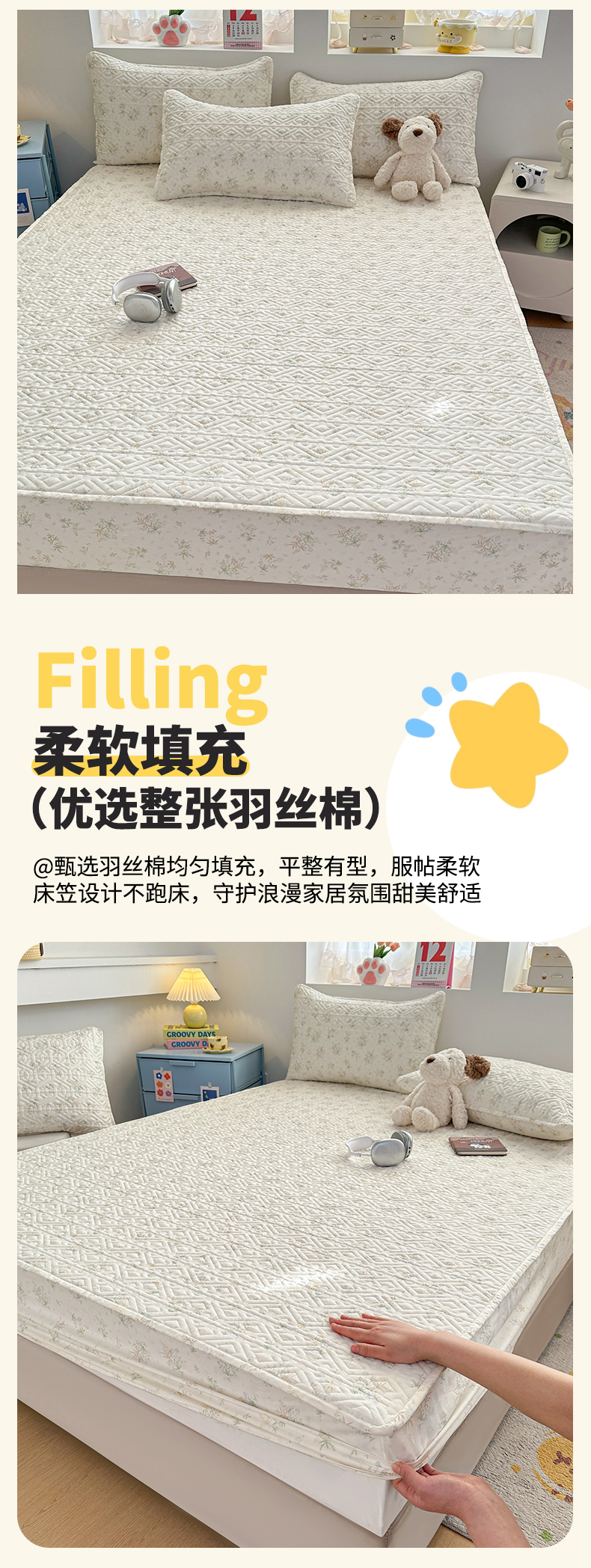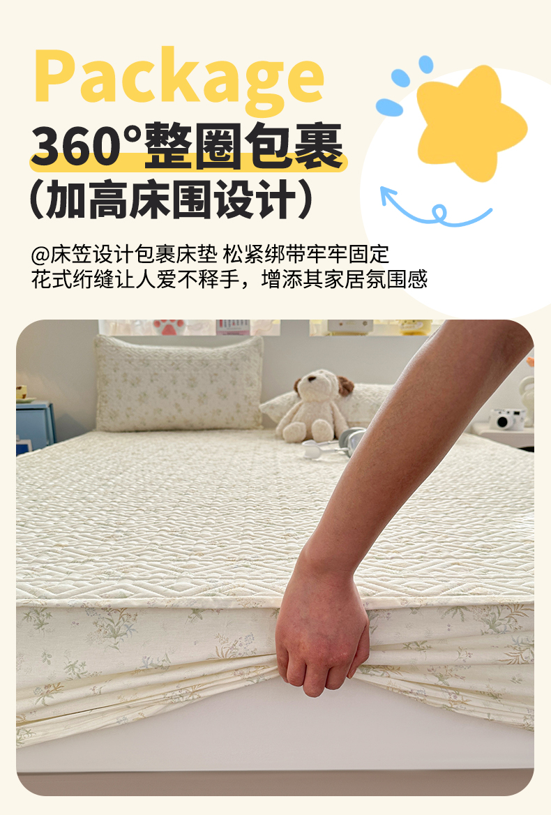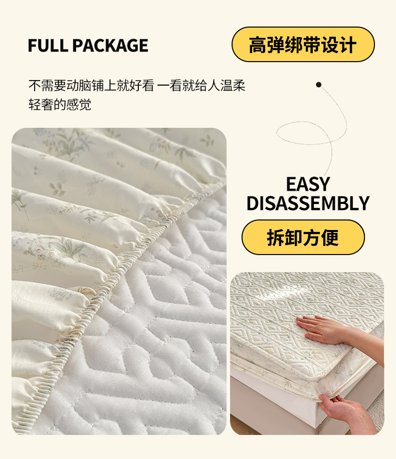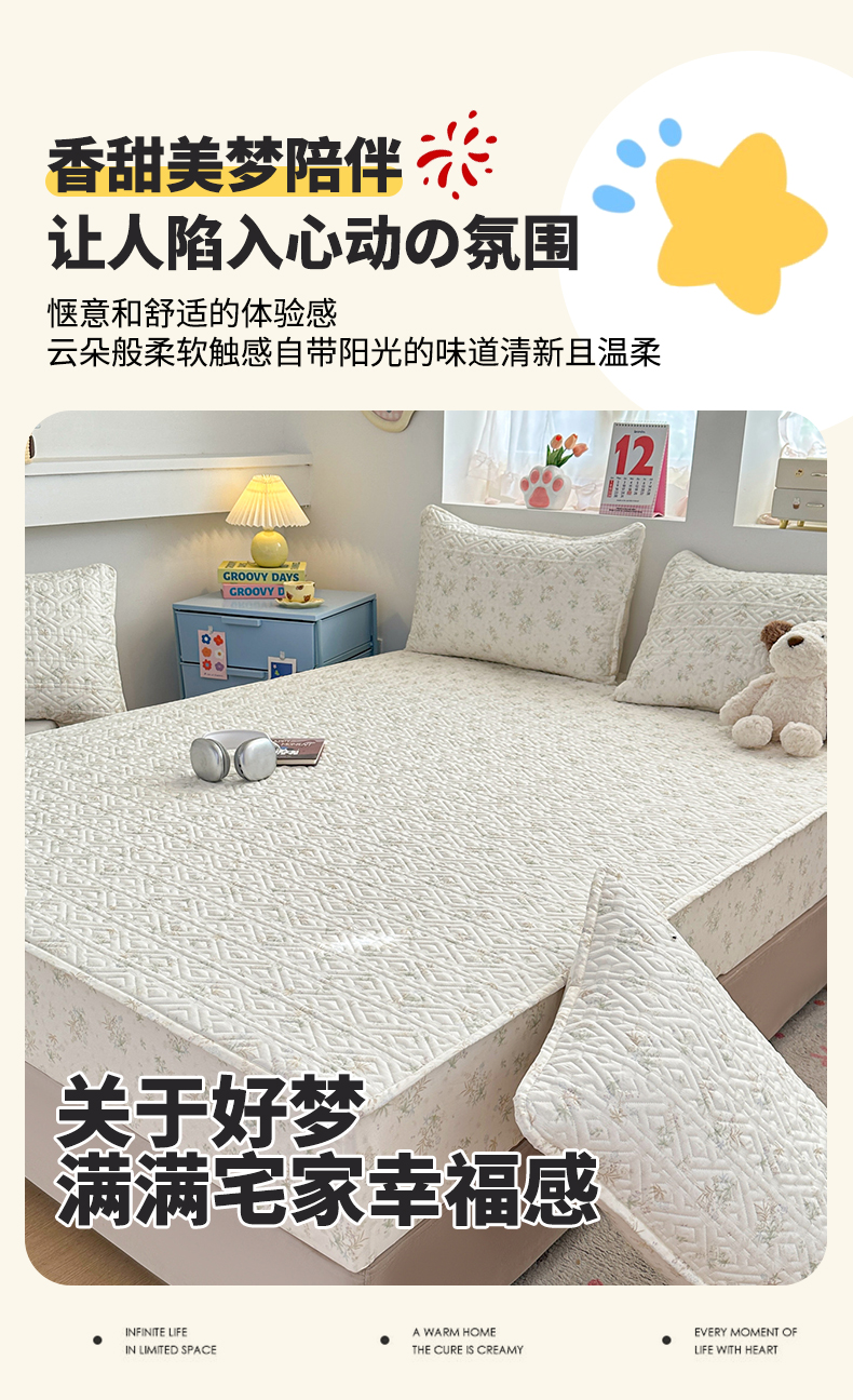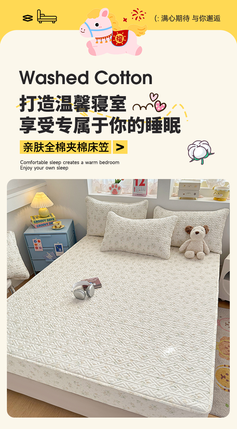 忘忧草 2026新款清新简约全棉印花夹棉床笠 荷叶邮差
