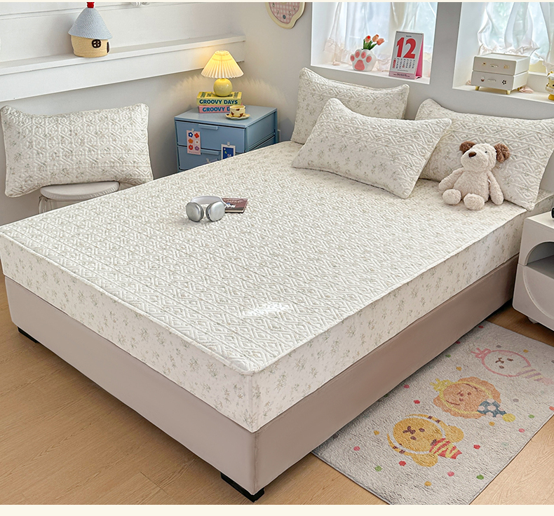 (总)忘忧草 2025新款A类针织棉夹棉防水床笠隔尿垫床罩,淡雅白,豆沙红,翡翠绿,丽人粉,浅米黄,绅士灰