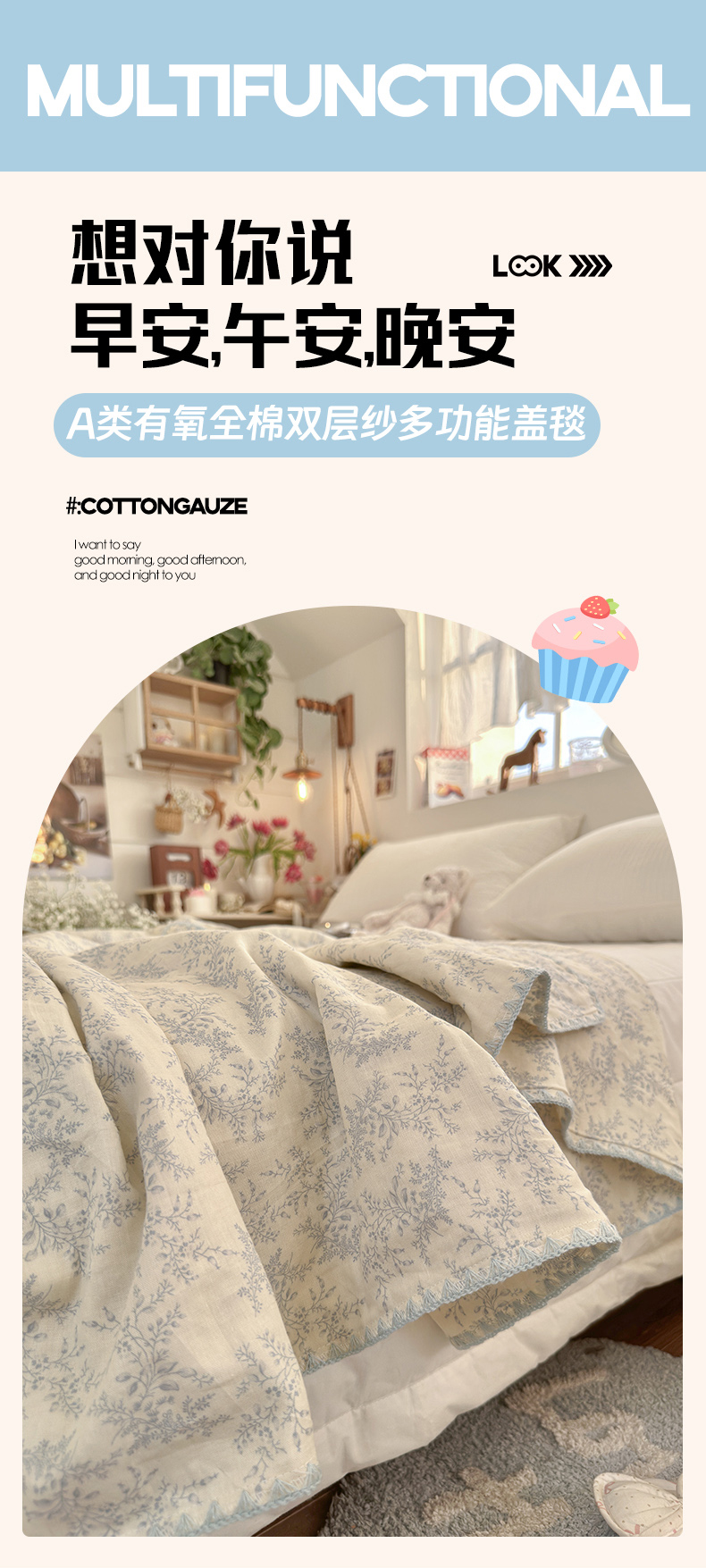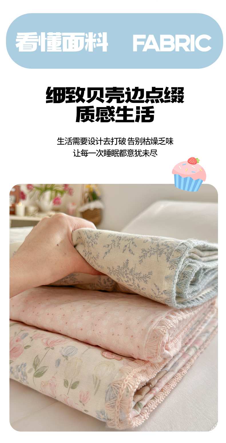 (总)暖阳 2026新款全棉纯棉双层纱夏季毯盖毯毯子,贝壳蓝,蝶扑衣,花境布偶,绿姿,莓莓兔软糖,瑞莎蓝,星仔软糖,烟霞漫舞绿,月铃喵喵,云棉莓朵粉