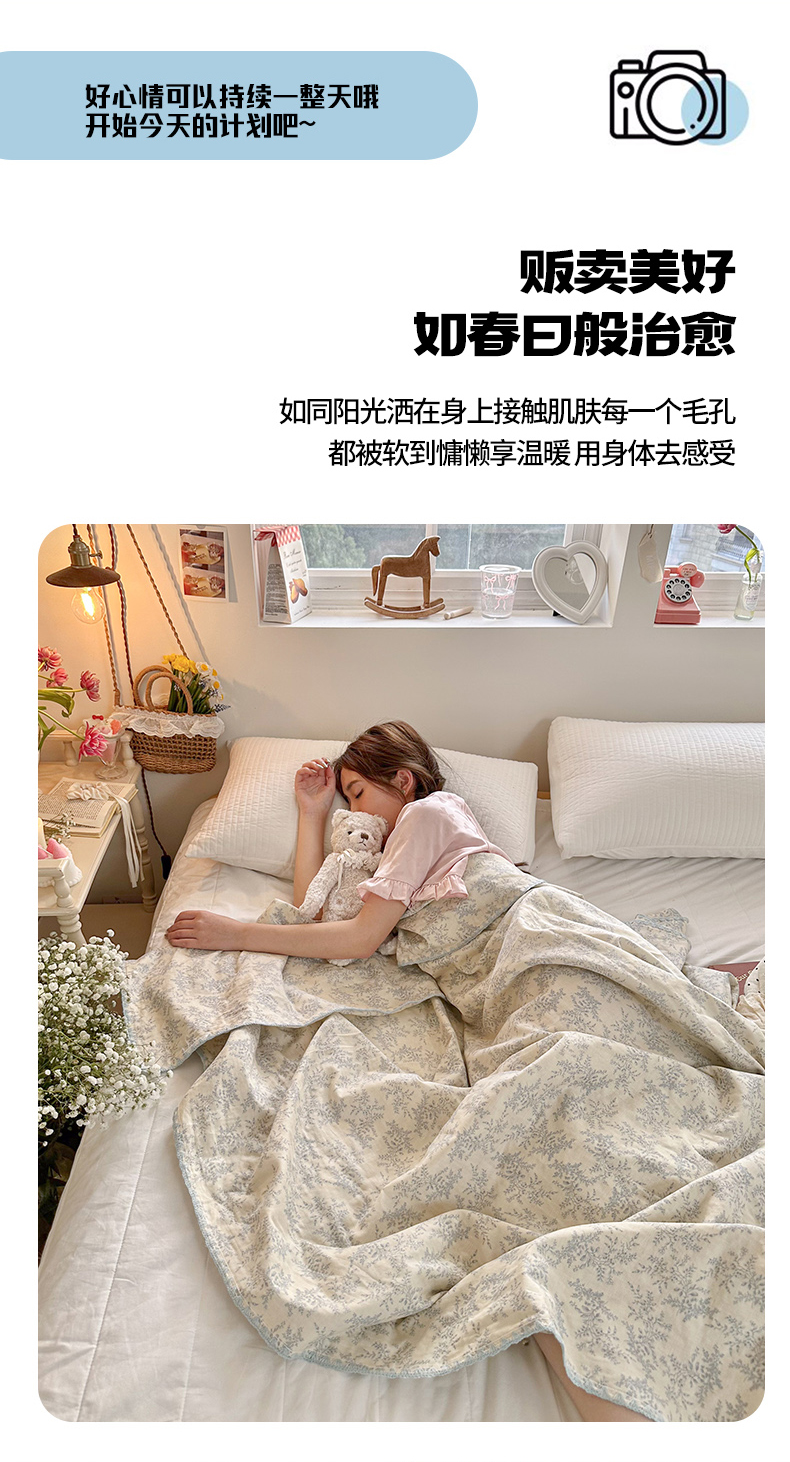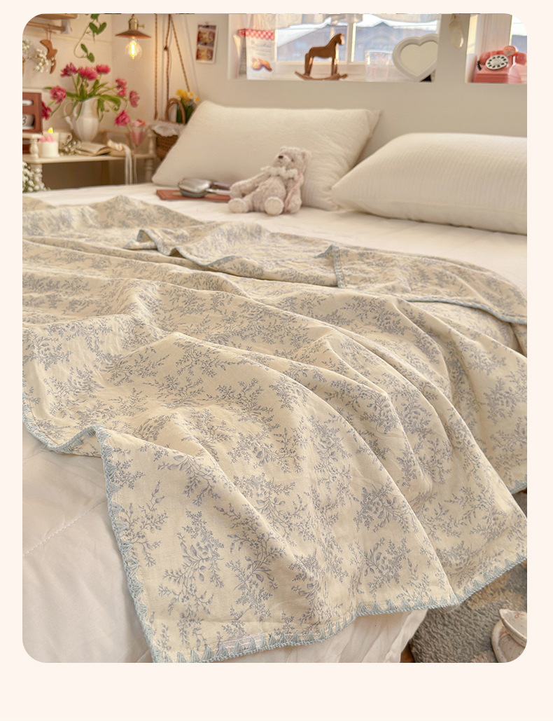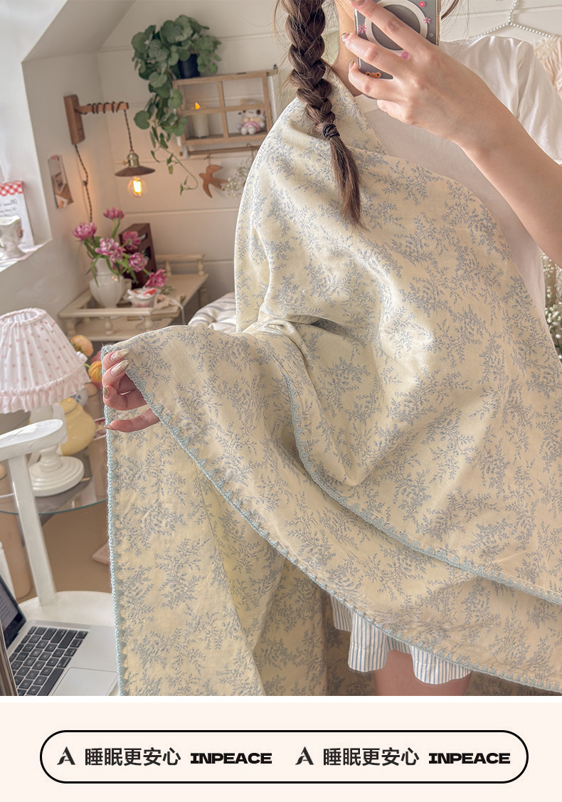 商品名称:暖阳 2026新款全棉纯棉双层纱夏季毯盖毯毯子 瑞莎蓝
