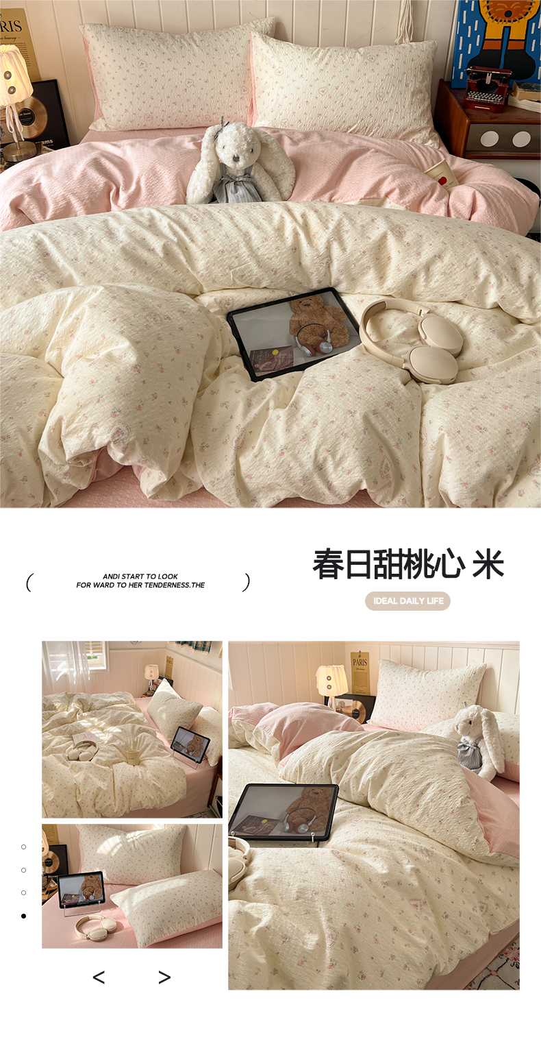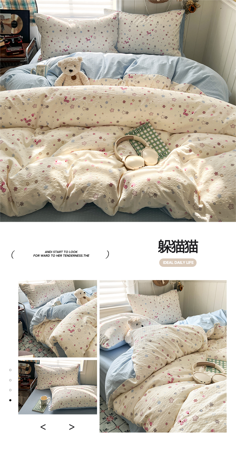 当前位置: 91家纺网 > 商品网购 > 床品套件 > 四件套 > 其它四件套 > 水木坊 2026春夏新款高品质泡芙普通款四件套 格格心