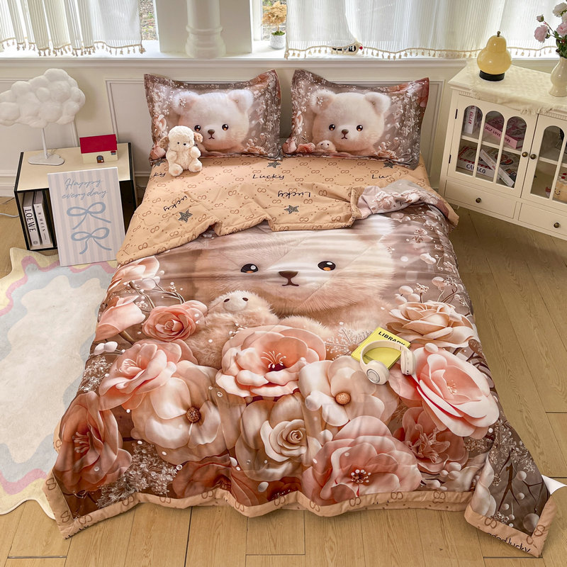 • 91家纺网 家纺一手货源 找家纺 (总)宝薇 2026春夏新款7D卡通仿棉磨毛水洗棉夏被夏凉被空调被四件套,大白兔,繁星,好运松鼠,欢乐时光,梨花开,玫瑰兔,萌萌熊,牵手熊,太空人,天使兔,甜心兔,月亮兔