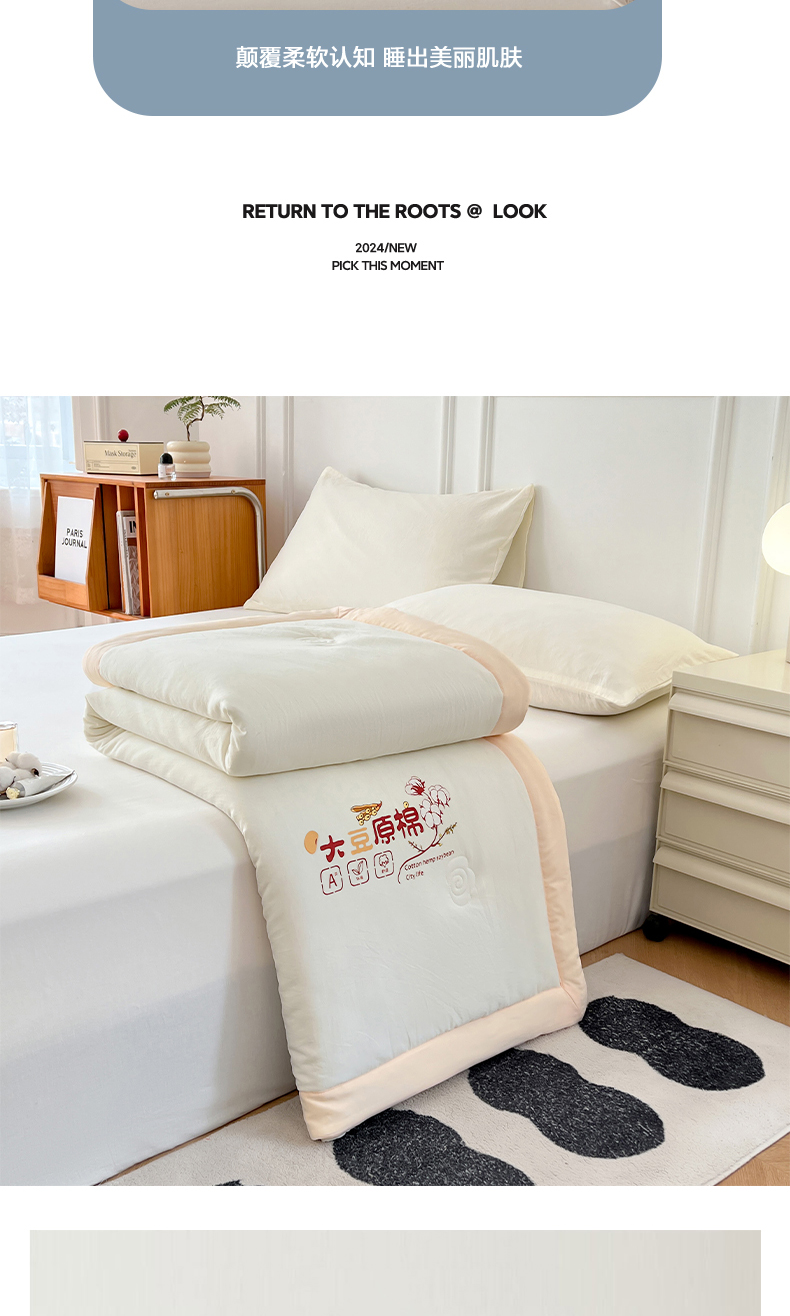 悦织语 2026新款A类纯色原棉大豆夏被 原棉-米白