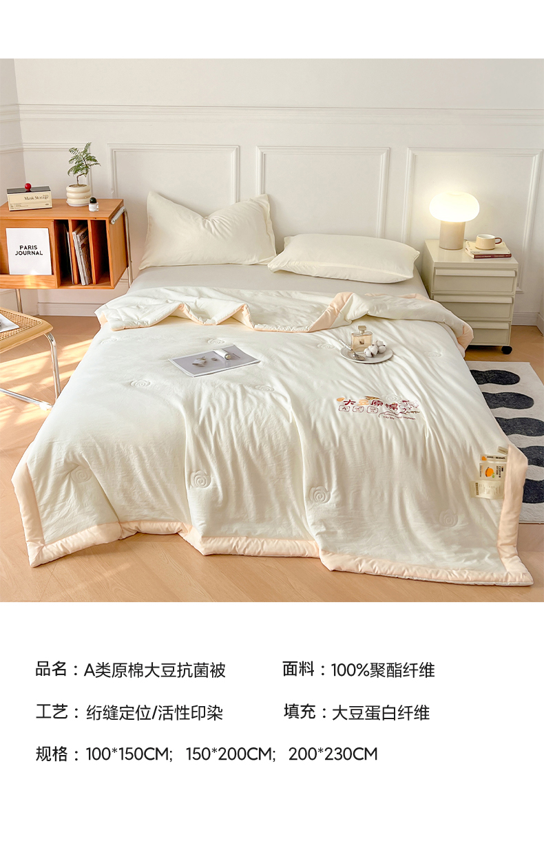 商品名称:悦织语 2026新款A类纯色原棉大豆夏被 原棉-米白