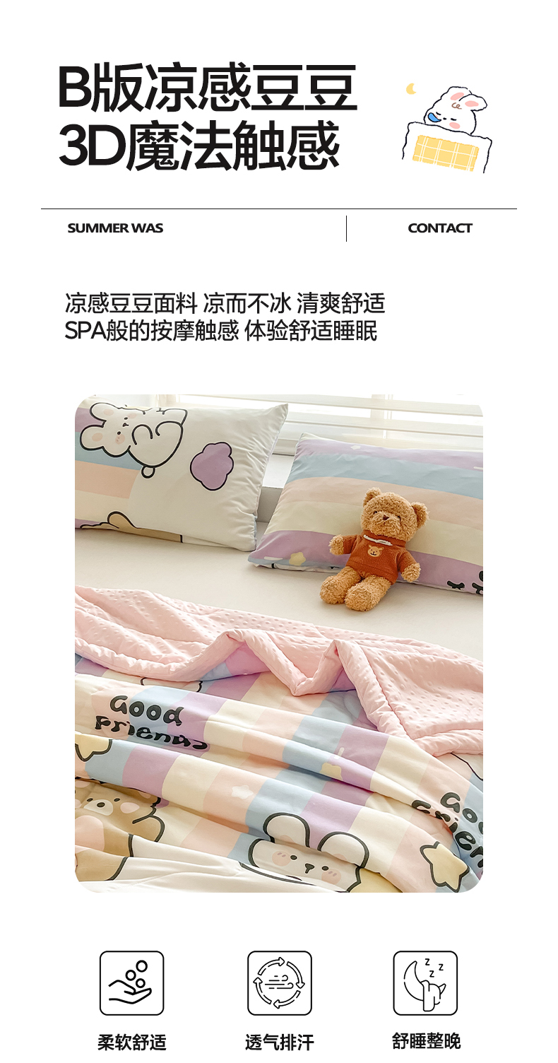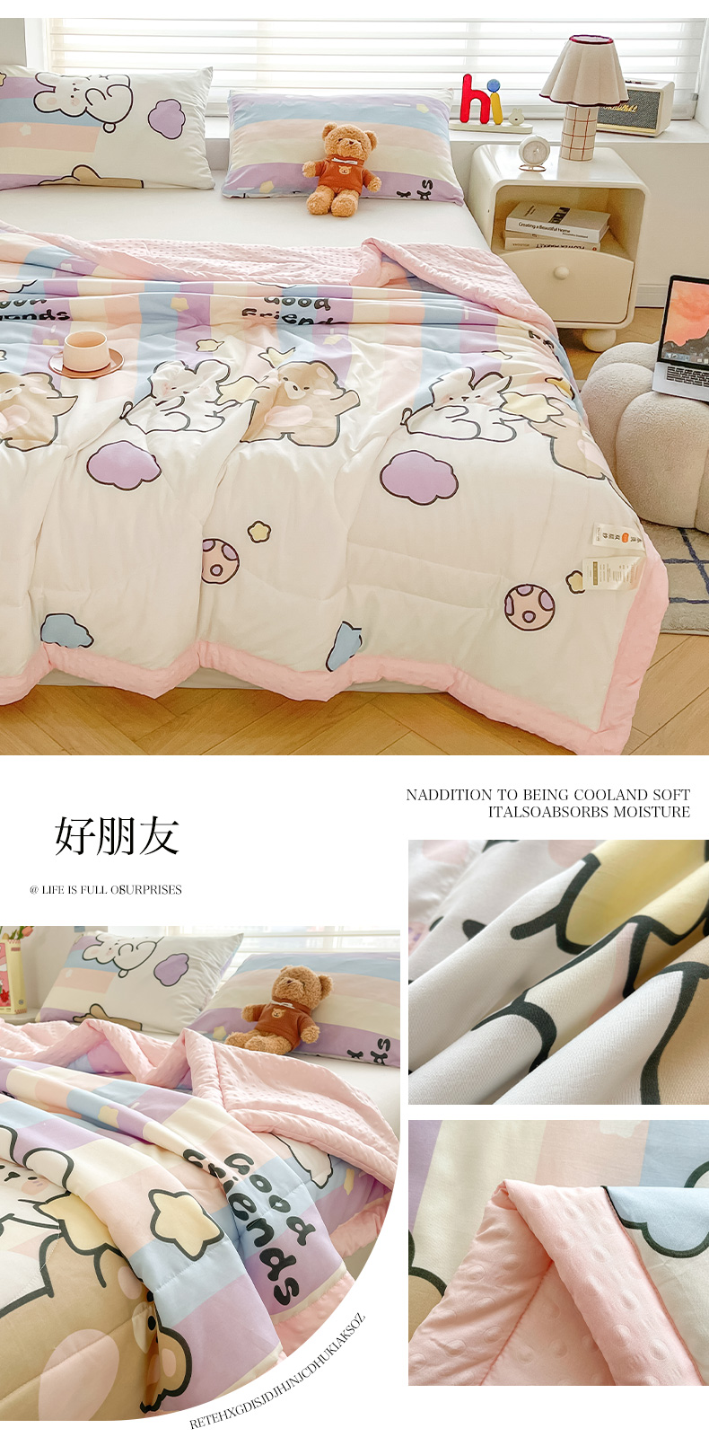 商品名称:悦织语 2026新款A类水洗棉双层纱豆豆被大豆夏凉被 好朋友