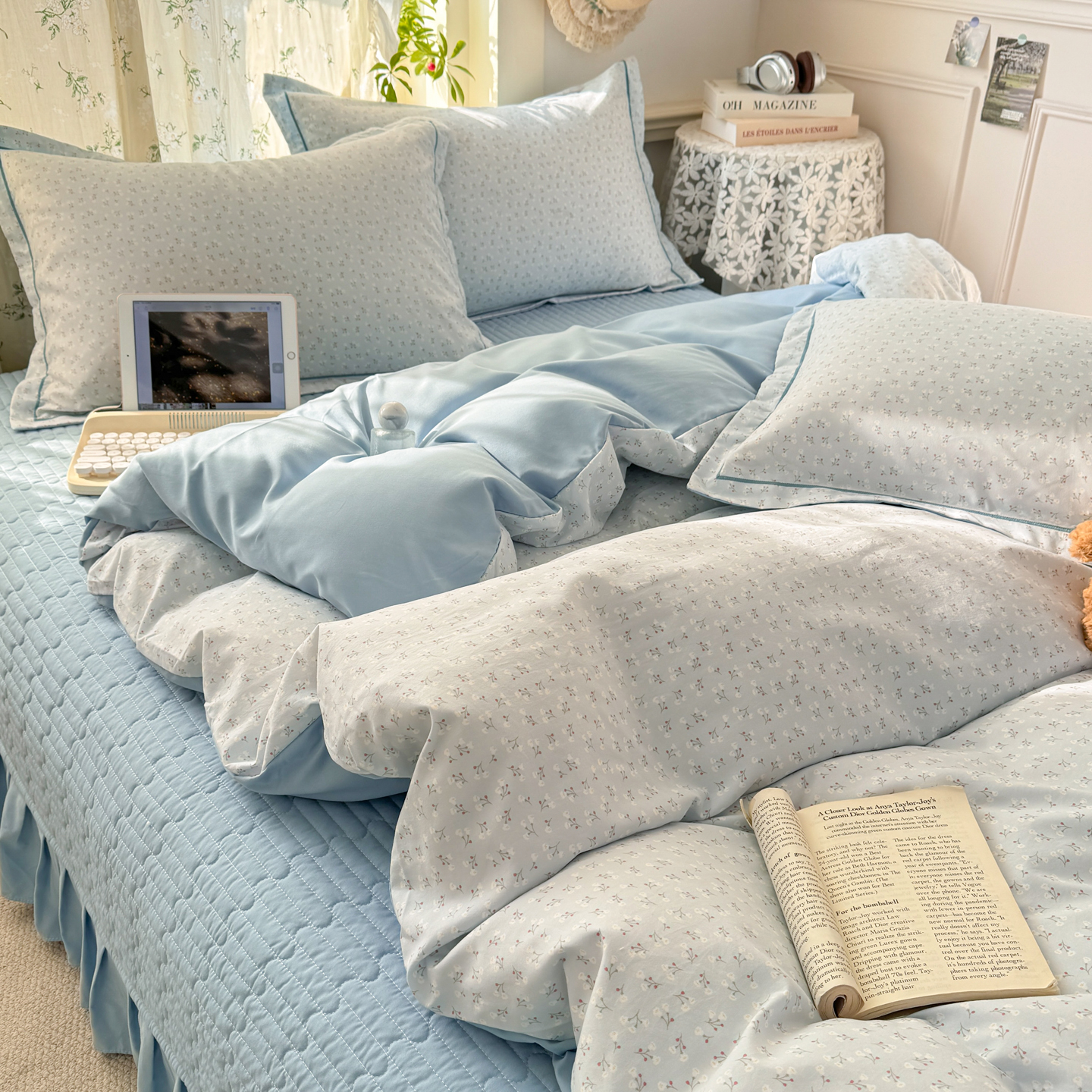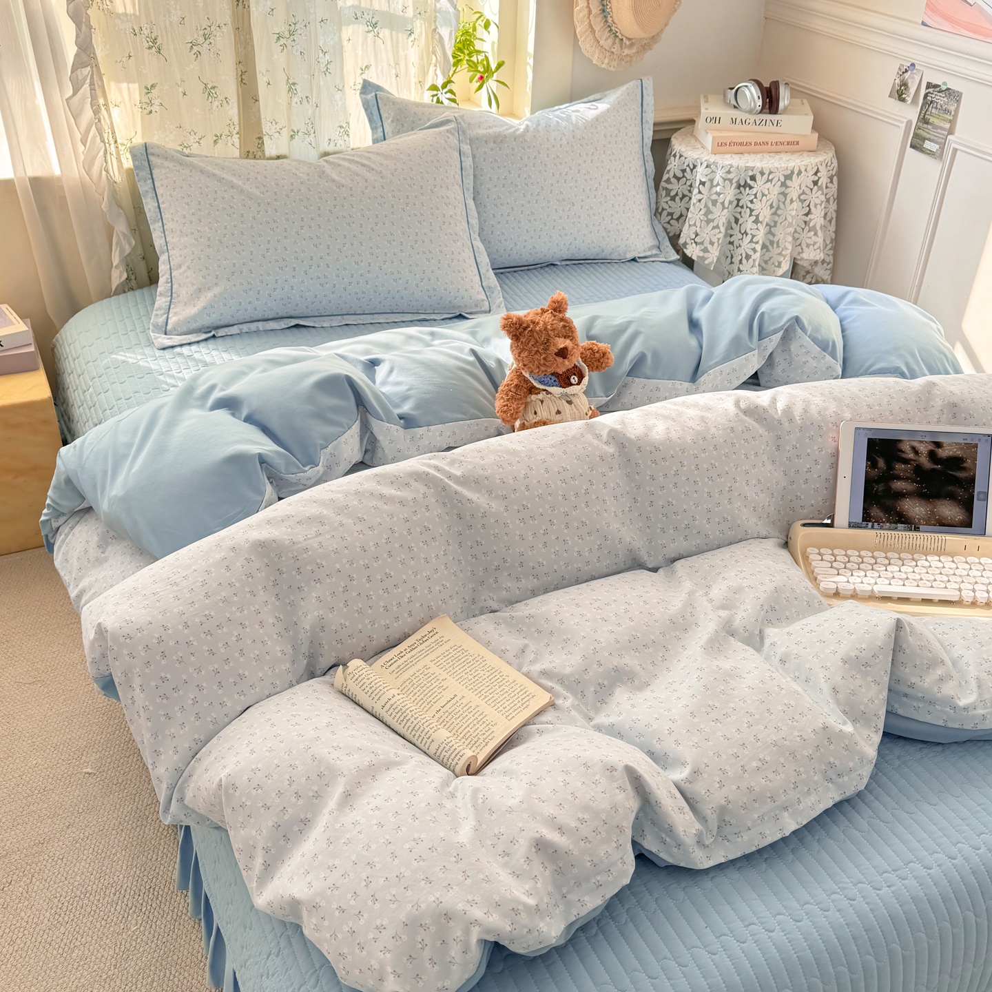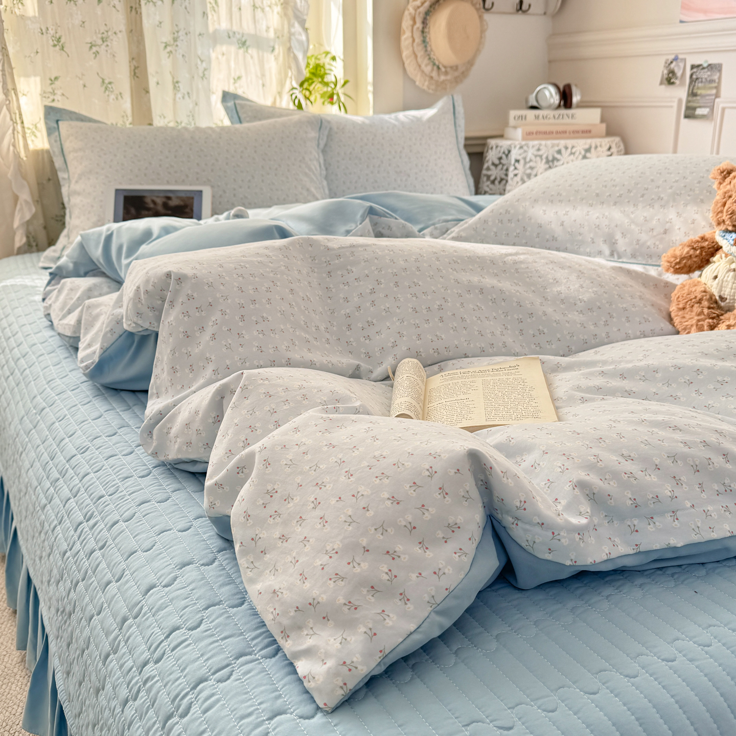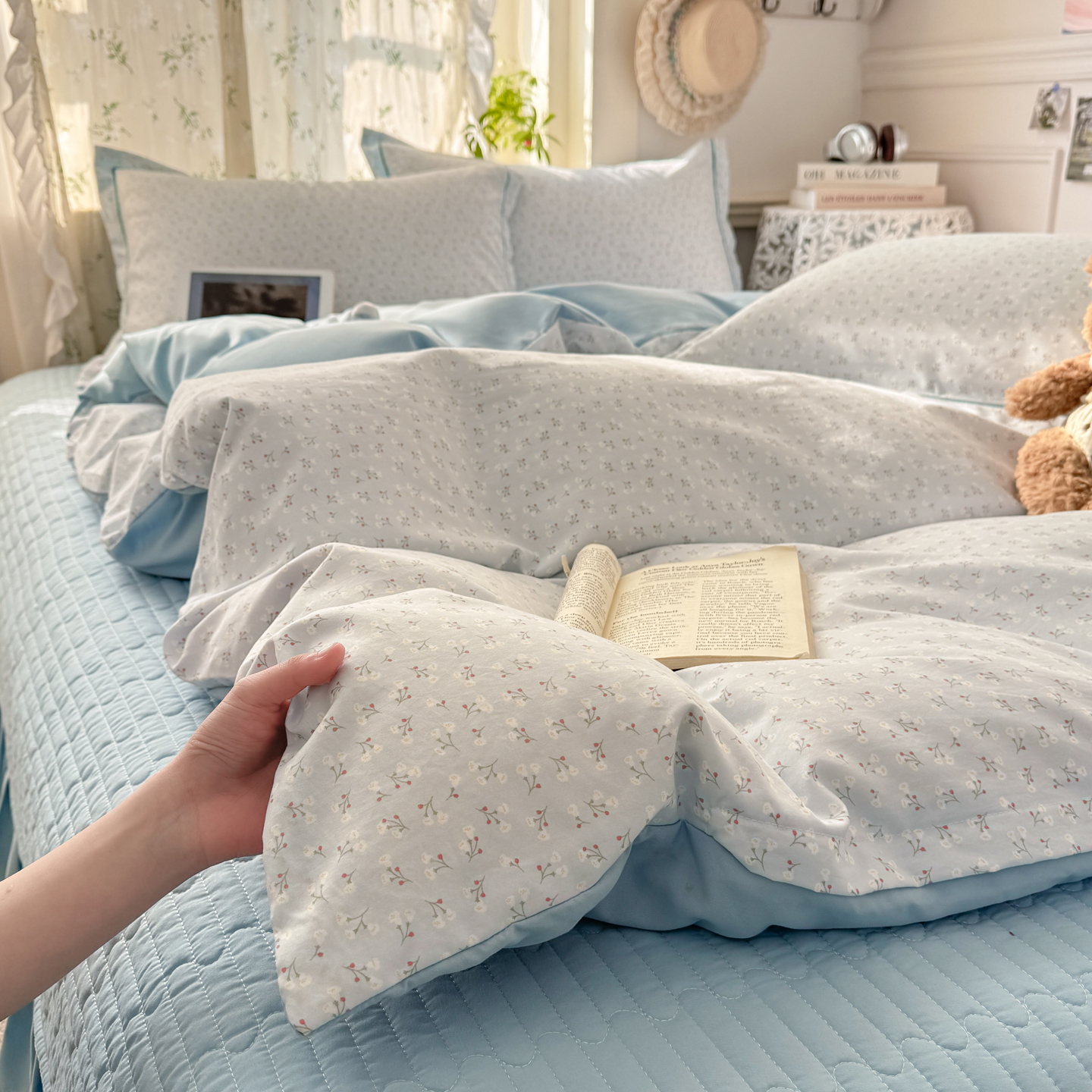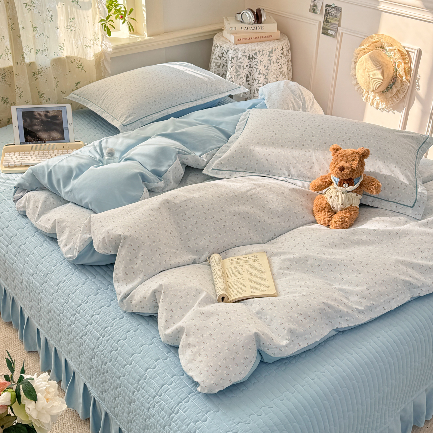 富之航家纺 2026新款小清新床盖四件套 繁星蓝灰