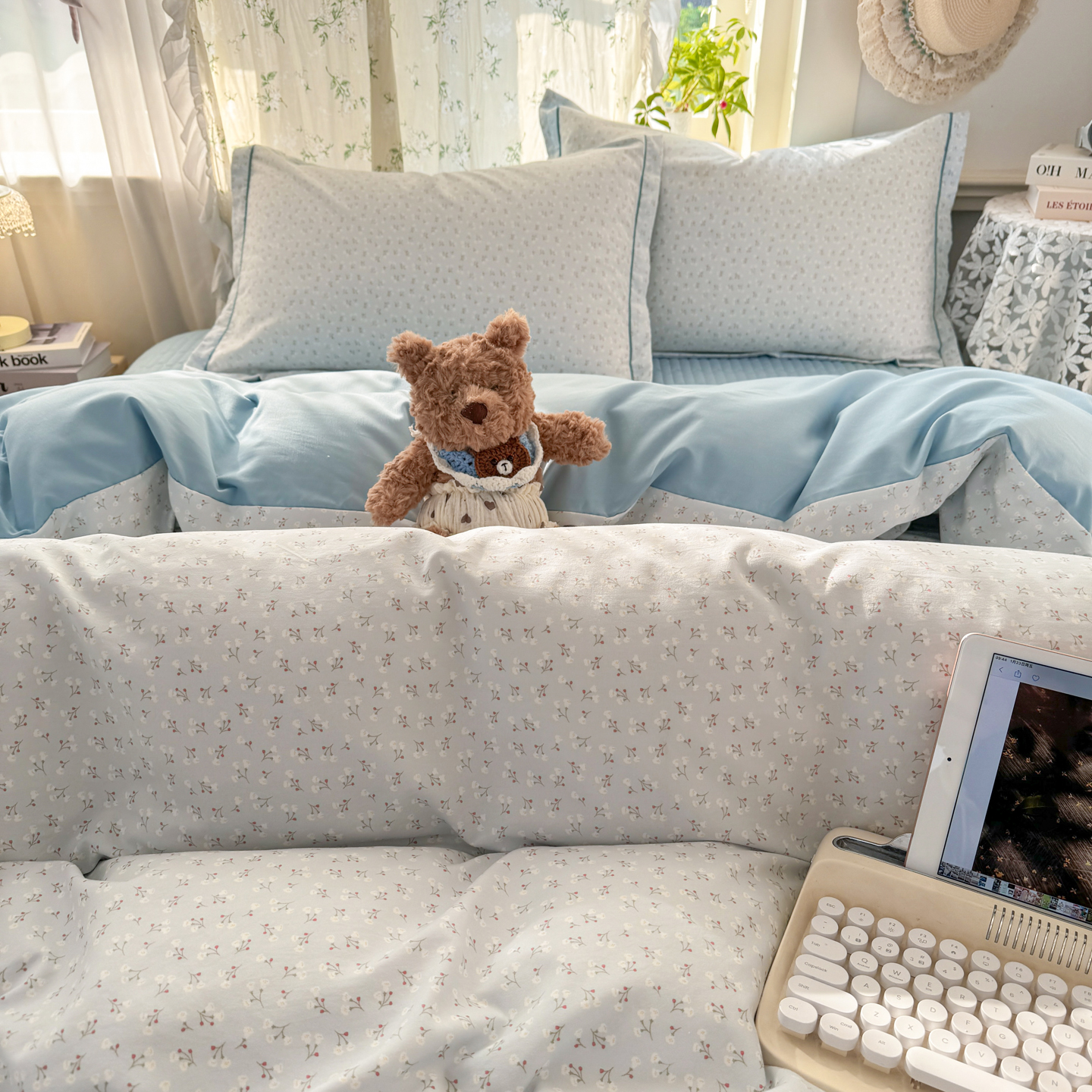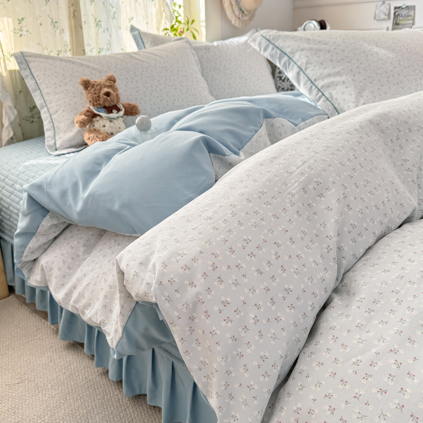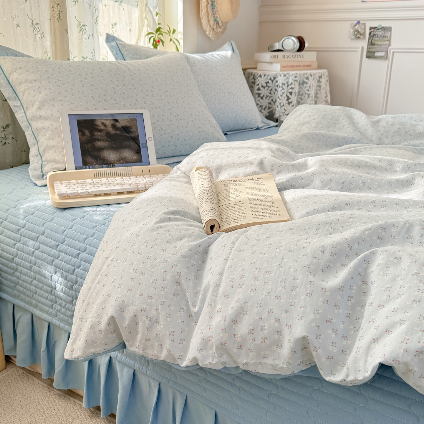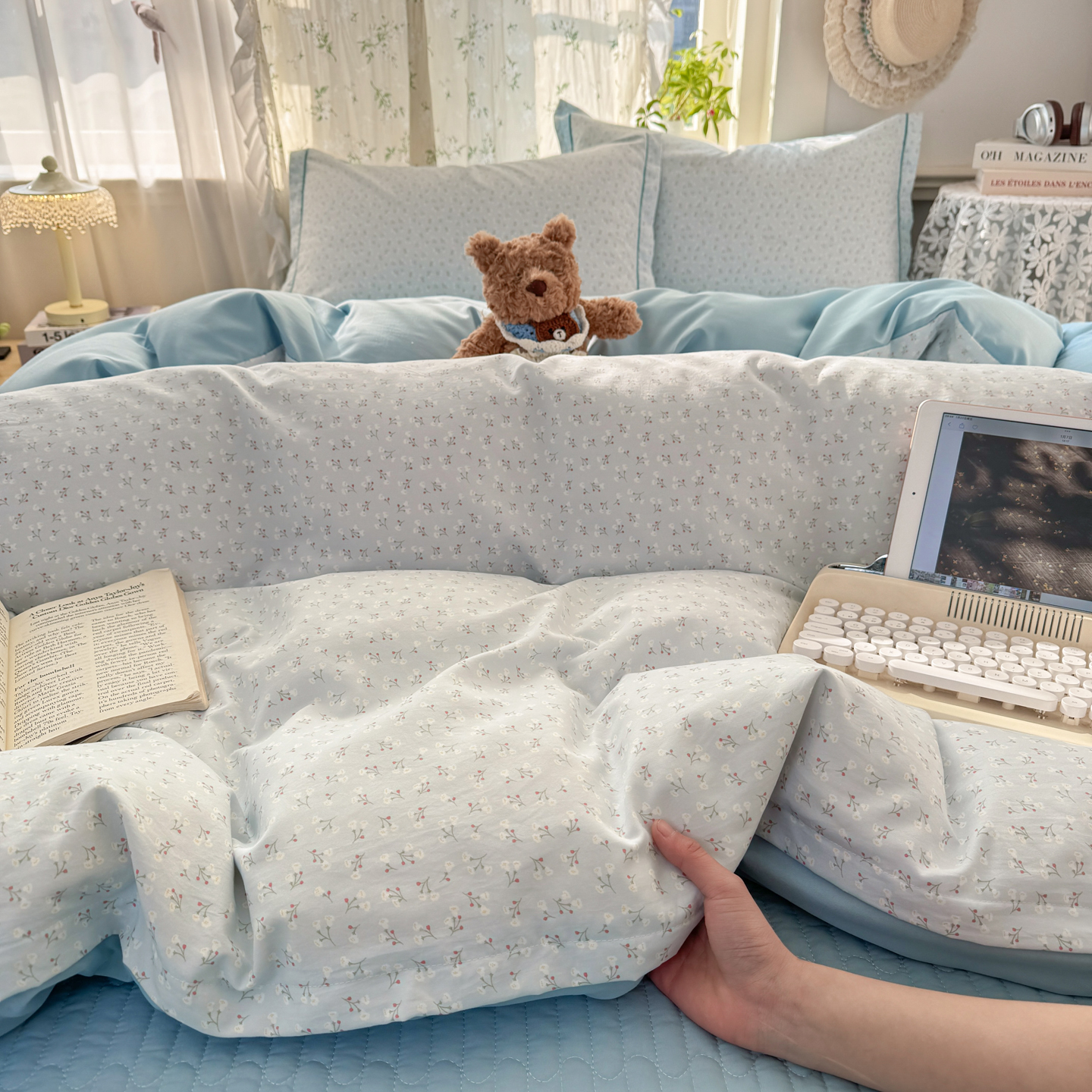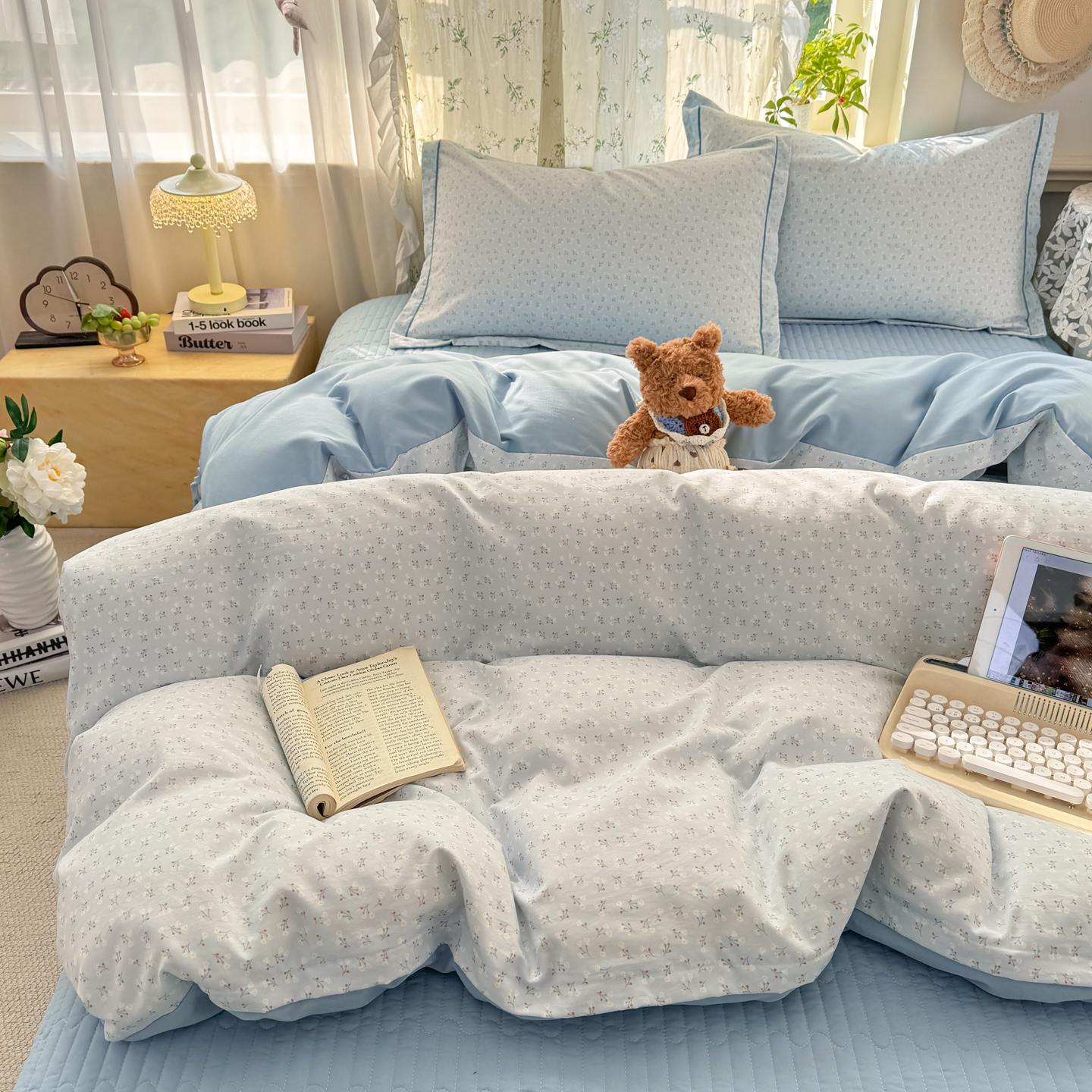 富之航家纺 2026新款小清新床盖四件套 繁星蓝灰