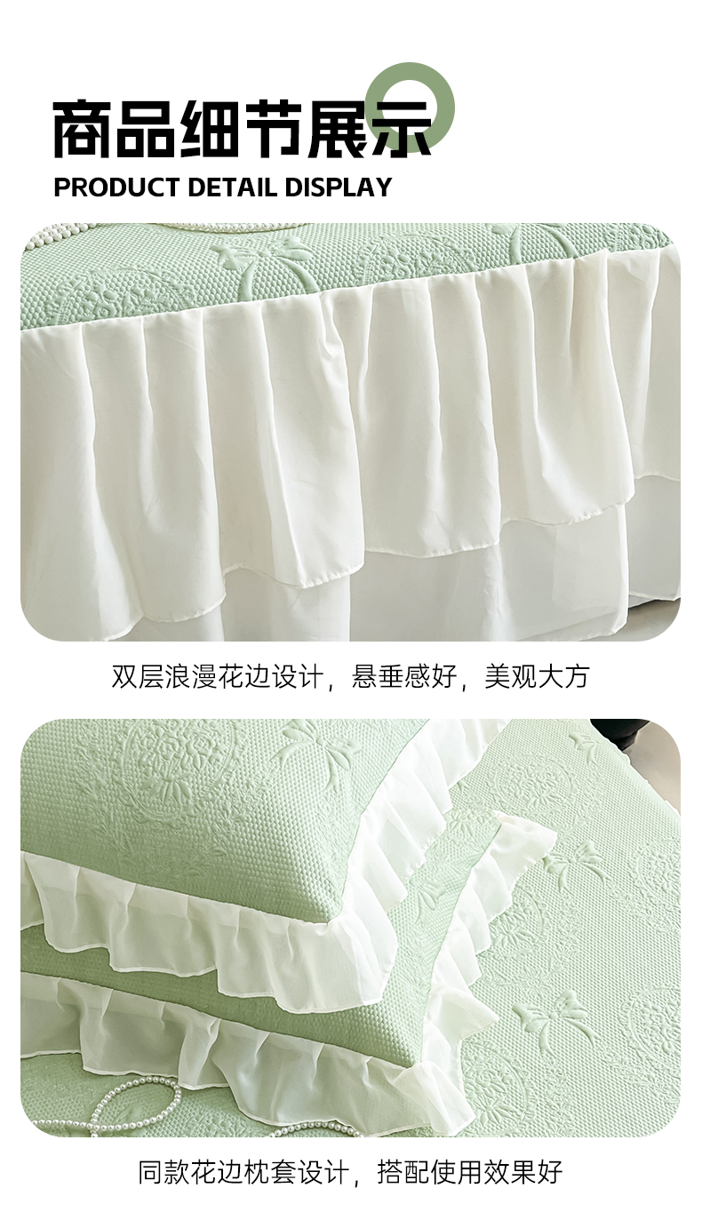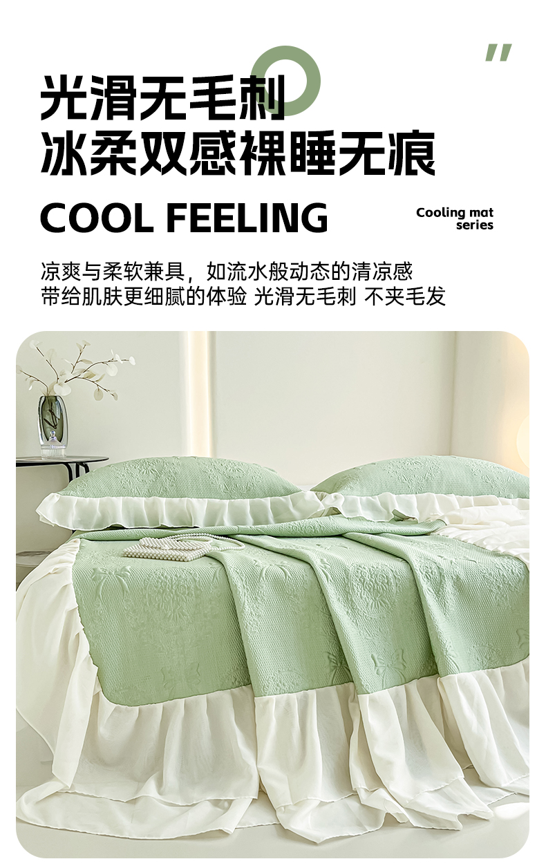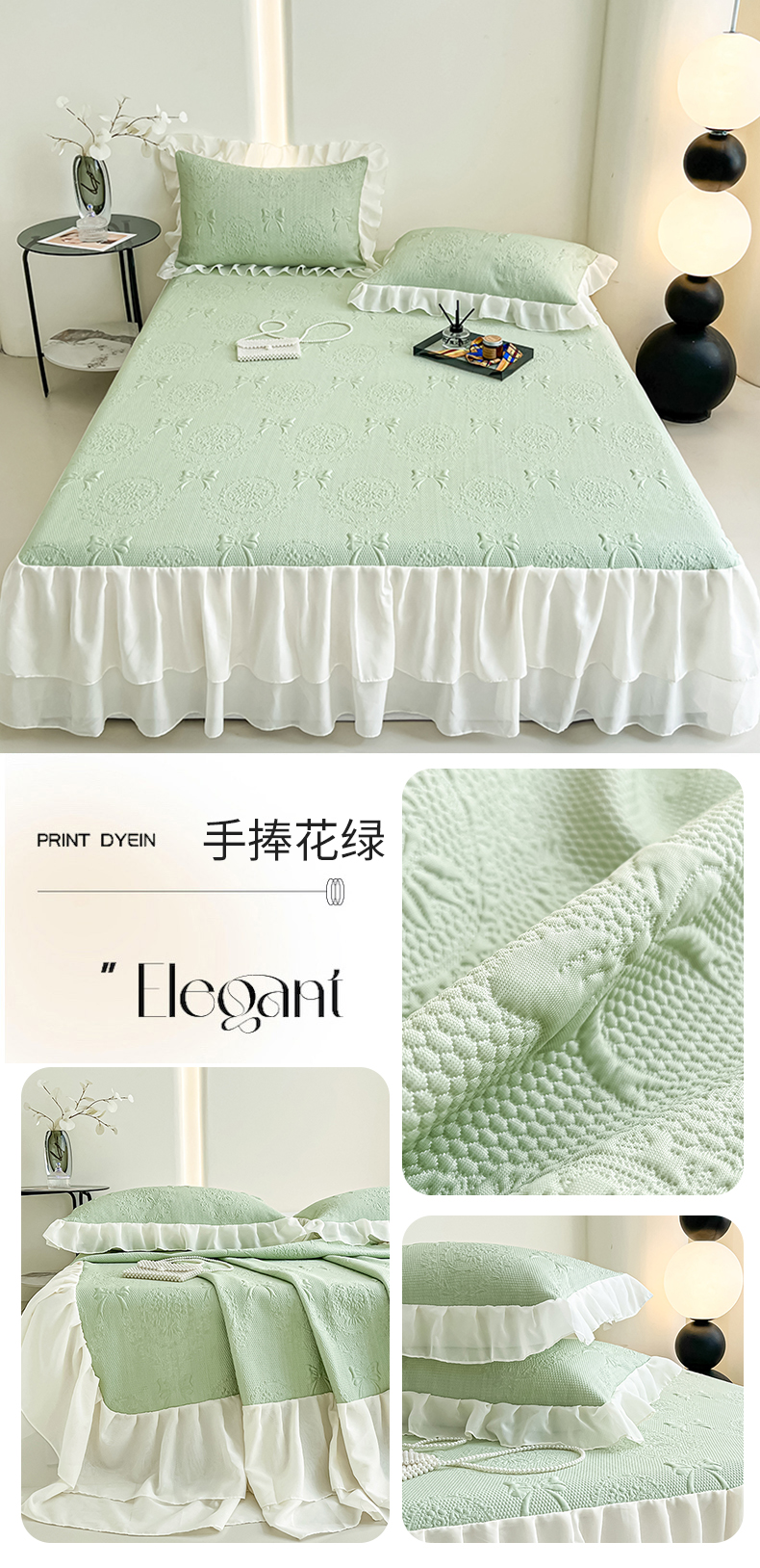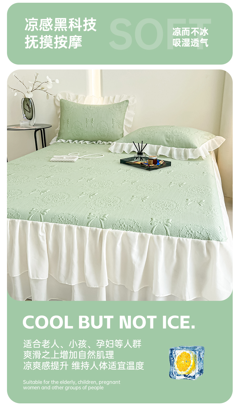 (总)佰亿莱 2026新款凉感豆豆提花床裙款凉席手捧花系列,手捧花粉,手捧花灰,手捧花蓝,手捧花绿,手捧花紫