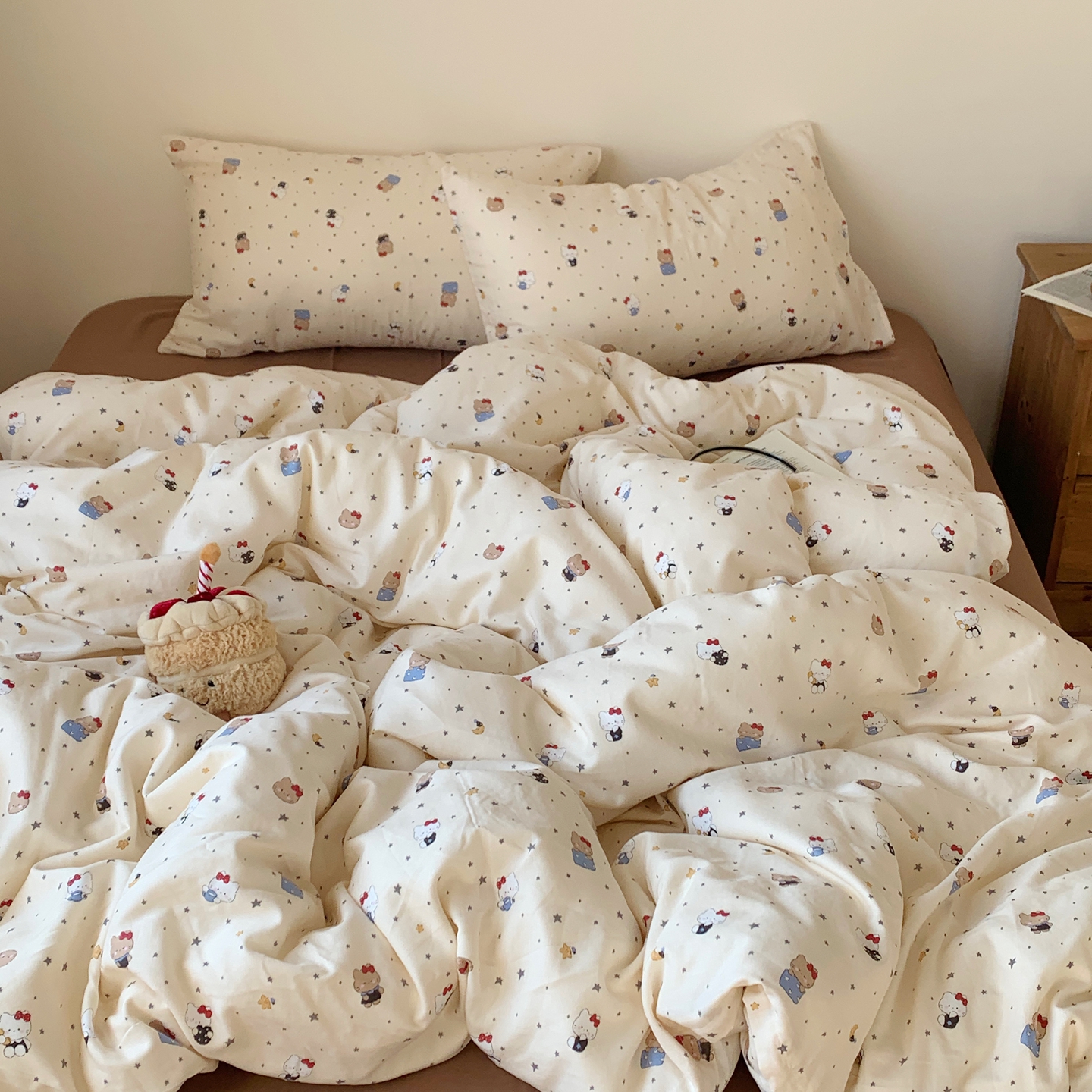 当前位置: 91家纺网 > 商品网购 > 床品套件 > 四件套 > 全棉普通四件套 > 桃喜 2026春夏新款全棉纯棉双层纱系列四件套 双层纱-条纹星星黄