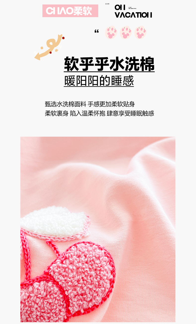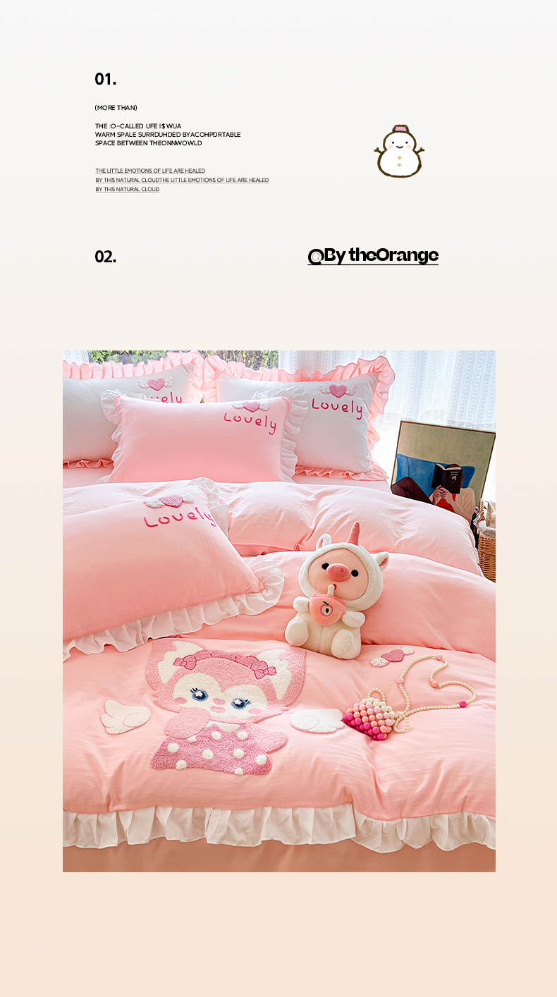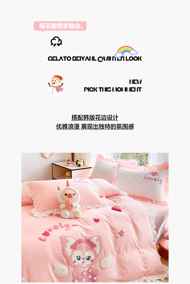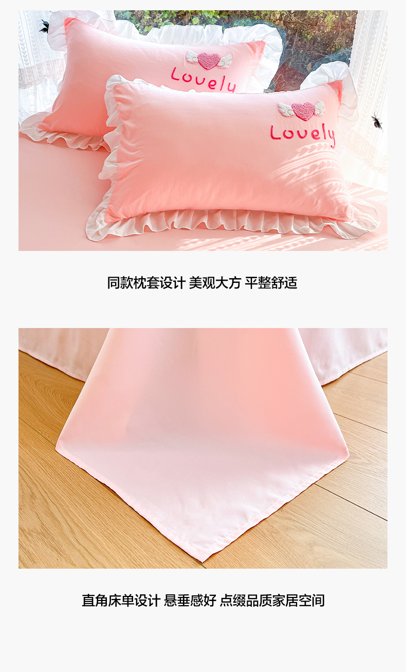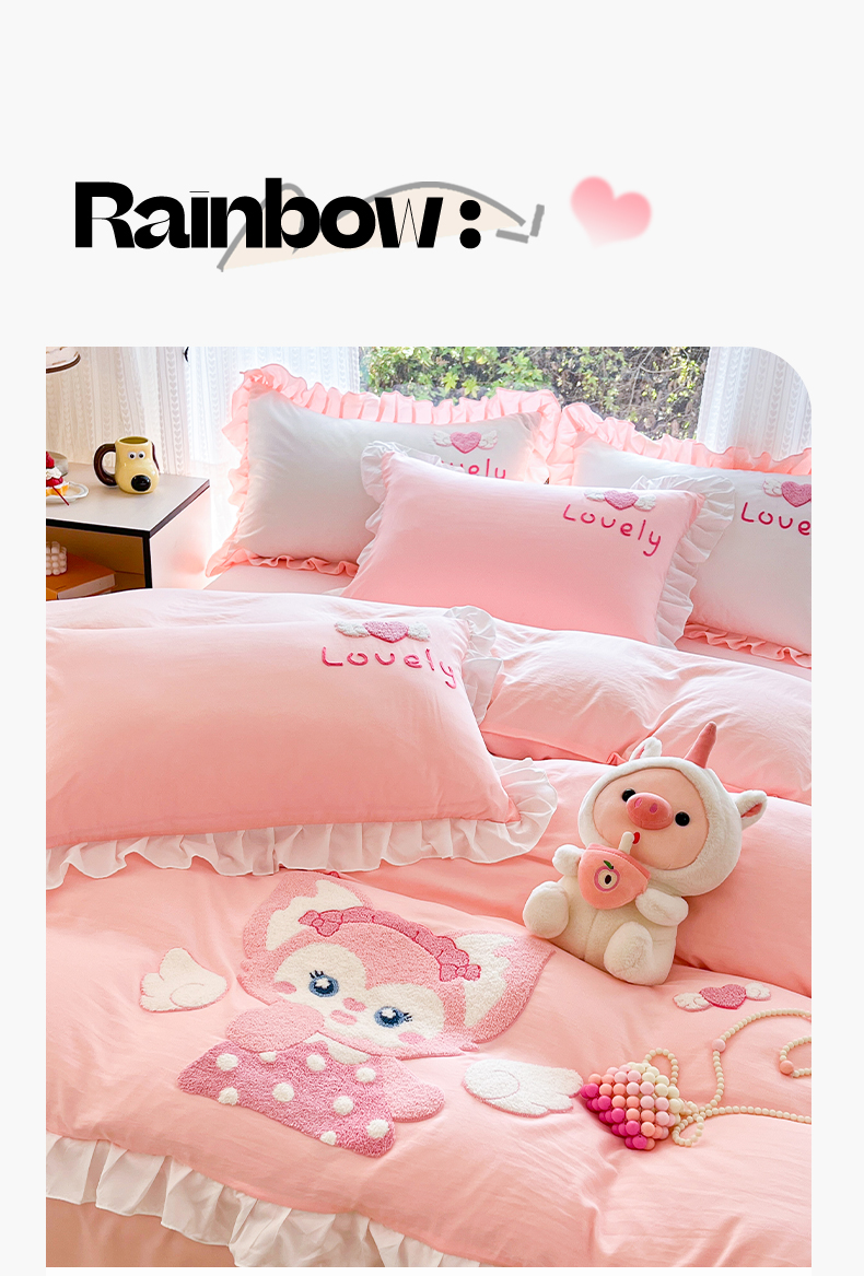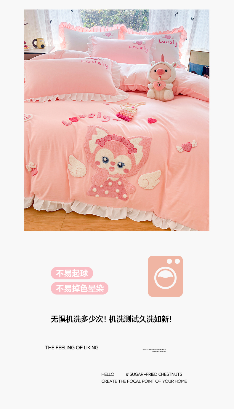 当前位置: 91家纺网 > 商品网购 > 床品套件 > 四件套 > 水洗棉四件套 > 泉欣家纺 2026新款网红可爱卡通 公主风毛巾绣花水洗棉四件套(专版花型) 风铃团团 粉玉