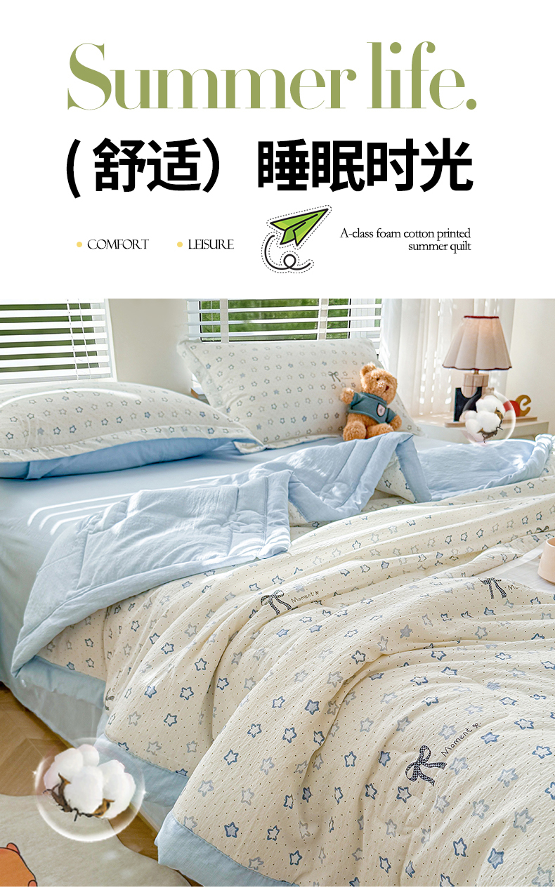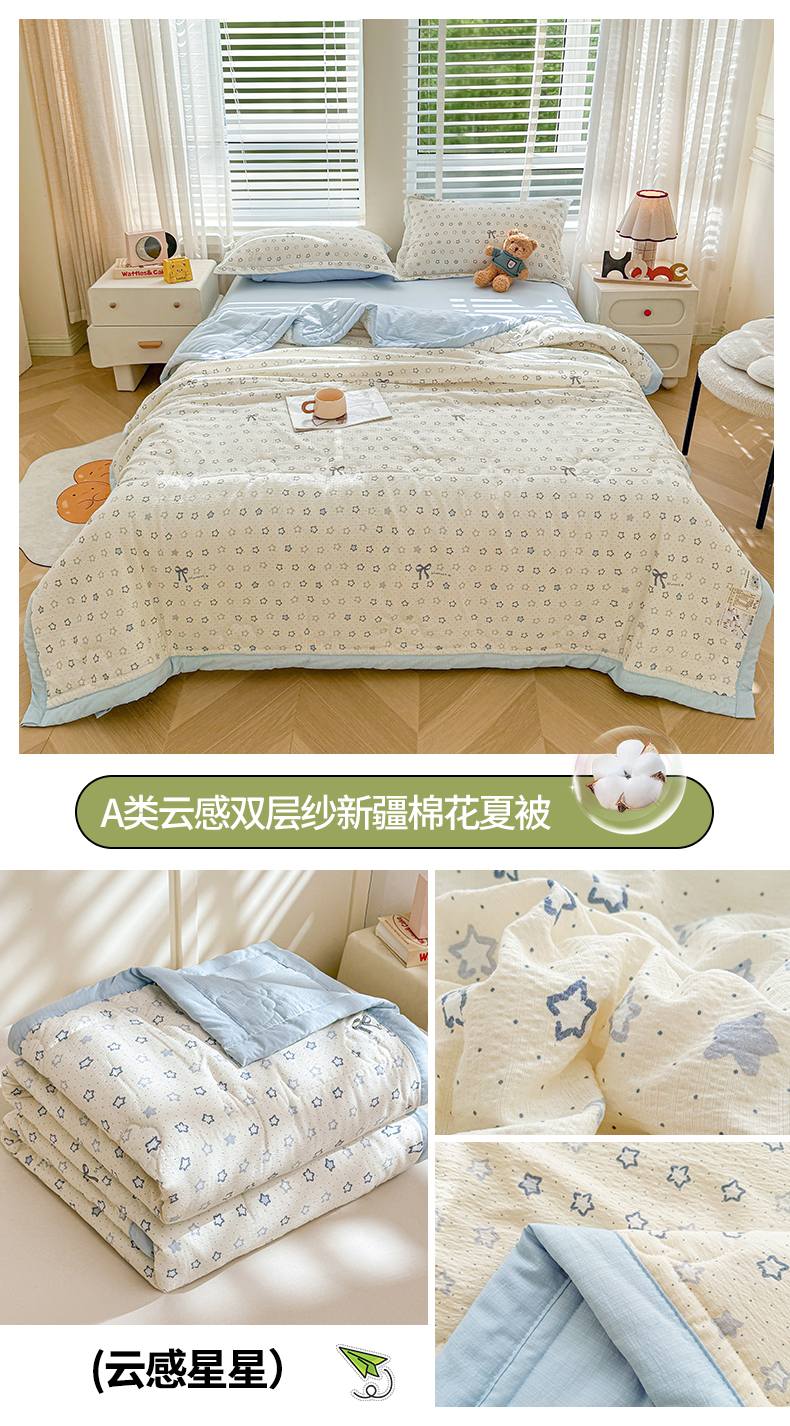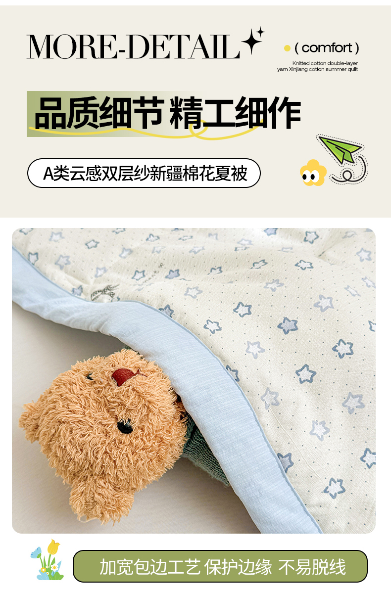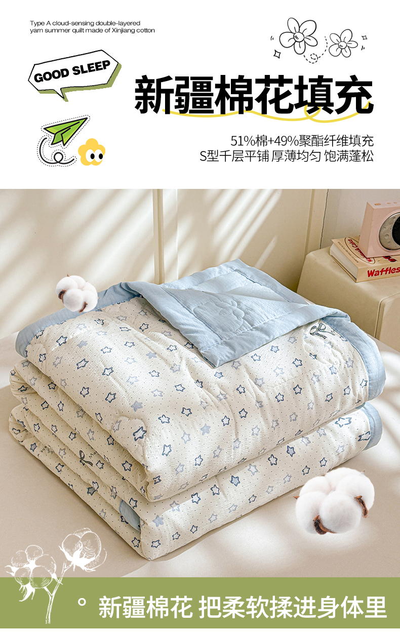 商品名称:西域种棉人·千百笠 2026新款A类新疆棉花夏凉被加宽包边水洗棉卡通印花吸湿透气棉花夏被空调被 云感星星