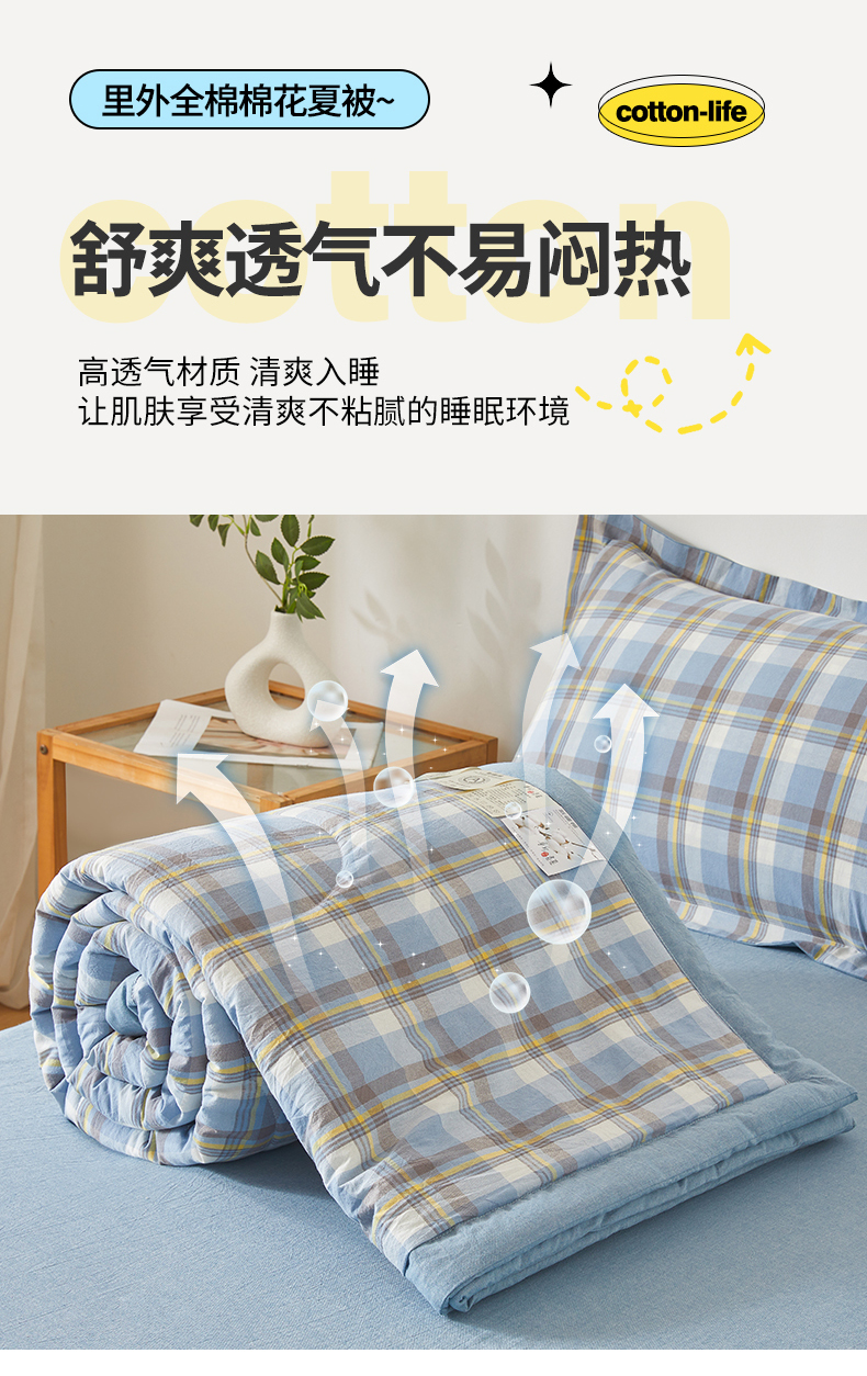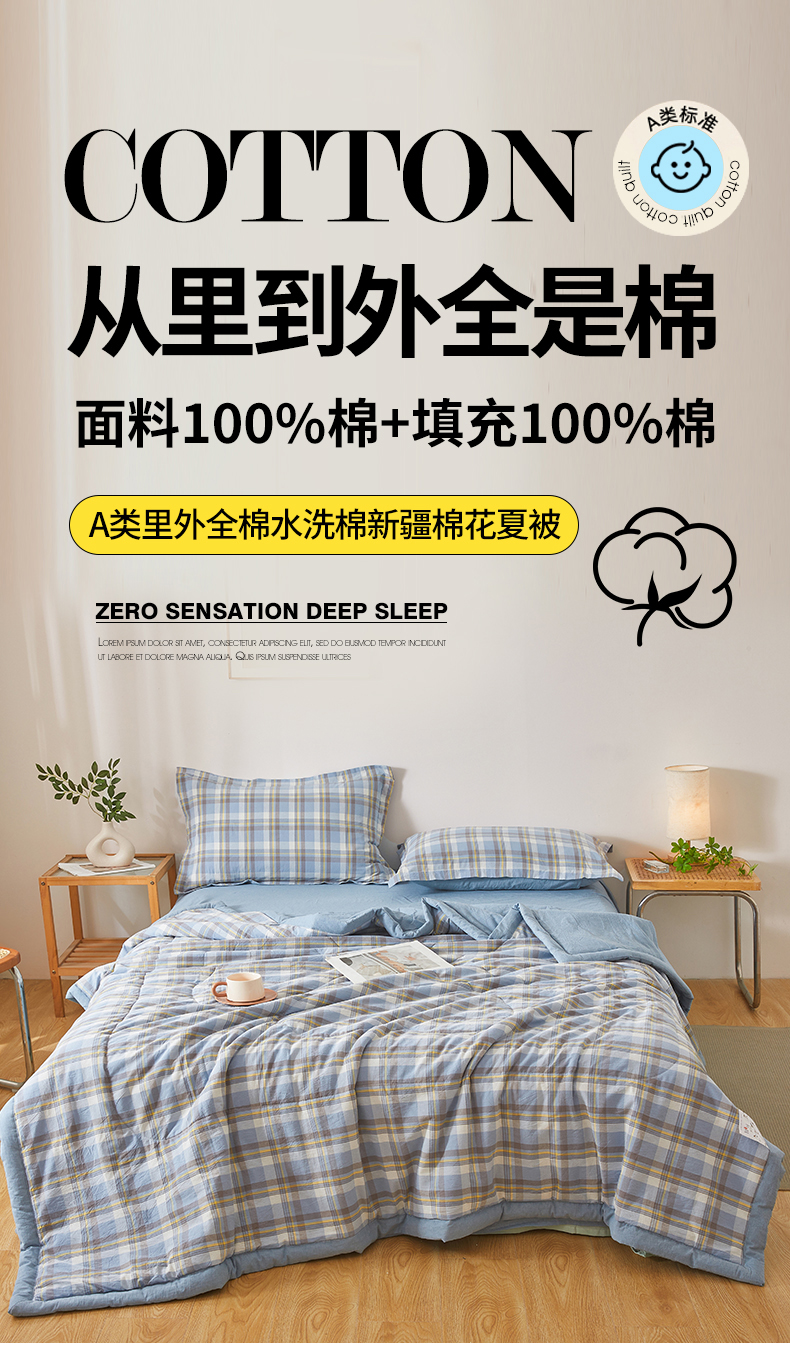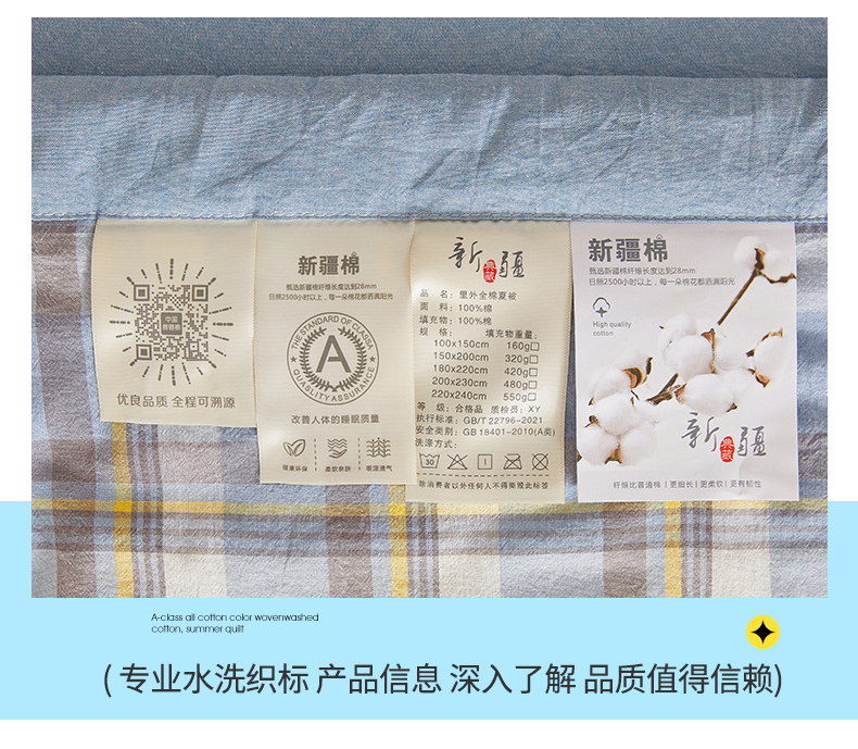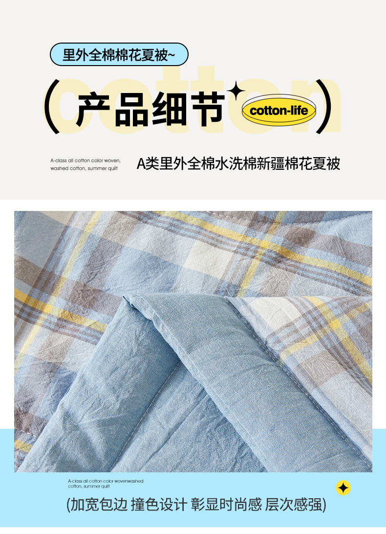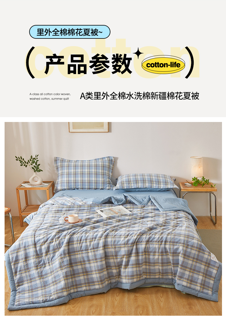 • 91家纺网 家纺一手货源 找家纺 西域种棉人·千百笠 2026新款A类里外全棉夏凉被100%新疆棉纯棉全棉填充无印格子款空调被夏被 里外全棉-印象 蓝格