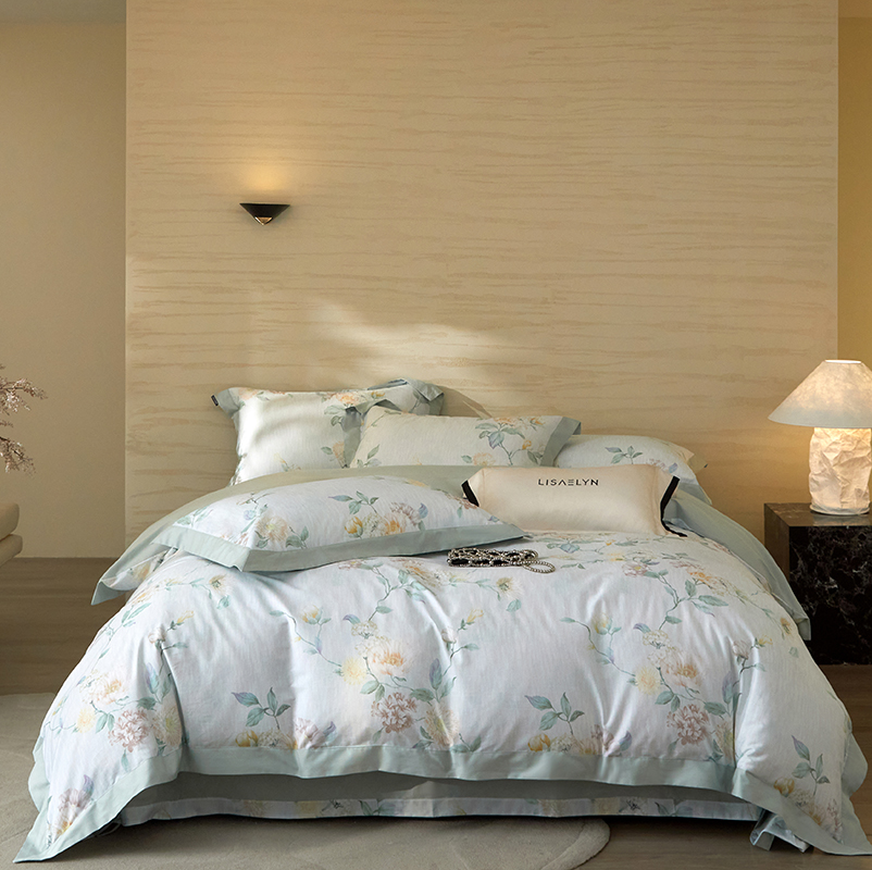 (总)薏思家纺 2026年13376新疆铂金棉飞边工艺印花四件套,春尚好,芳悠-绿,风铃子,花圃,佳昕黄,南笙,欧尼蓝,春颜绿,青黛,如梦绿,时尚风采灰,水中月兰,水中月紫,甜梦粉,甜梦浅紫,向南山,秀颜兰,一帘幽梦,半夏绿,嘉卉紫,洛璃粉