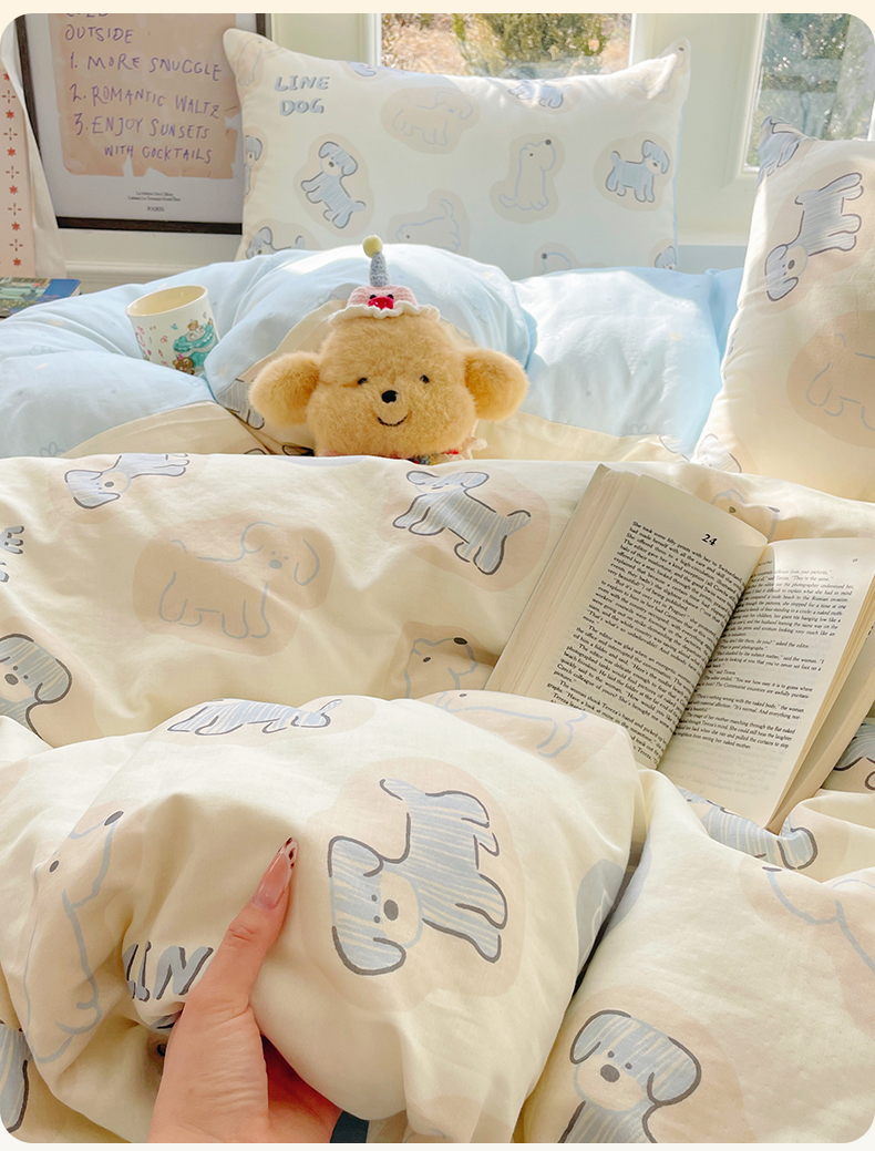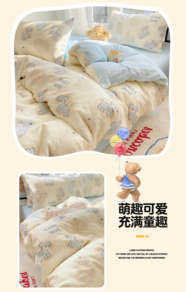 当前位置: 91家纺网 > 商品网购 > 床品套件 > 四件套 > 水洗棉四件套 > 盛秋家纺 2026新款水洗棉印花四件套-卡通系列 修勾蓝+花朵蓝
