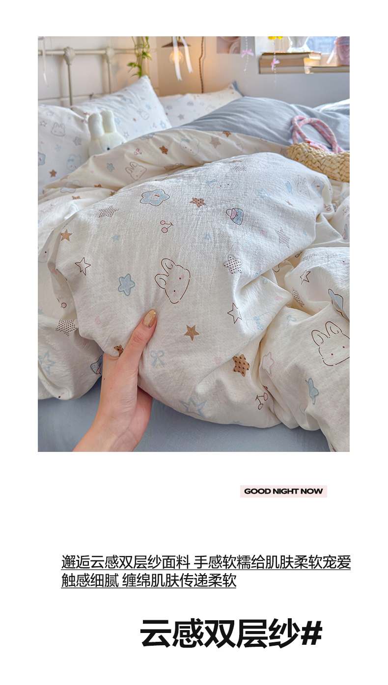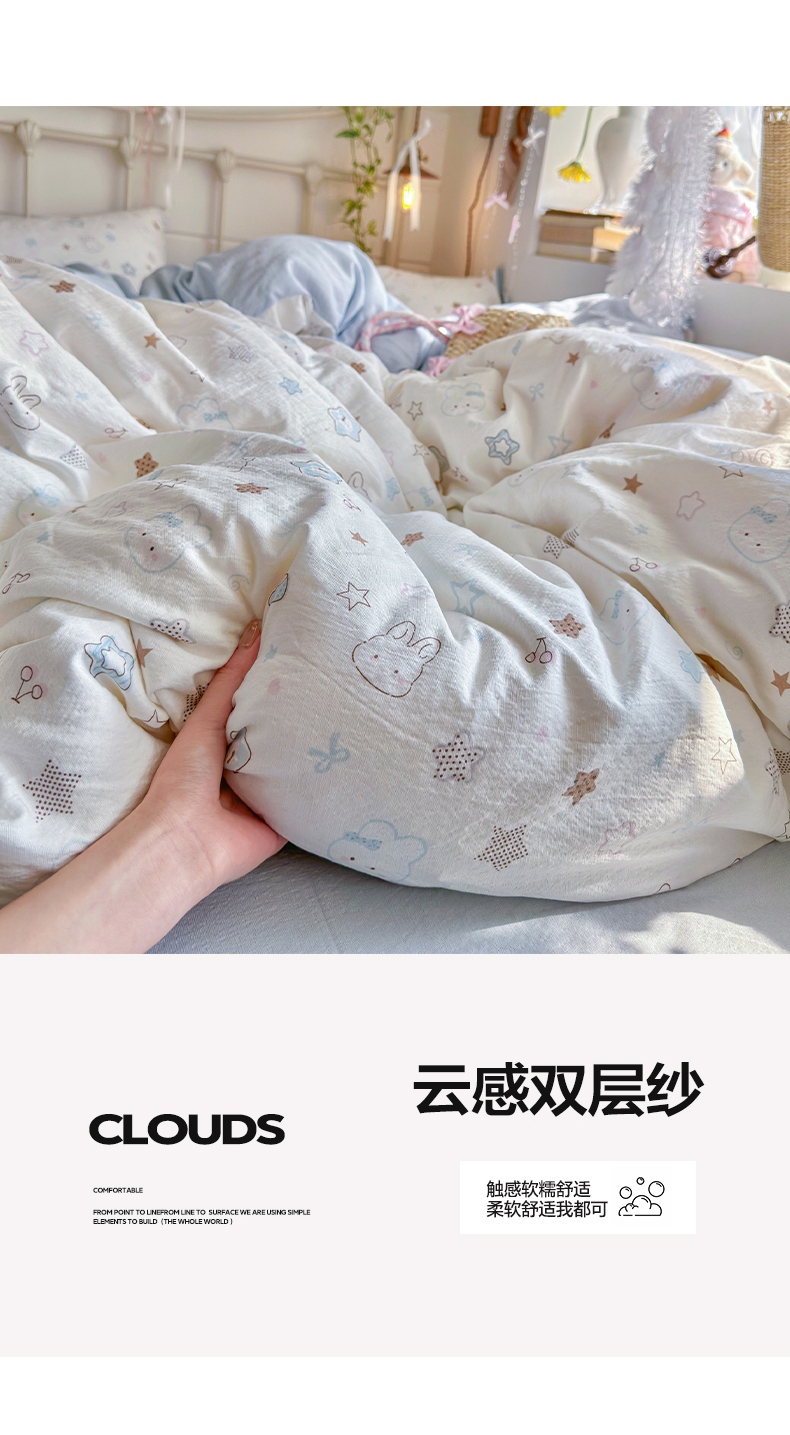 当前位置: 91家纺网 > 商品网购 > 床品套件 > 四件套 > 双层纱四件套 > 优选 2026新款小清新直播热卖款云感双层纱木棉床盖四件套系列 花屿轻梦
