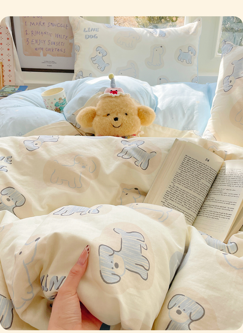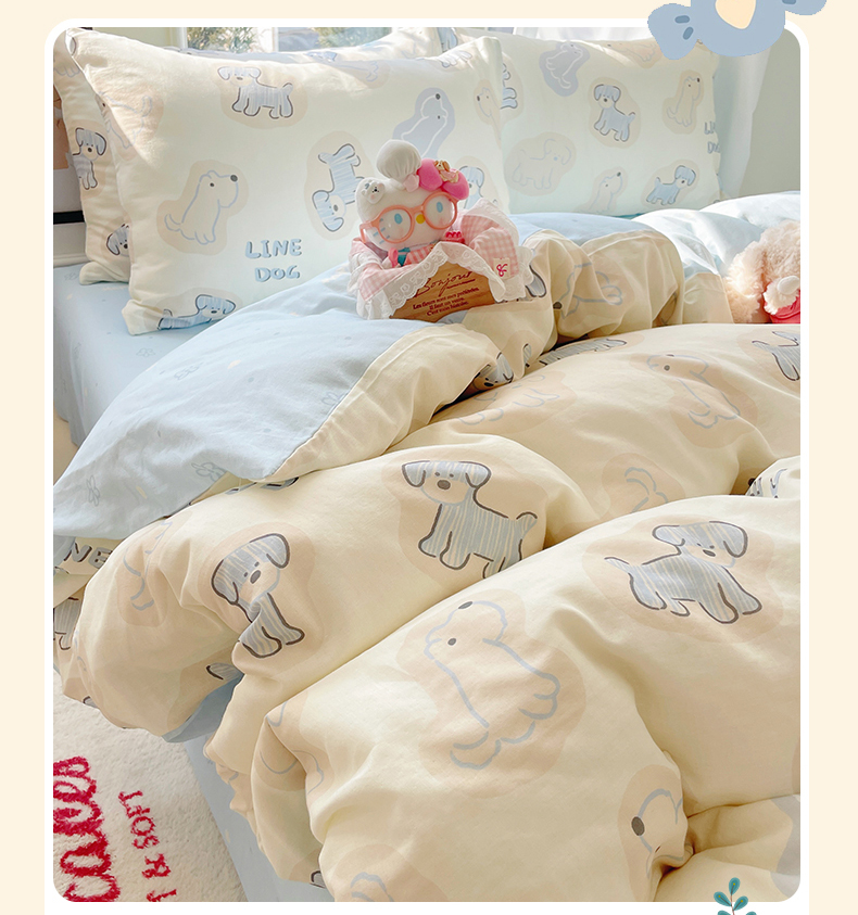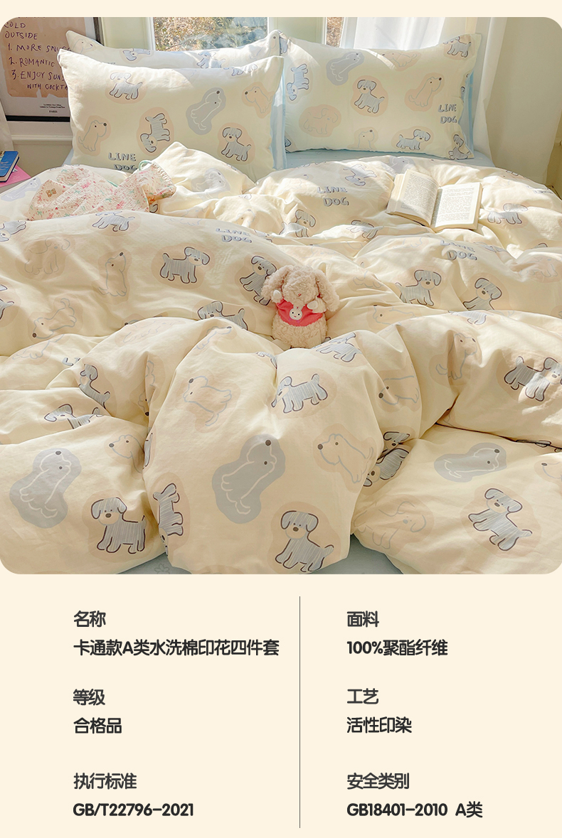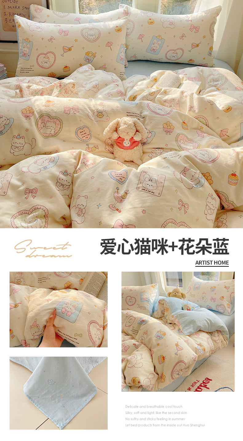 当前位置: 91家纺网 > 商品网购 > 床品套件 > 四件套 > 水洗棉四件套 > 盛秋家纺 2026新款水洗棉印花四件套-卡通系列二 修勾蓝+花朵蓝