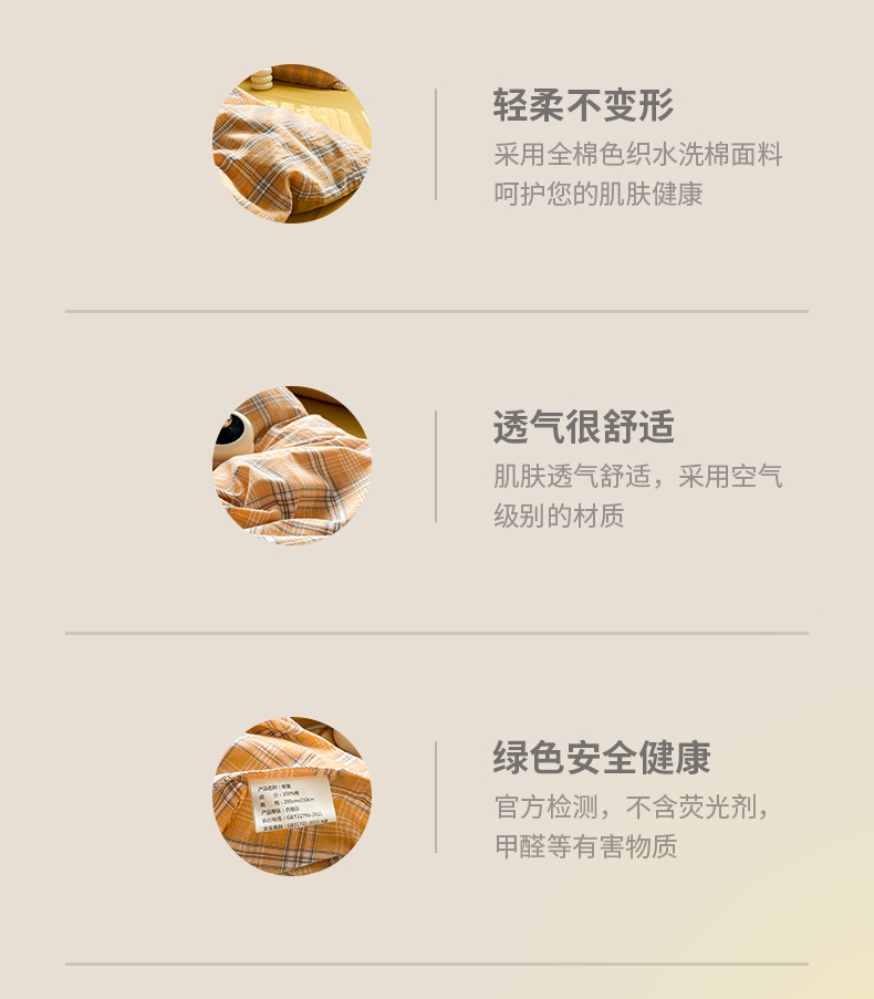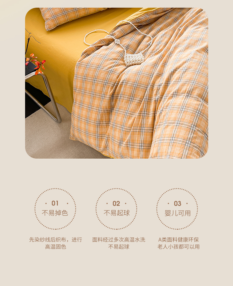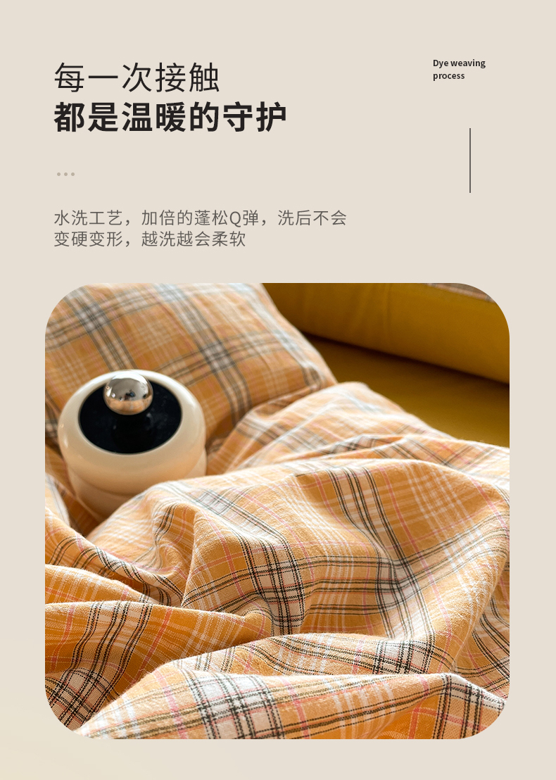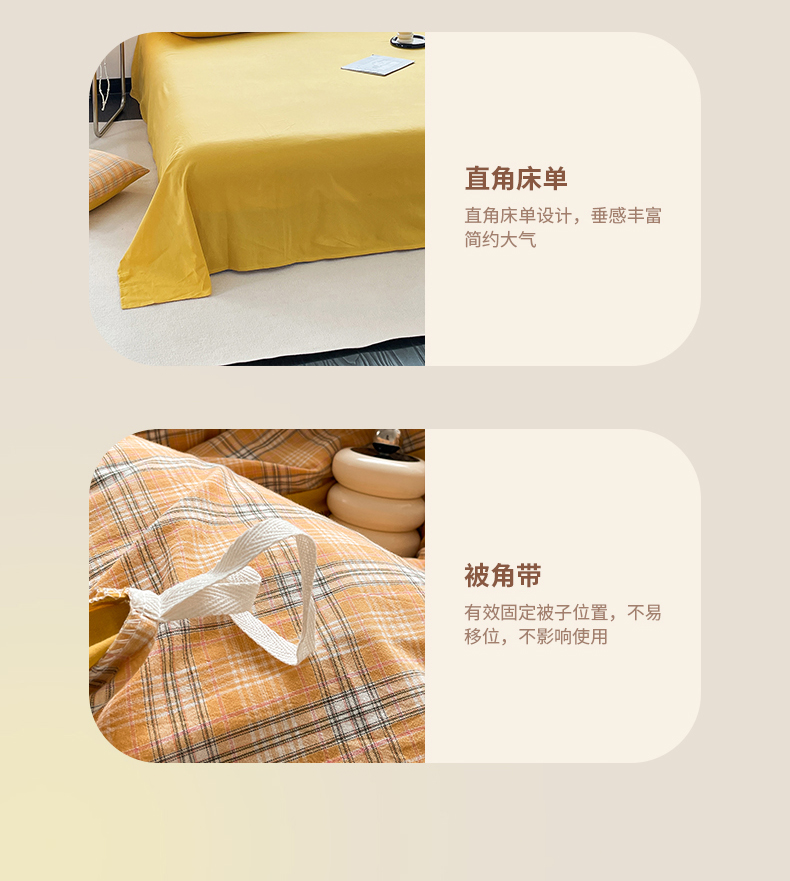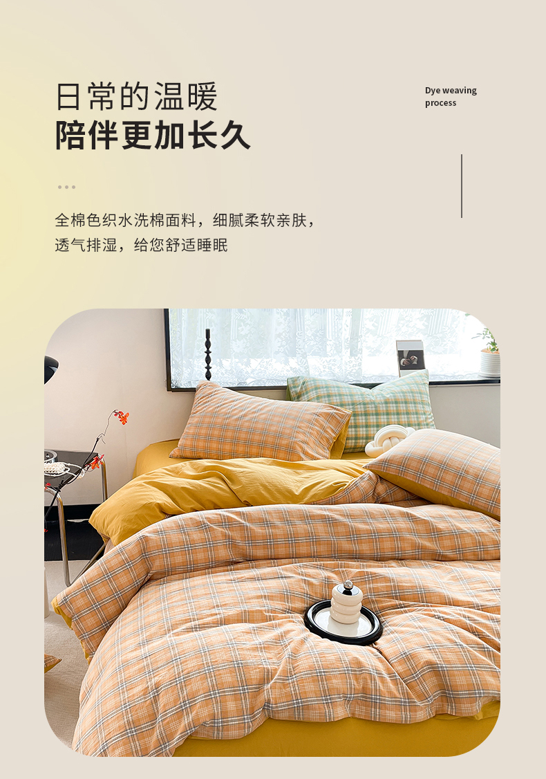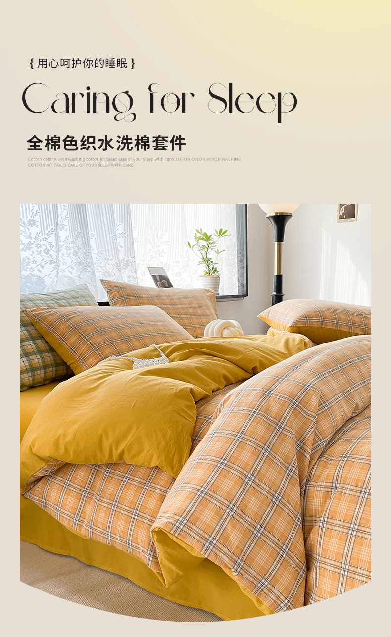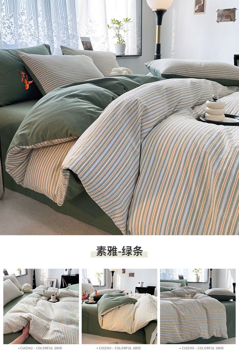 当前位置: 91家纺网 > 商品网购 > 床品套件 > 四件套 > 全棉普通四件套 > 春皖家纺 2026新款色织AB版水洗棉三件套四件套单品系列(四件套风格一) 素雅-黄条