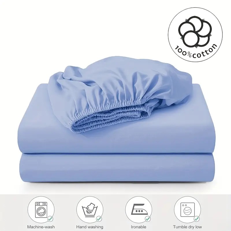 伊赛家纺 2026新款纯色全棉床笠 淡蓝色