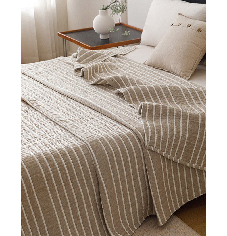 悦然毛巾被 2026新款全棉外贸条纹格子纱布盖毯 初语棕