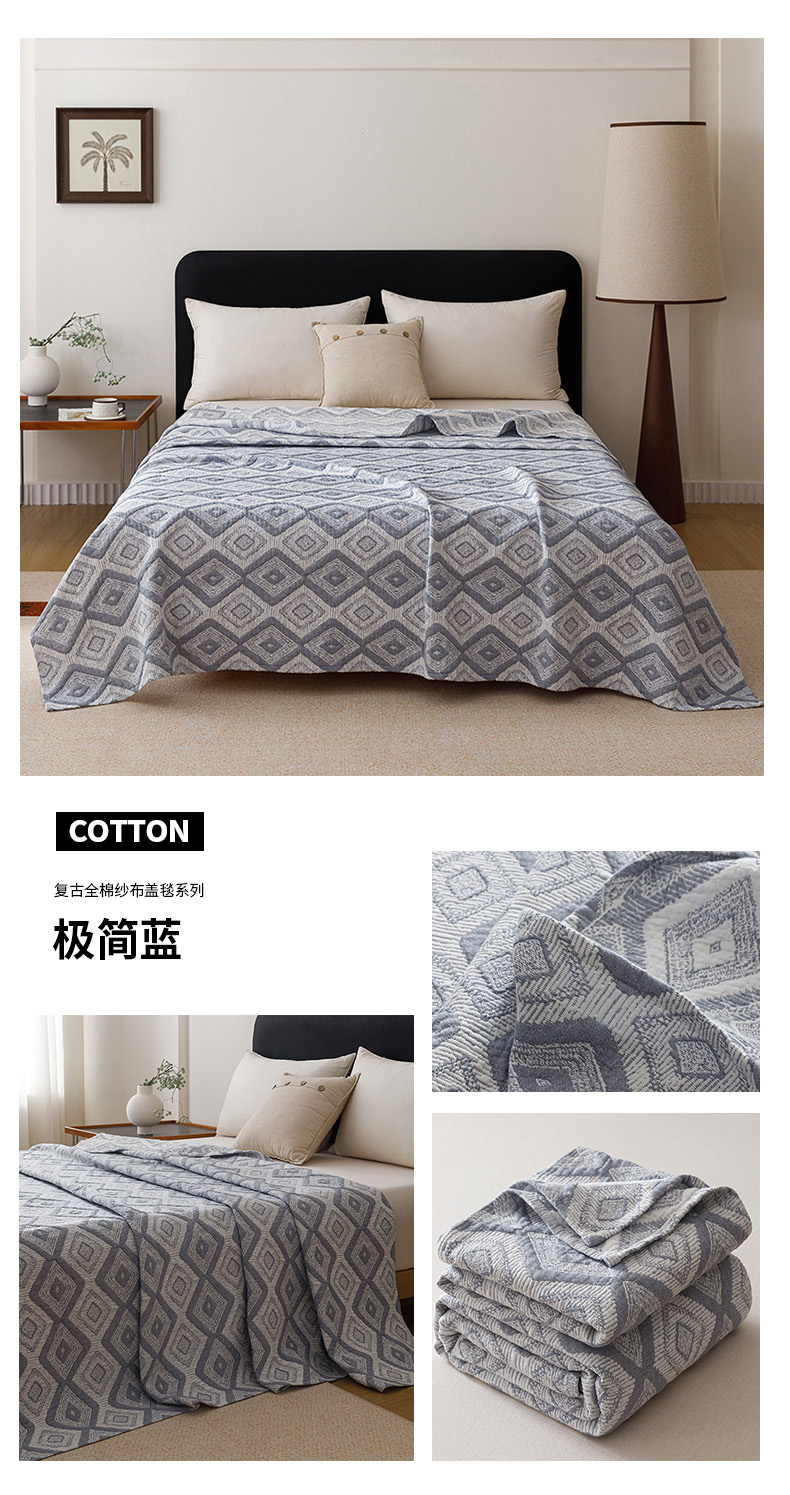 (总)悦然毛巾被 2026新款外贸全棉三层纱布毛巾被盖毯,爱心拼布灰,爱心拼布咖,爱心拼布蓝,空灵羽灰,空灵羽咖,空灵羽蓝,迷宫格咖,迷宫灰,迷宫蓝,组合