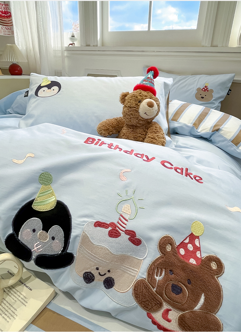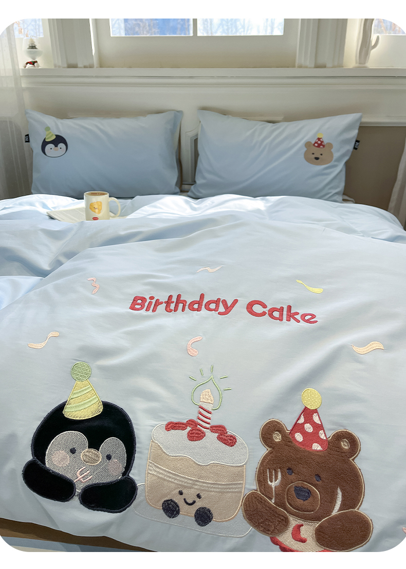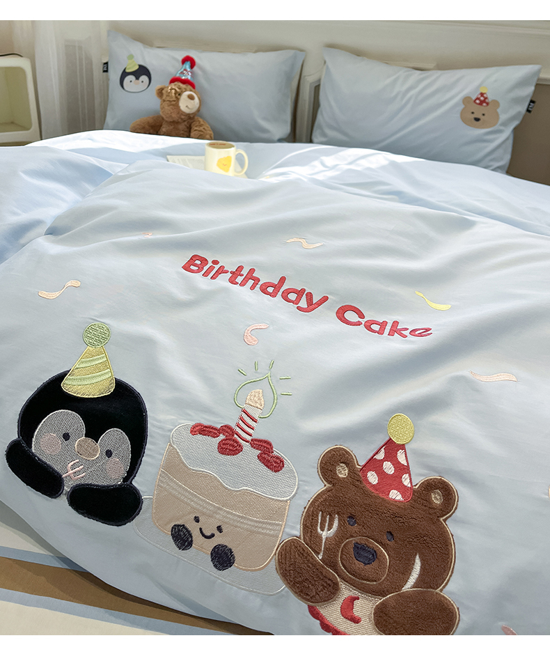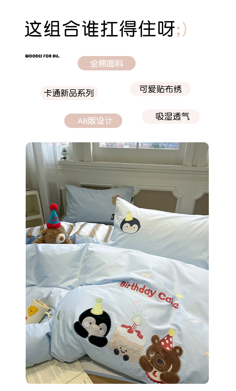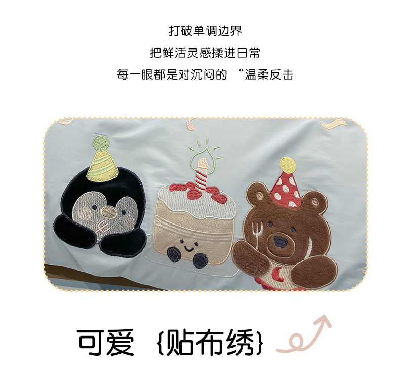 当前位置: 91家纺网 > 商品网购 > 床品套件 > 四件套 > 全棉普通四件套 > 乐美家纺 2026春夏新款软萌全棉纯棉贴布绣系列四件套 生日派对