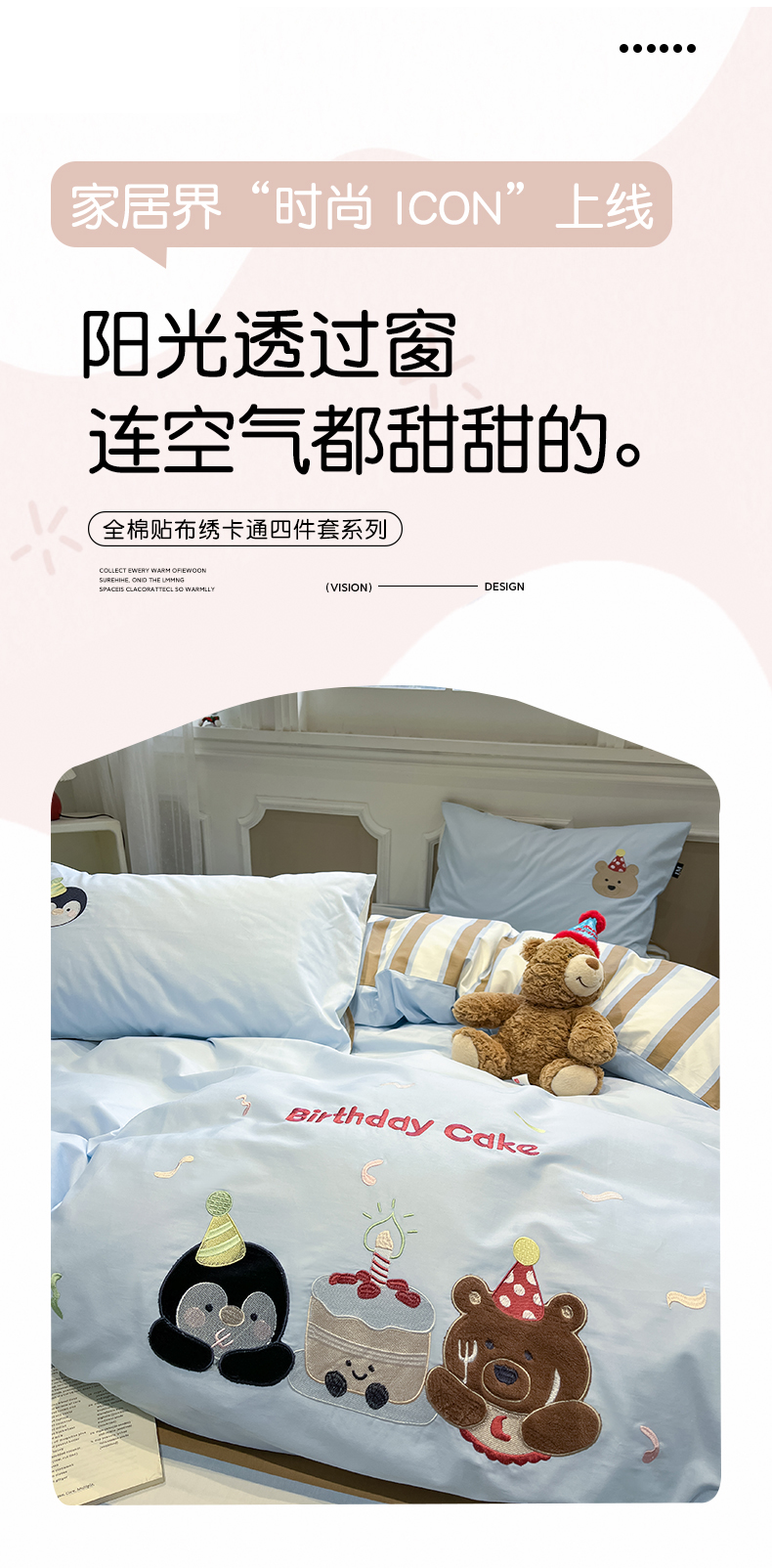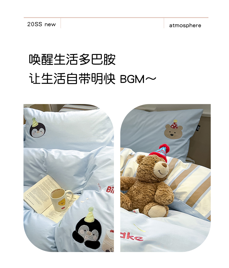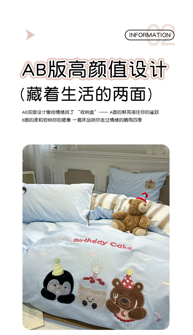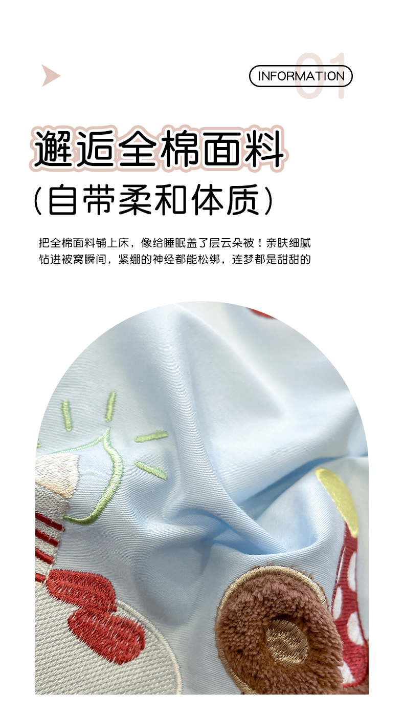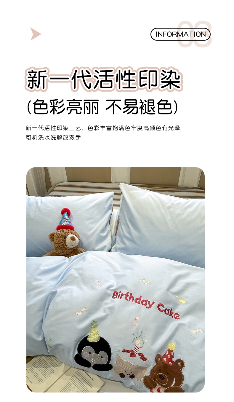 当前位置: 91家纺网 > 商品网购 > 床品套件 > 四件套 > 全棉普通四件套 > 乐美家纺 2026春夏新款软萌全棉纯棉贴布绣系列四件套 生日派对