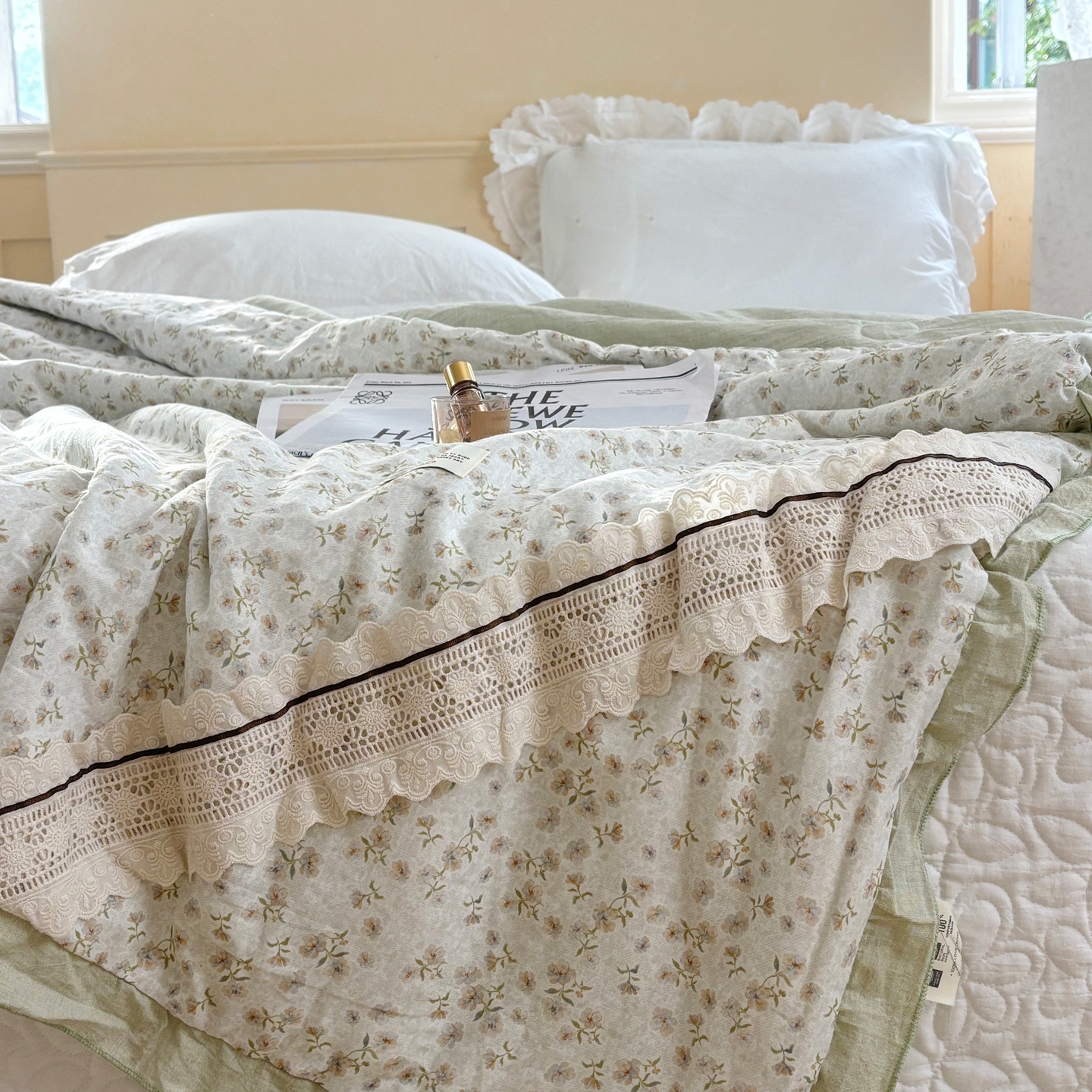(总)有货 2023新款小清新花边韩版水洗棉麻豆豆夏被简约复古风,枫情,格格,绿野,绿意,南风,暖心,森林,盛开,太空,微笑,向阳花,小鹿,枝丫