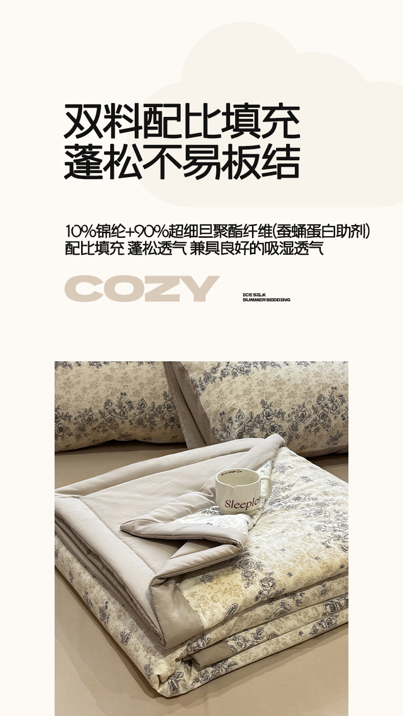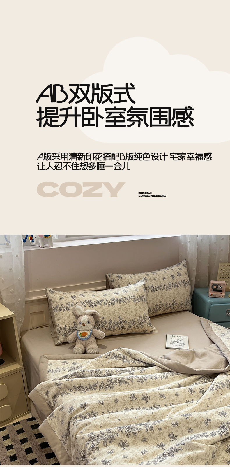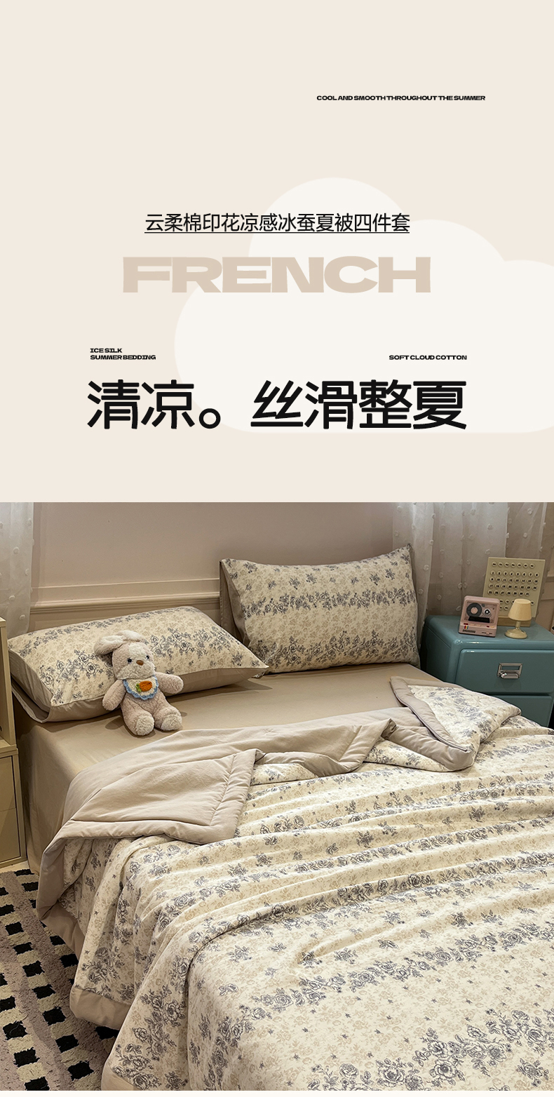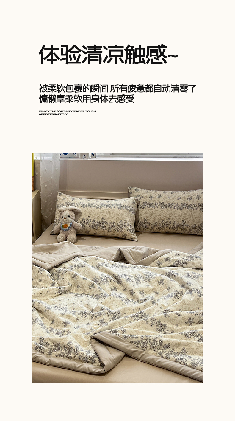 • 91家纺网 家纺一手货源 找家纺 一加一 2026新款云柔棉印花凉感冰蚕夏被夏凉被空调被四件套 温柔花香
