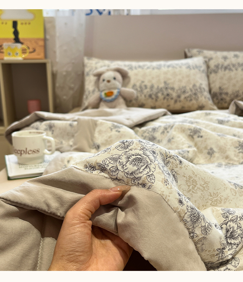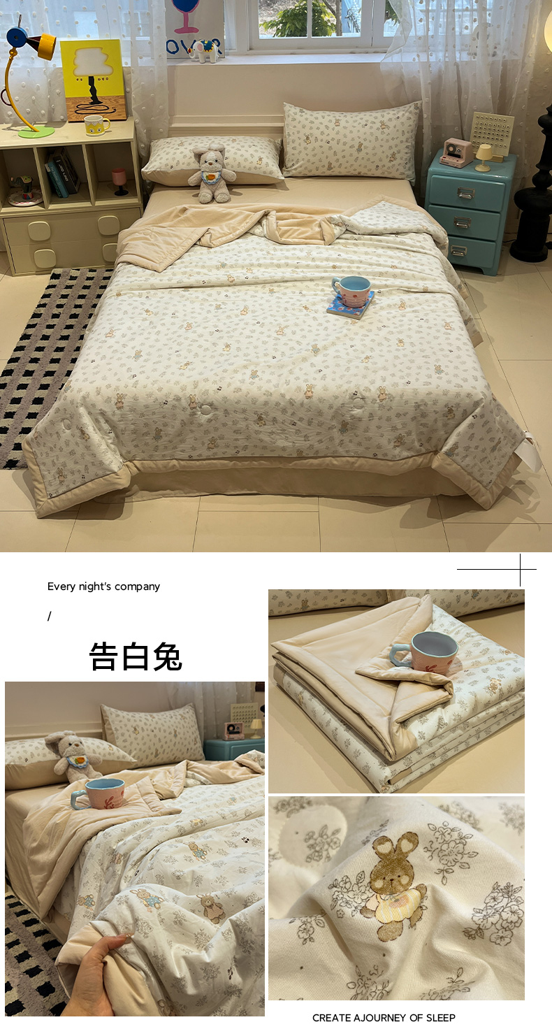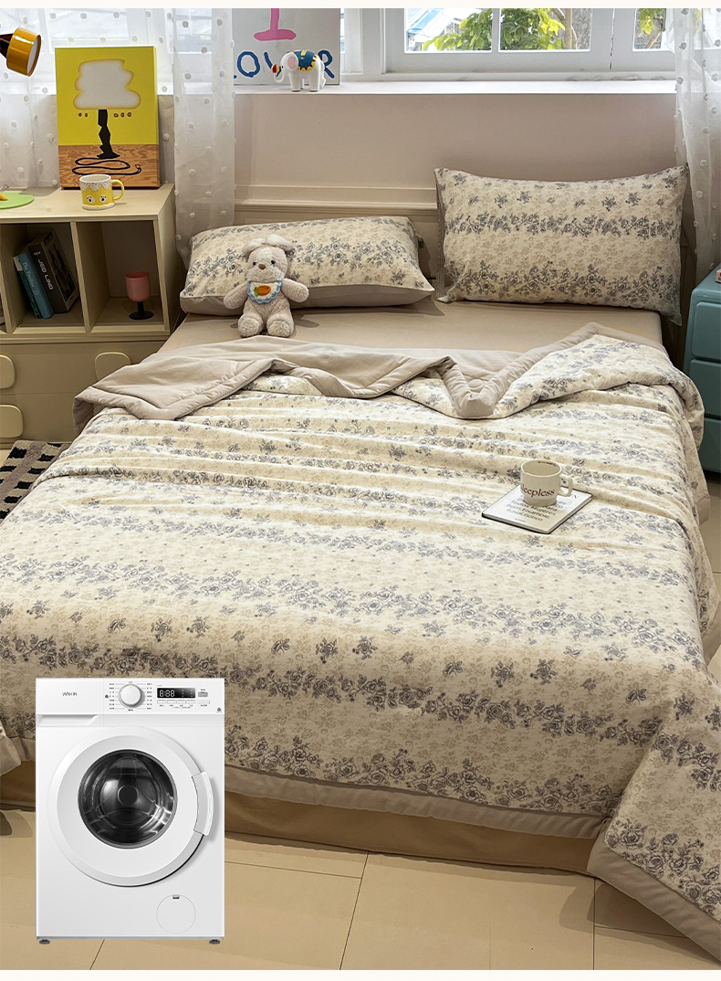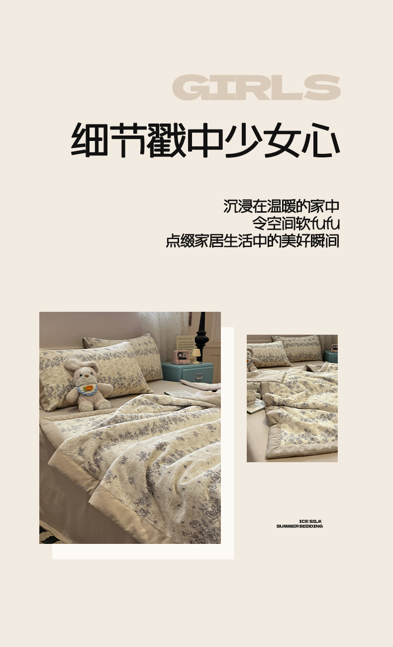 • 91家纺网 家纺一手货源 找家纺 一加一 2026新款云柔棉印花凉感冰蚕夏被夏凉被空调被四件套 温柔花香