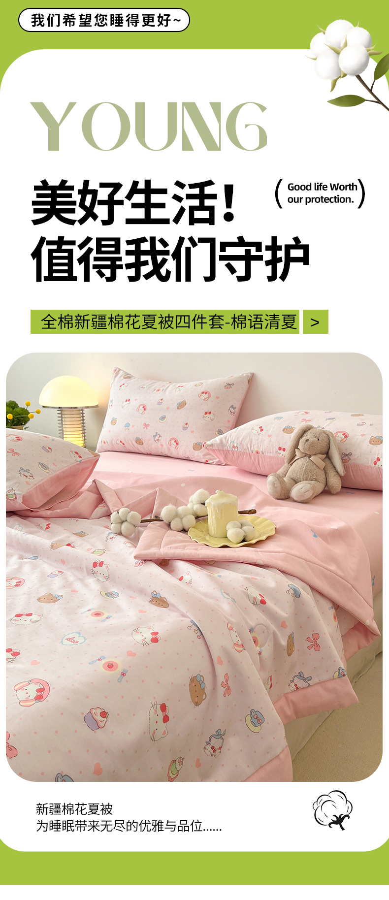 当前位置: 91家纺网 > 商品网购 > 床品套件 > 四件套 > 夏被四件套 > 一加一 2026新款全棉新疆棉花夏被夏凉被空调被四件套-棉语清夏 猫猫乐园