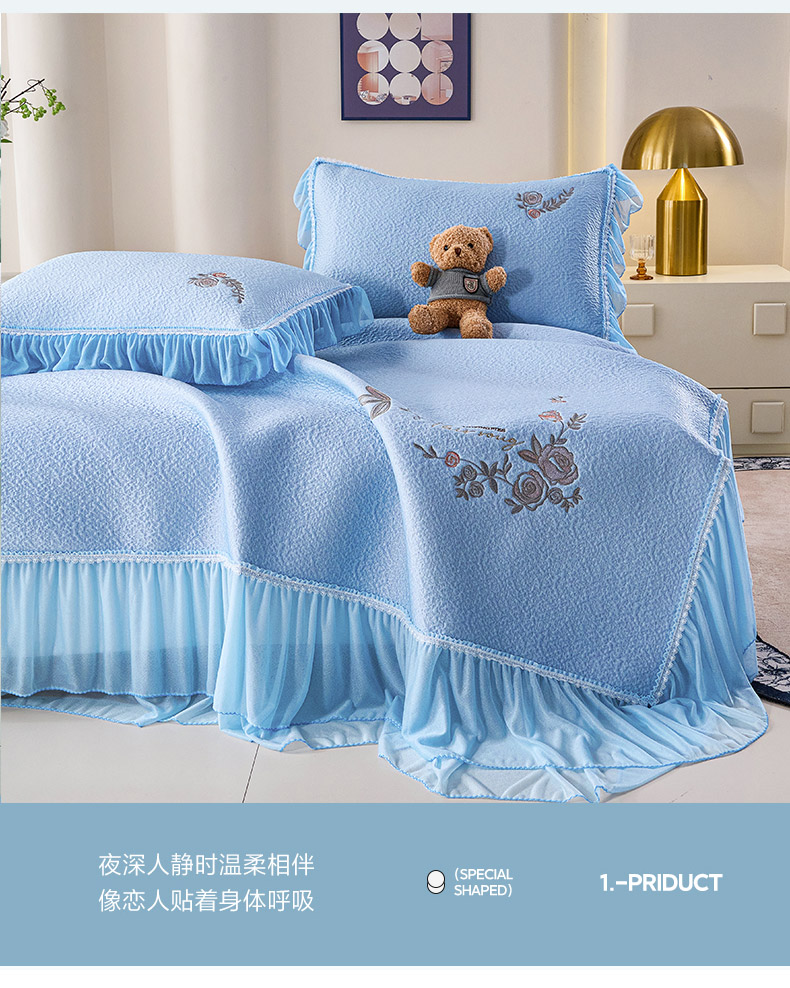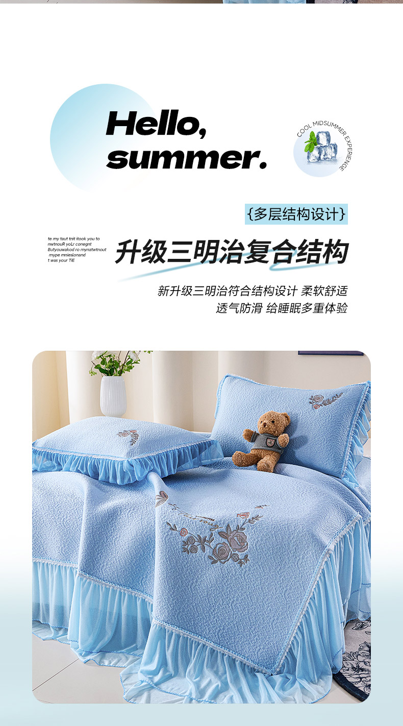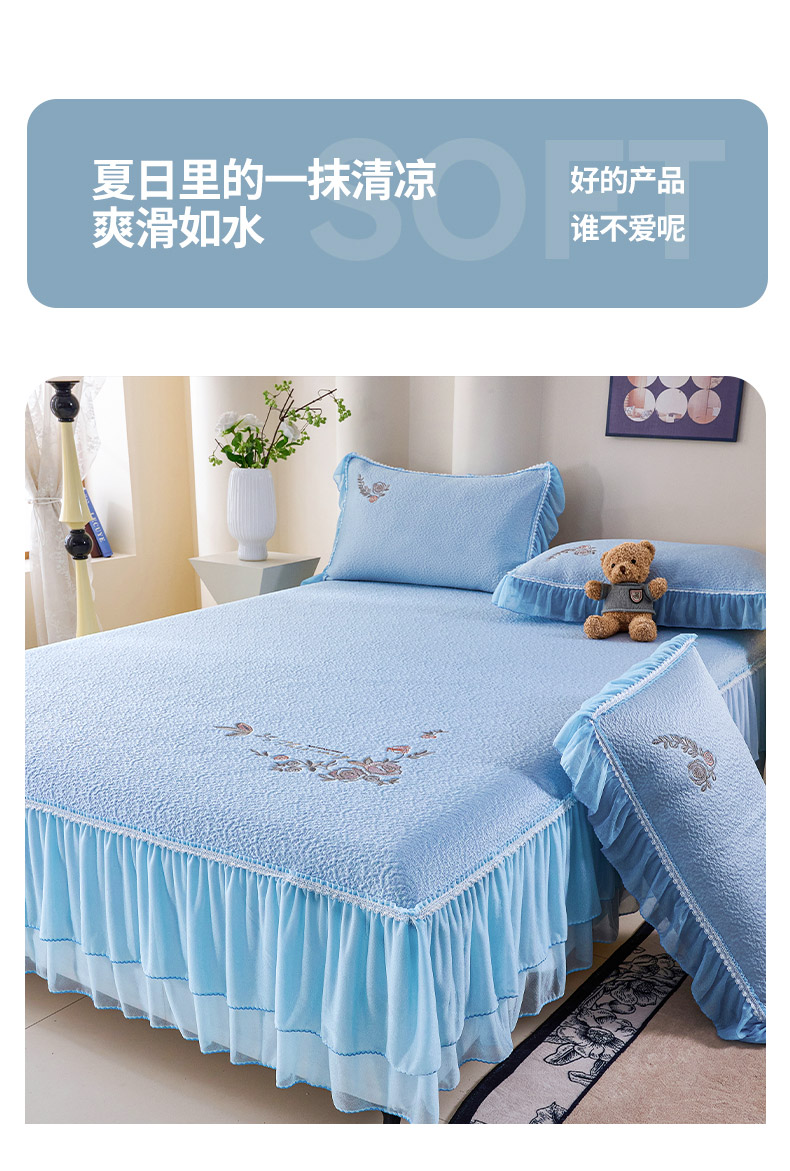 当前位置: 91家纺网 > 商品网购 > 床上用品 > 凉席 > 其他凉席 > 青雅席业 2026新款A类凉感豆豆席凉席席子-床裙款 床裙款-花枝招展-蓝