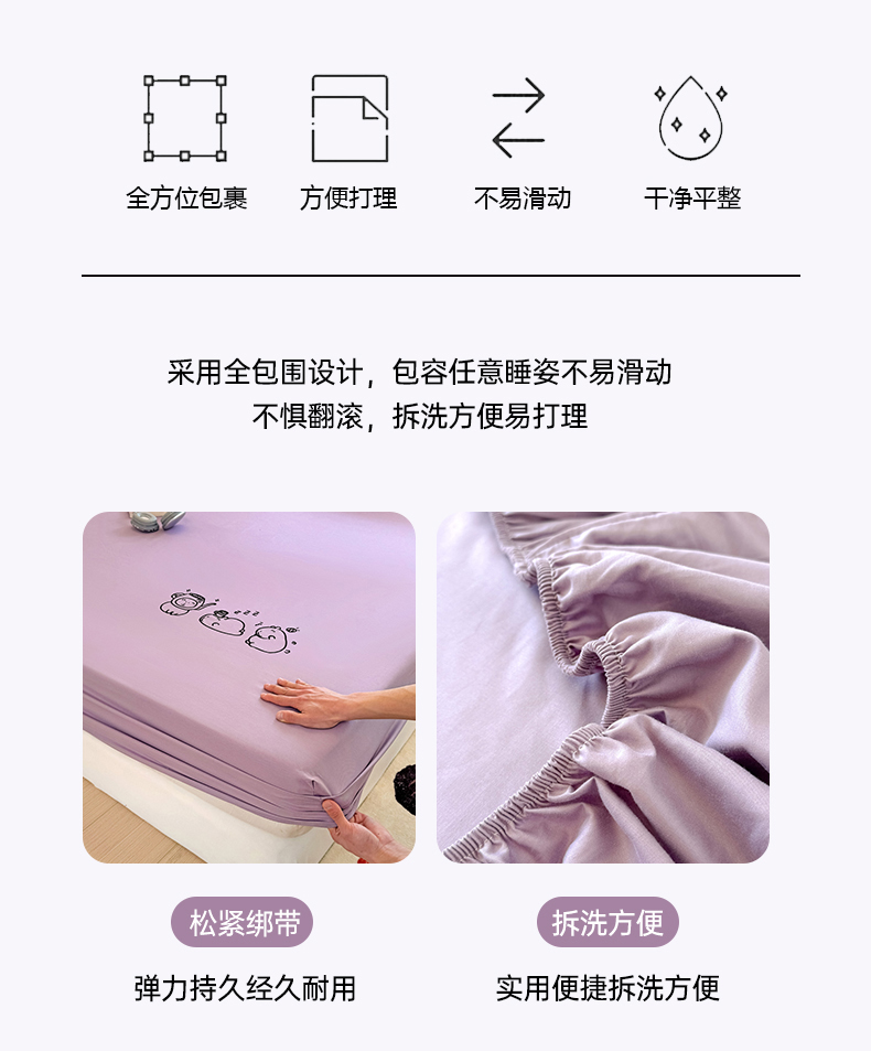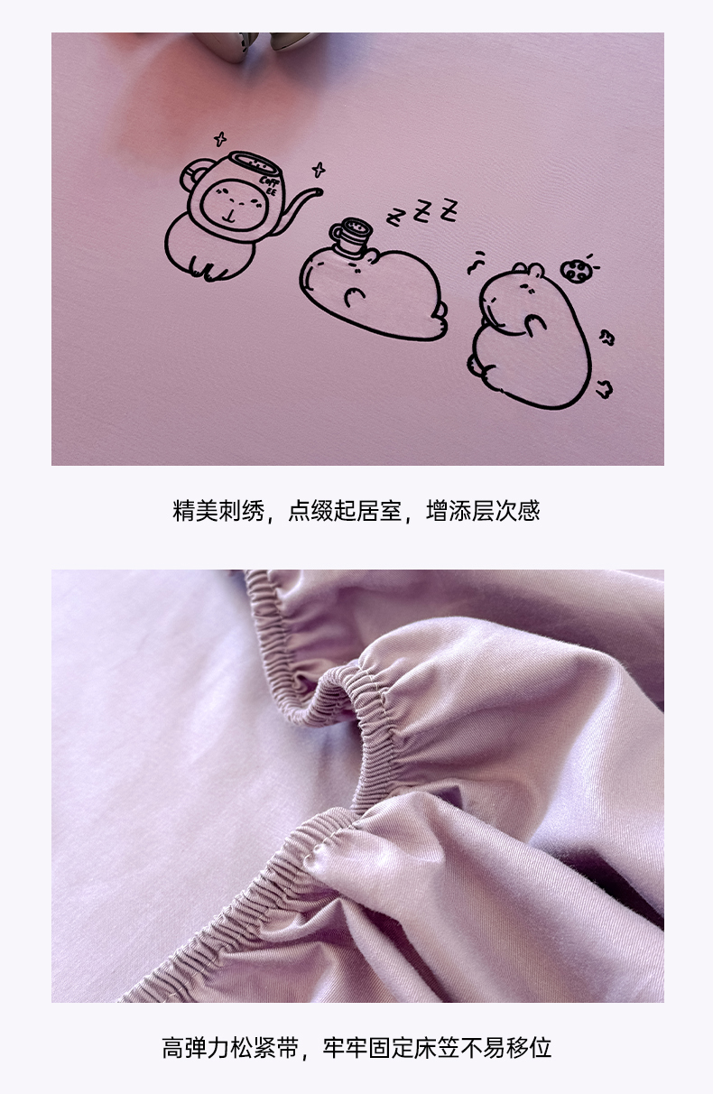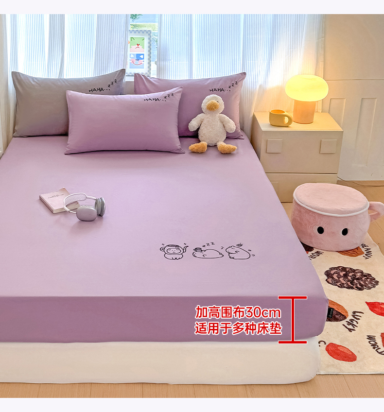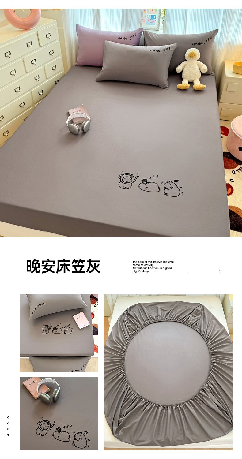 (总)布柔 2026新款床笠100%全棉纯棉13070绣花床笠(围高+30cm)-晚安,晚安床笠粉,晚安床笠黄,晚安床笠灰,晚安床笠绿,晚安床笠紫,组合图仅供展示-不可下单
