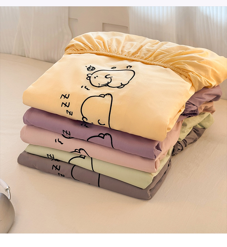 • 91家纺网 家纺一手货源 找家纺 (总)布柔 2026新款纯棉全棉纯棉床笠纯色绣花卡通床笠床垫保护套罩,奶油绿,奶油粉,奶油黄
