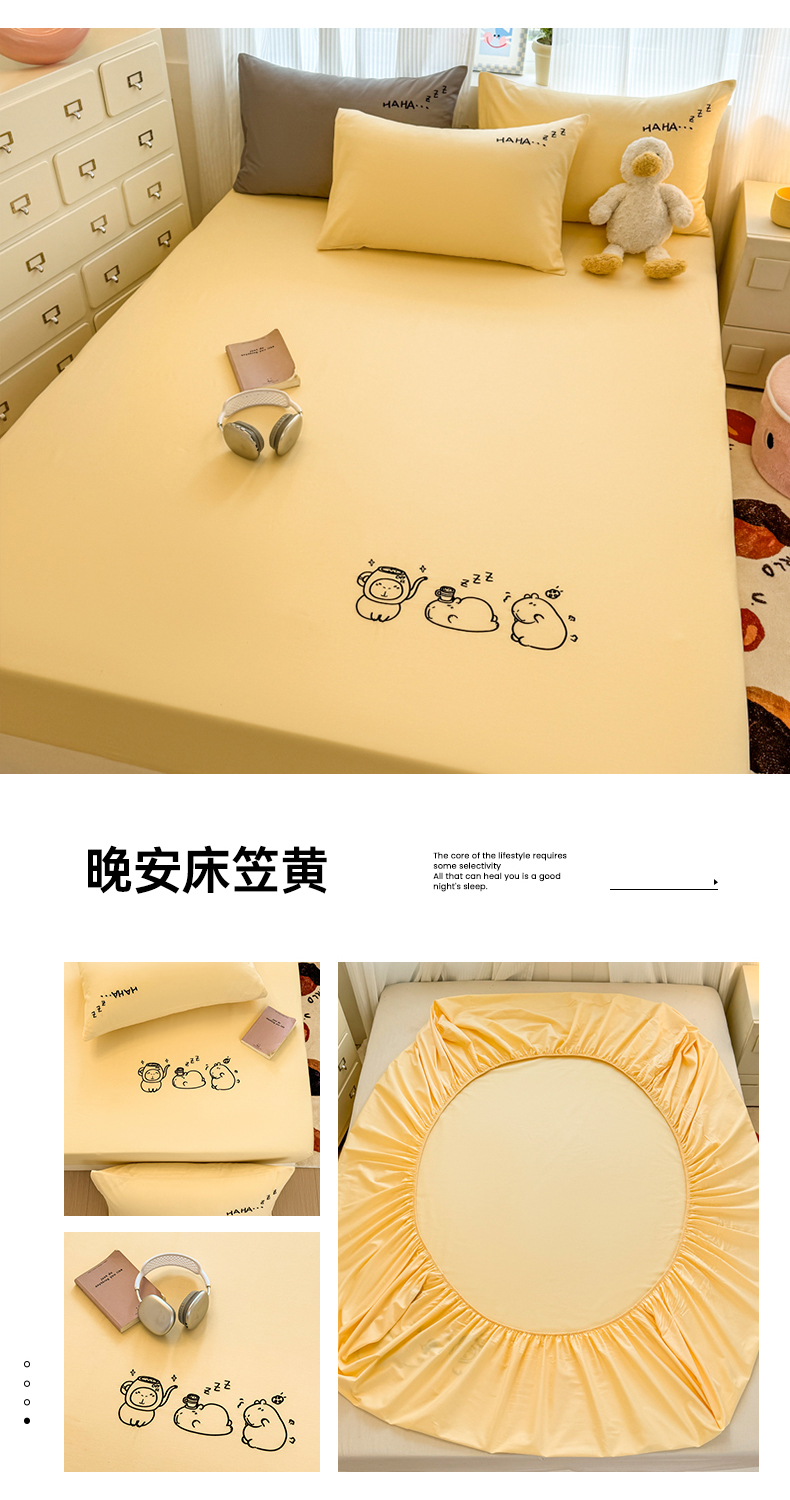 布柔 2026新款床笠100%全棉纯棉13070绣花床笠(围高+30cm)-晚安 晚安床笠黄