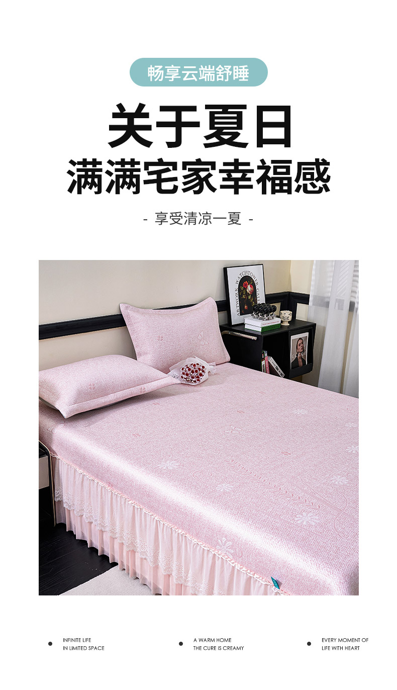 (总)青雅席业 2026年新款A类提花工艺(提花双面)凉感豆豆席床裙款,床裙款-雾里看花-粉,床裙款-雾里看花-灰,床裙款-雾里看花-香槟,床裙款-雾里看花-蓝,床裙款-雾里看花-绿