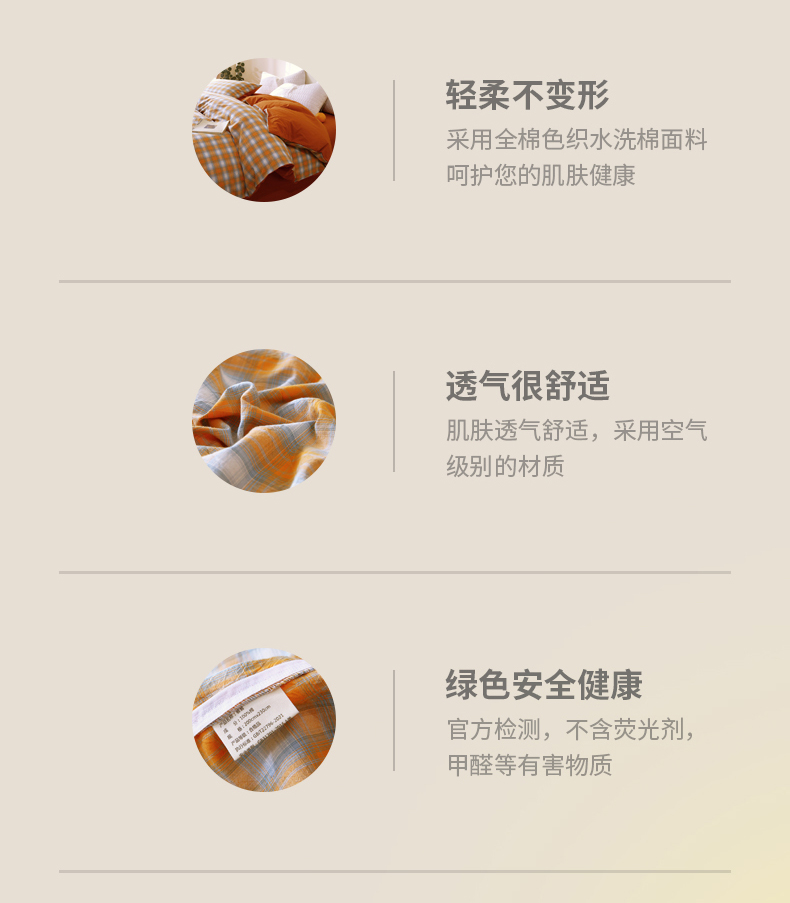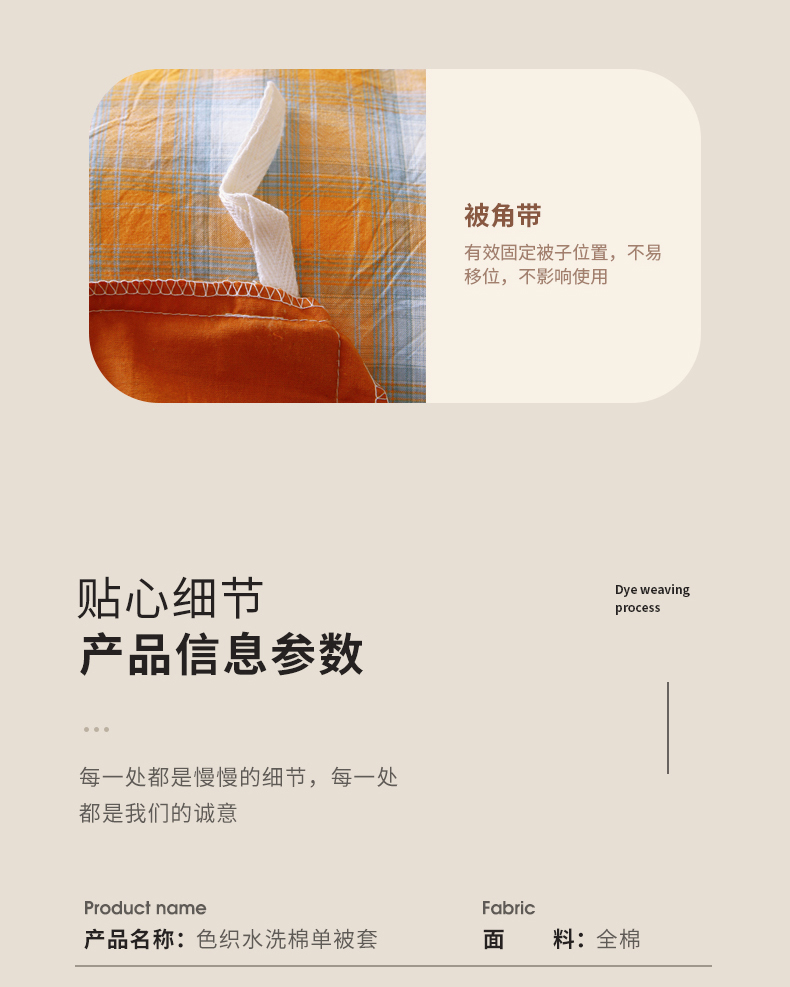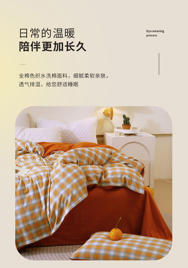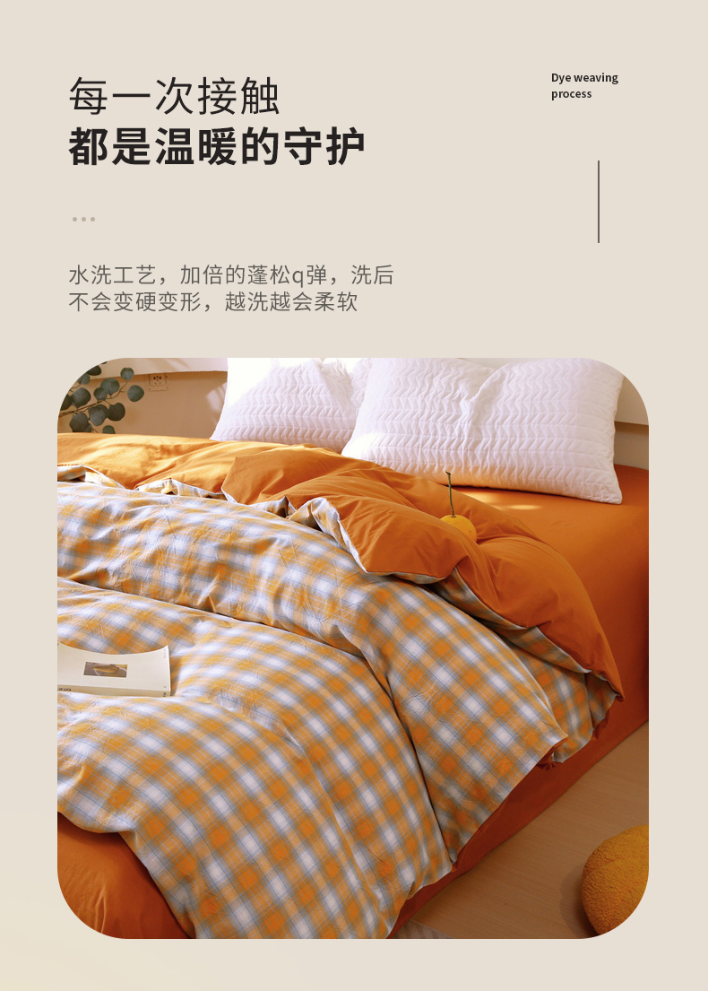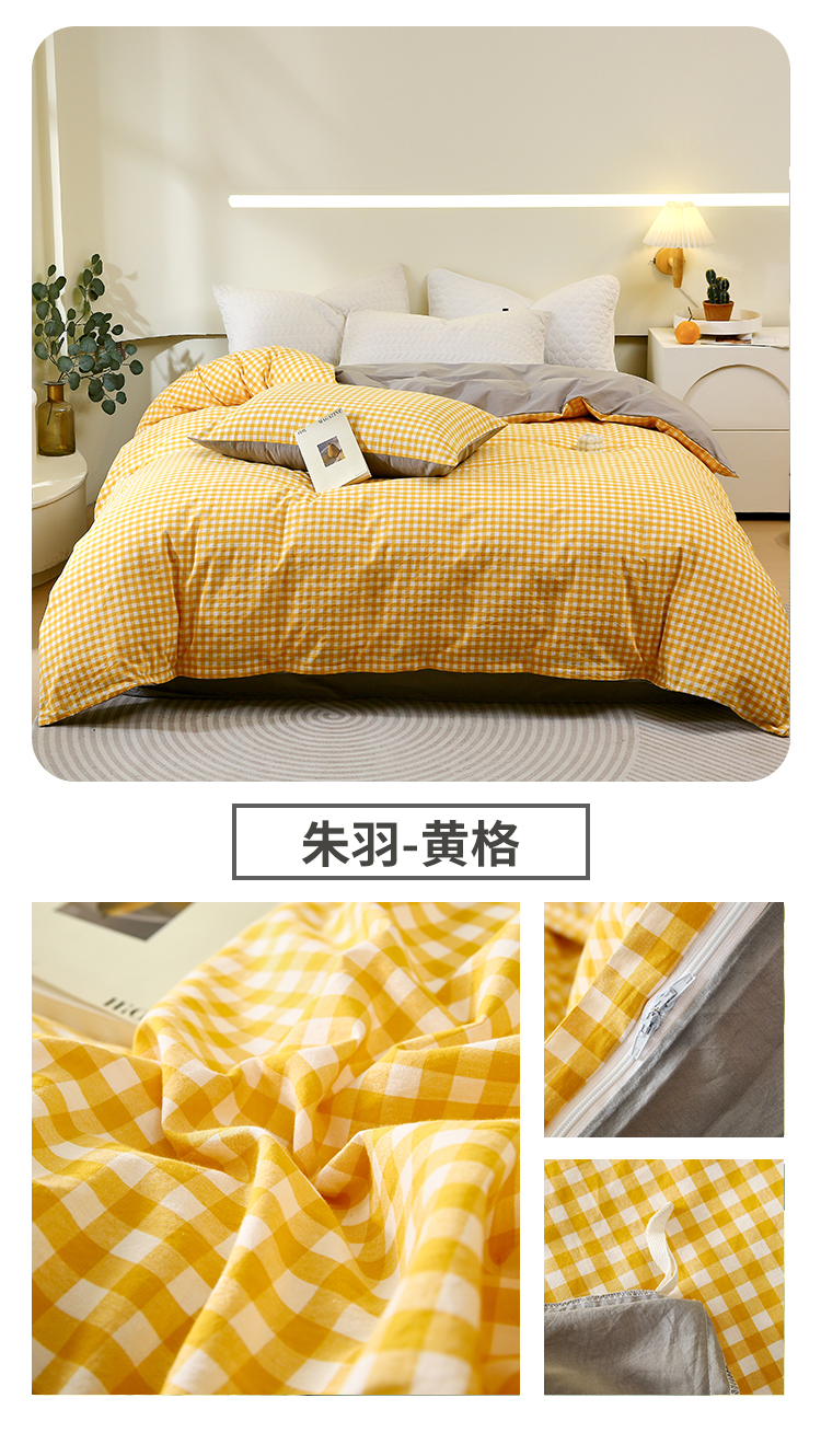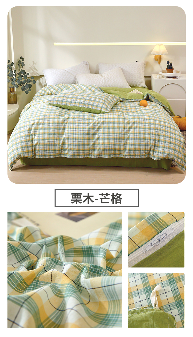 商品名称:春皖家纺 2026新款色织AB版水洗棉三件套四件套单品系列(单被套风格一) 素雅-沐夏