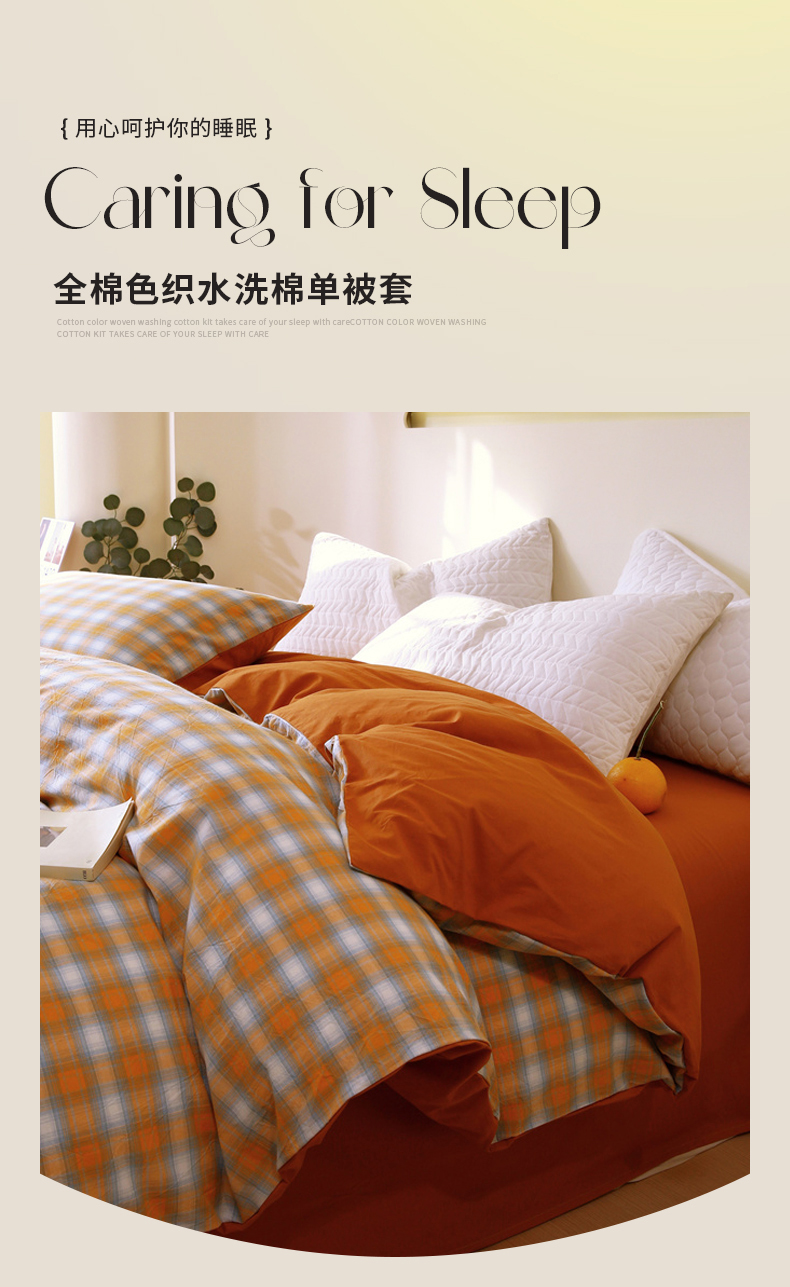 春皖家纺 2026新款色织AB版水洗棉三件套四件套单品系列(单被套风格一) 素雅-沐夏