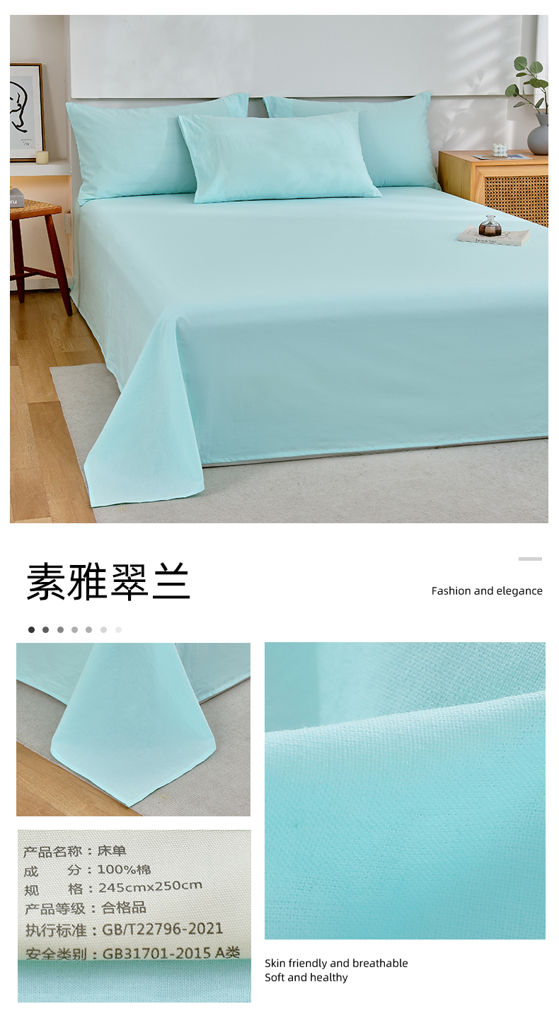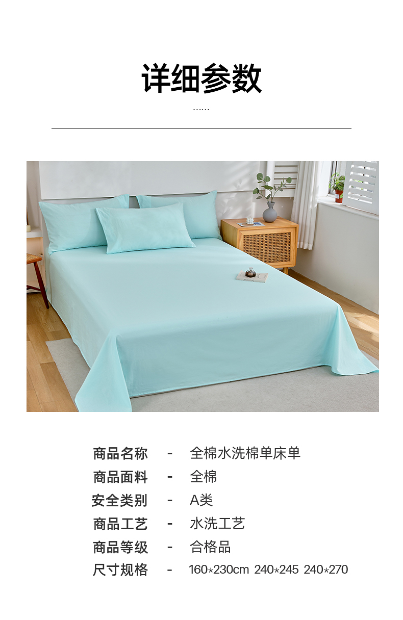 商品名称:春皖家纺 2026新款色织AB版水洗棉三件套四件套单品系列(单床单-B版风格一) 素雅翠兰