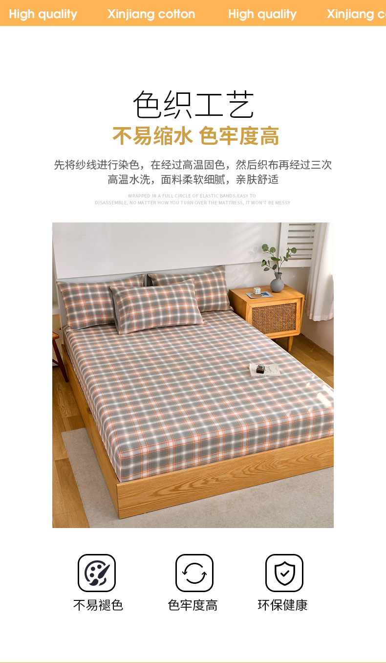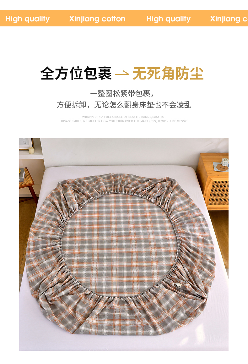 春皖家纺 2026新款色织AB版水洗棉三件套四件套单品系列(单床笠-A版风格一) 栗木-咖格