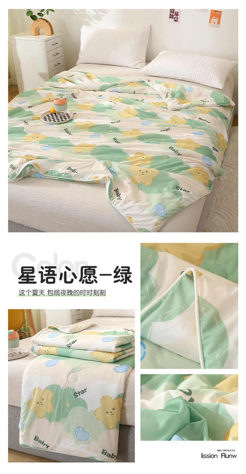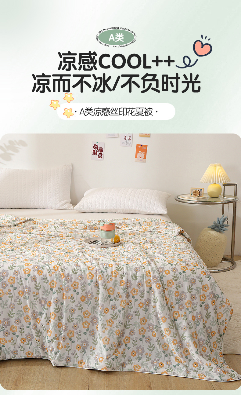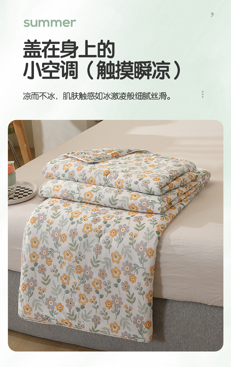 商品名称:薇玛仕 2026爆款新款印花凉感丝夏凉被空调被带氨自带凉感夏被 花海-绿