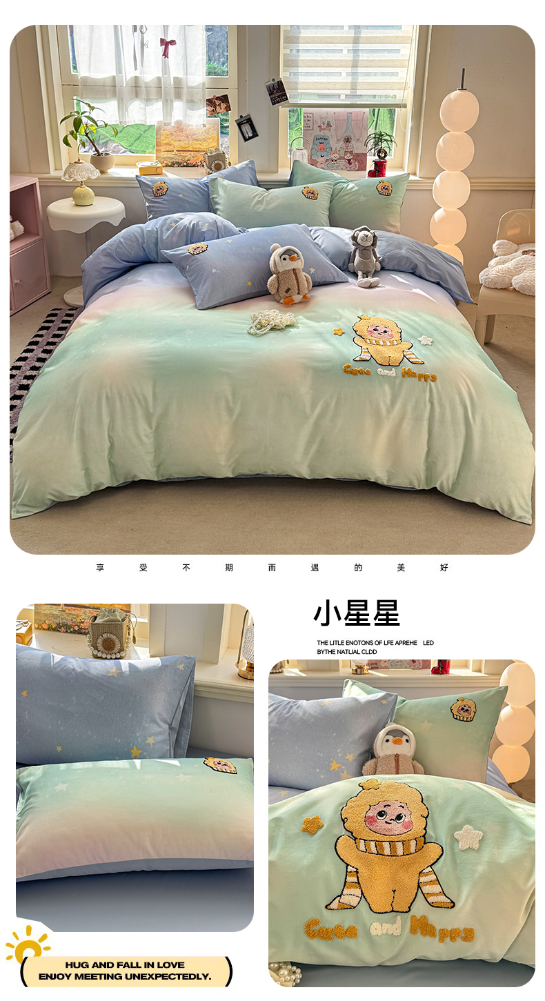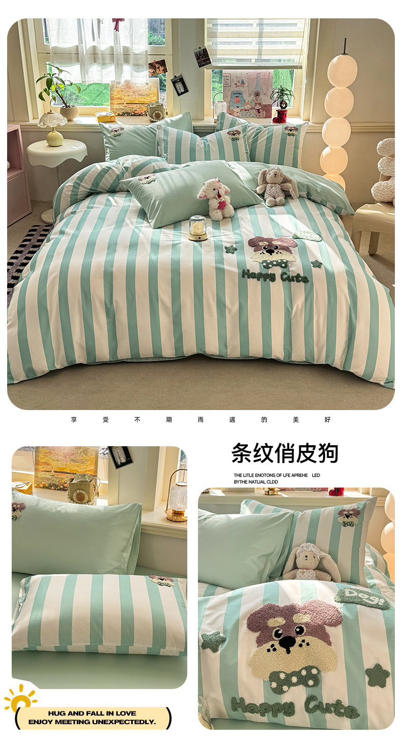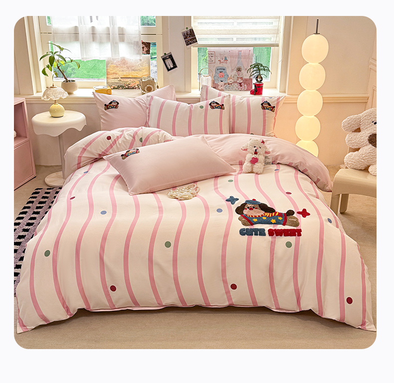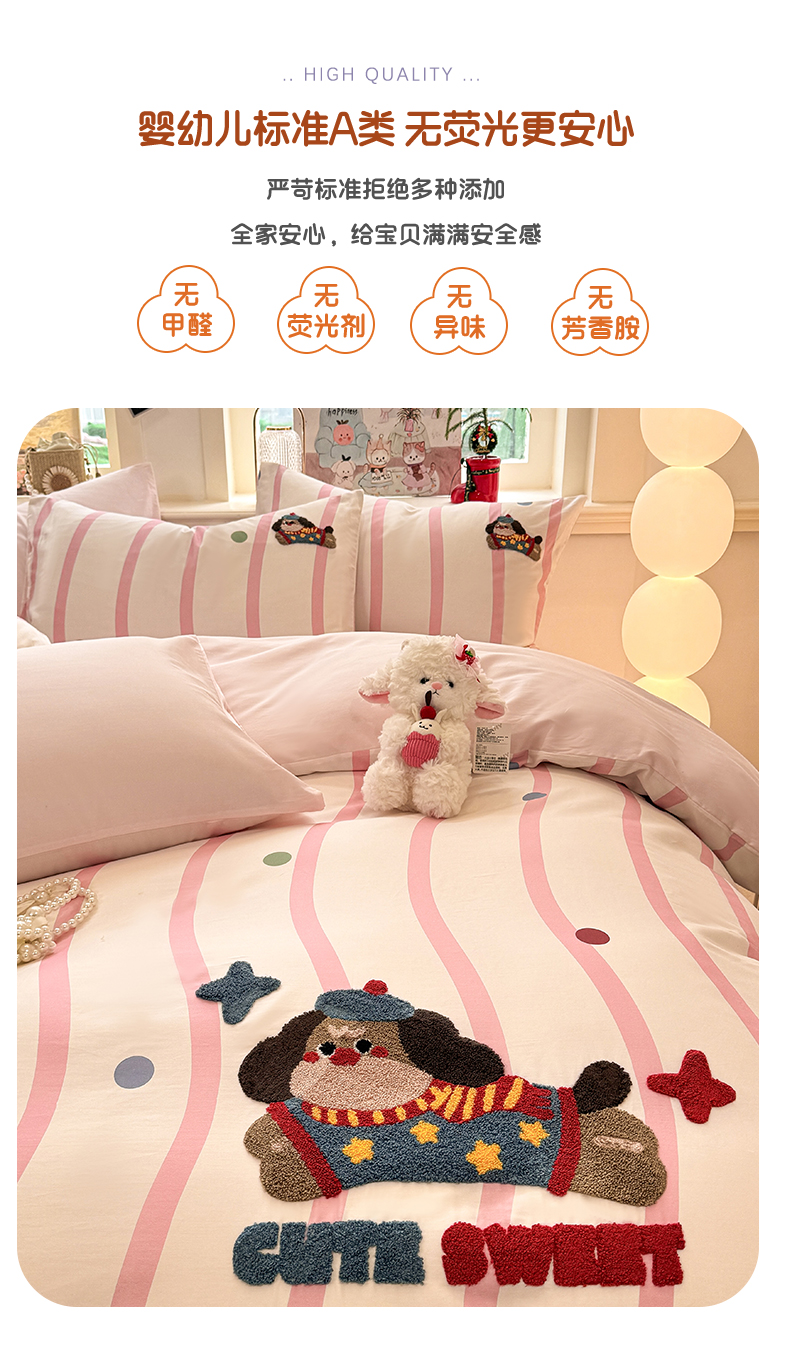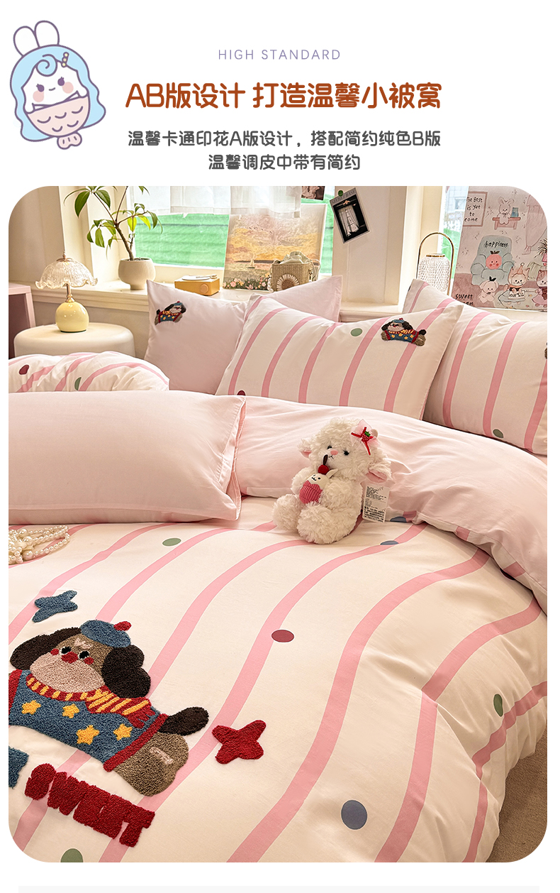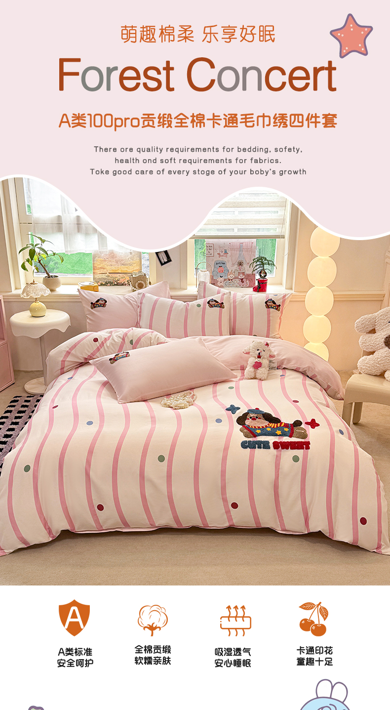 当前位置: 91家纺网 > 商品网购 > 床品套件 > 四件套 > 全棉普通四件套 > 卧趣家纺 2026新款A类100Pro贡缎全棉纯棉卡通毛巾绣四件套 波点维尼