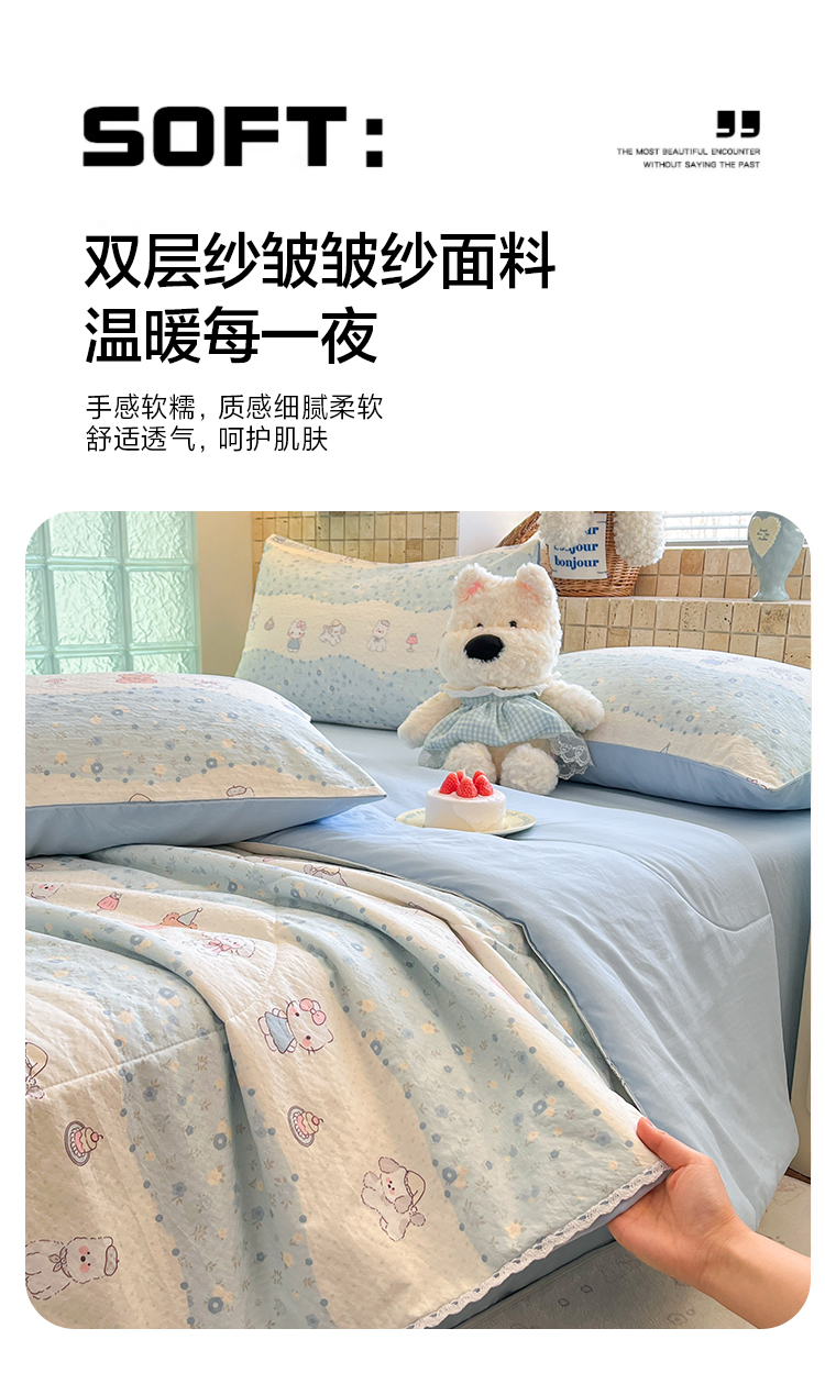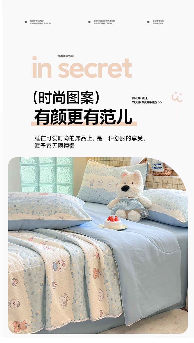 (总)川悦生活 2026新款双层纱木棉夏被四件套,星星西高地,嘟嘟花园,海盐小咪,花都小狗,花田乐园,花艺喵喵,可乐腊肠,腊肠甜心,腊肠庄园,奶油糕糕喵,奶油可盐,汽水小咪,恰星星,巧克力乐园,数星星,糖豆小旺,甜梦心愿,西斯花圃,香芋甜梦,小猫庄园,杏仁小星星,组合图