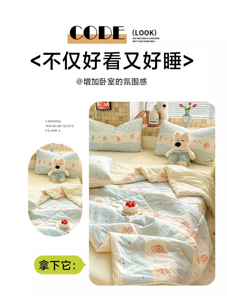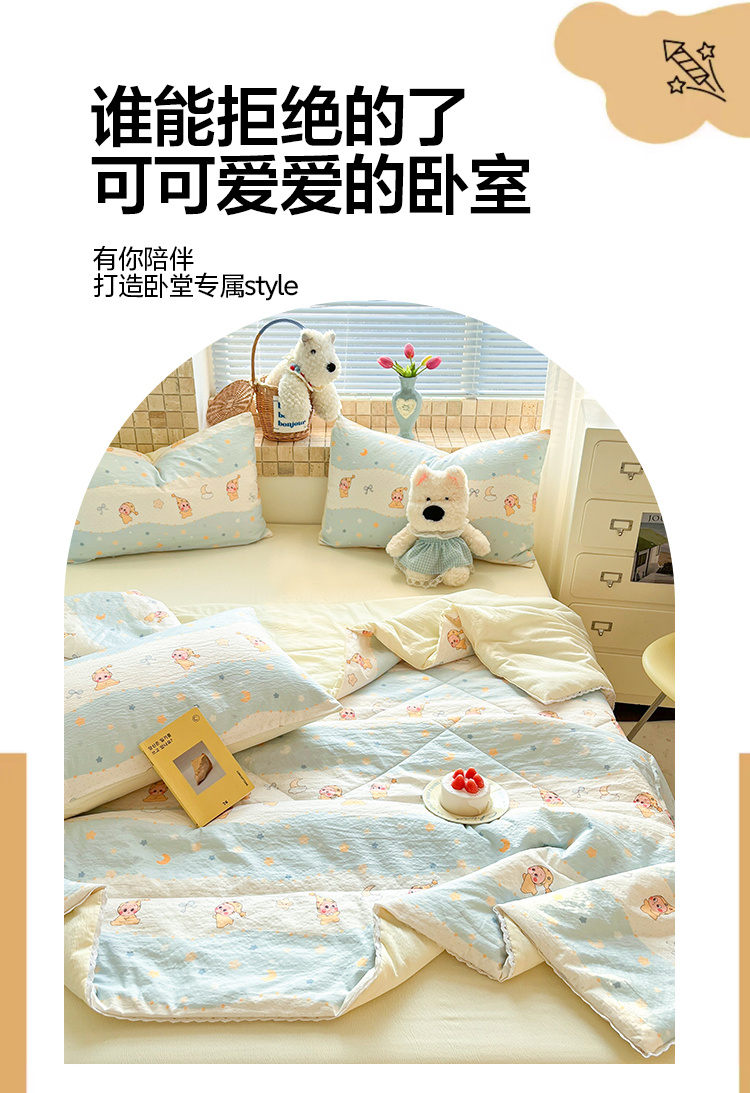 (总)川悦生活 2026新款双层纱木棉夏被四件套,星星西高地,嘟嘟花园,海盐小咪,花都小狗,花田乐园,花艺喵喵,可乐腊肠,腊肠甜心,腊肠庄园,奶油糕糕喵,奶油可盐,汽水小咪,恰星星,巧克力乐园,数星星,糖豆小旺,甜梦心愿,西斯花圃,香芋甜梦,小猫庄园,杏仁小星星,组合图